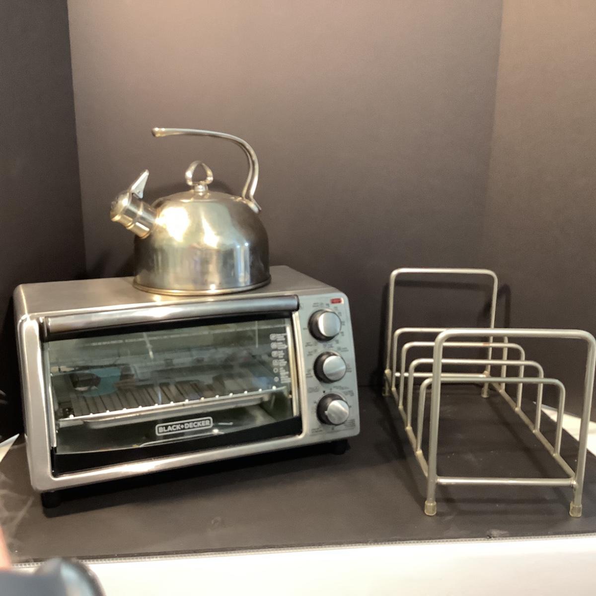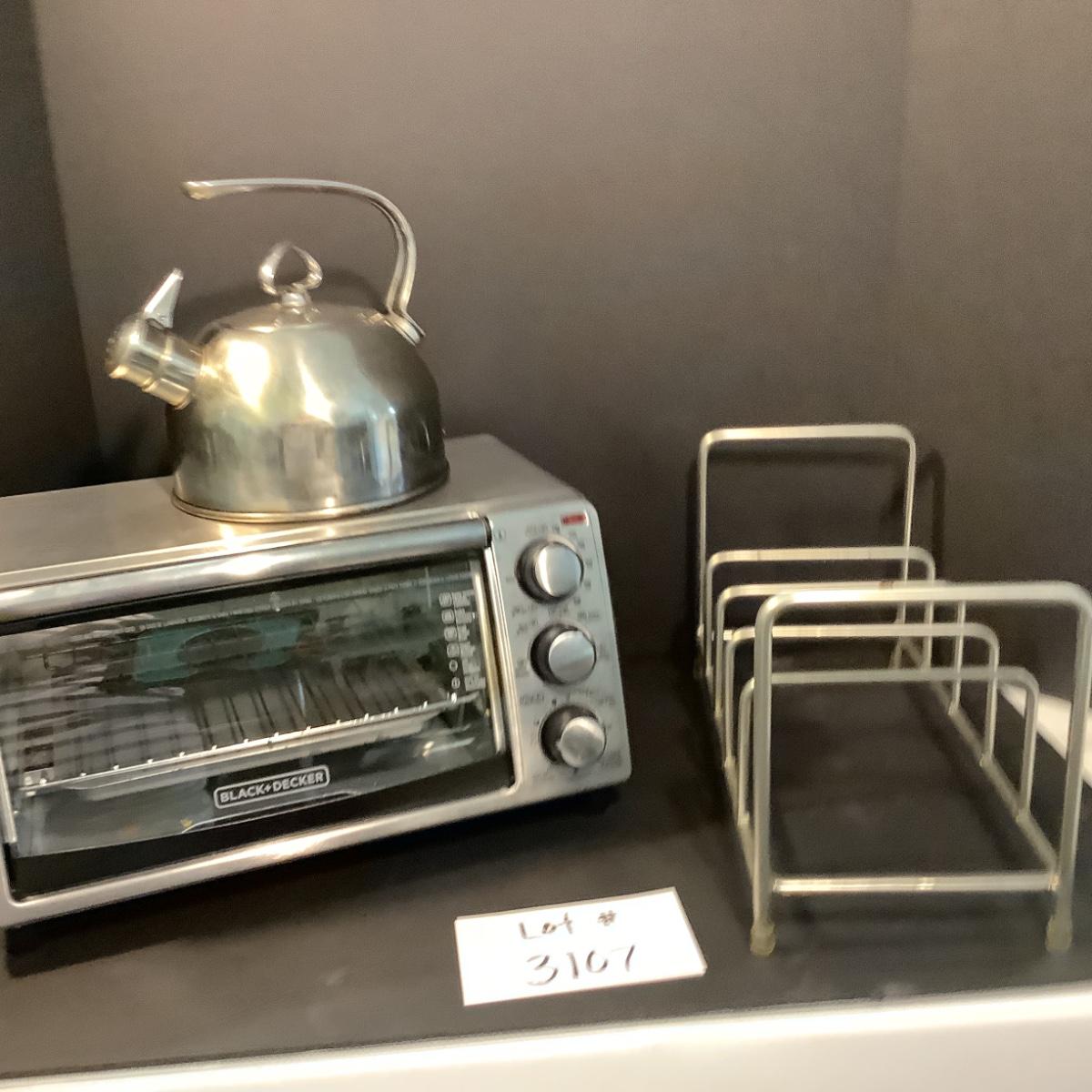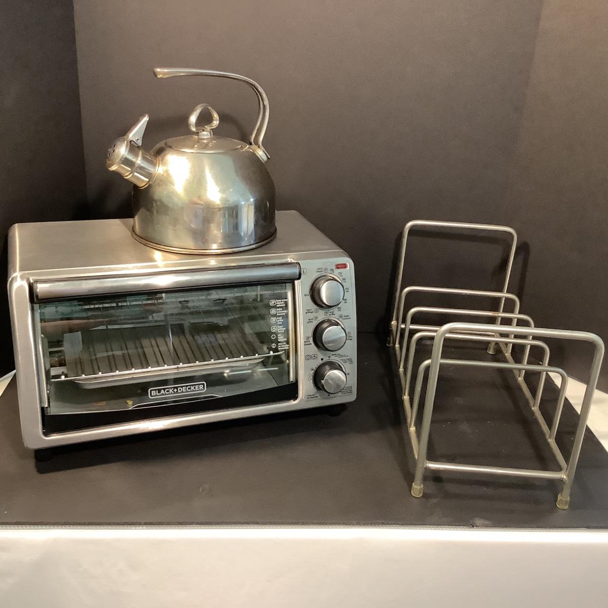 3107 Black and Decker Toaster Oven, Stainless Tea Kettle, and Rack