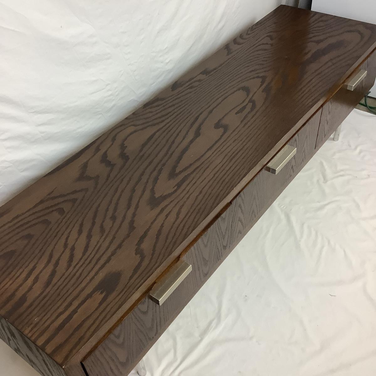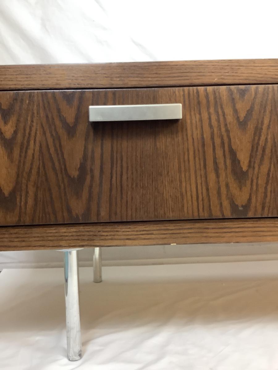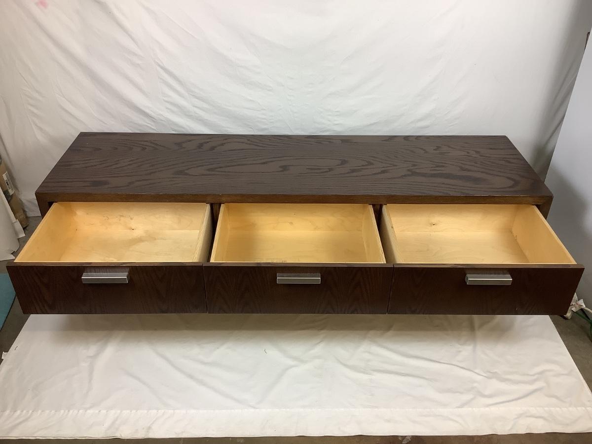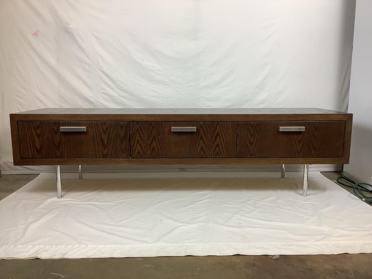 Modern Dresser, Credenza w/3-Drawers. Chrome Legs & Dark Walnut Venire.