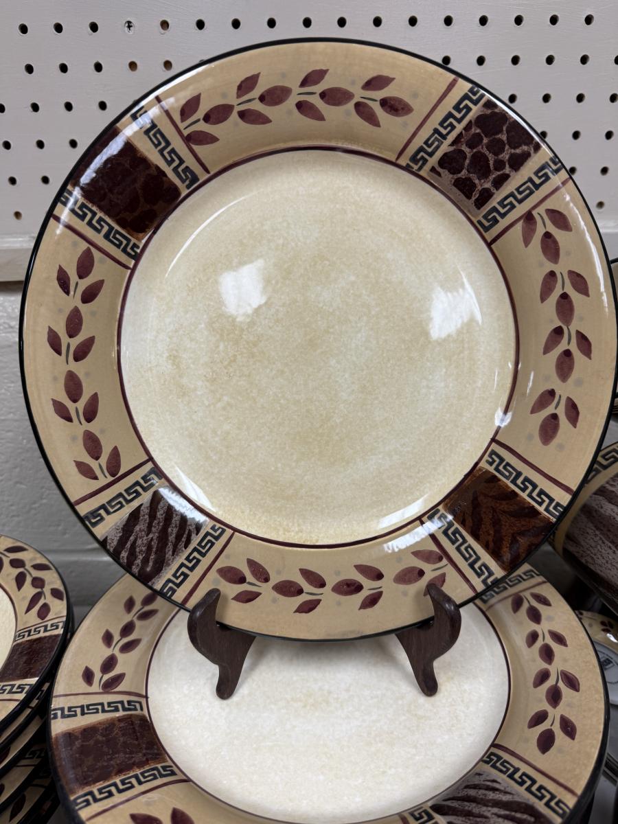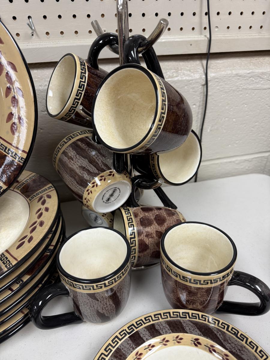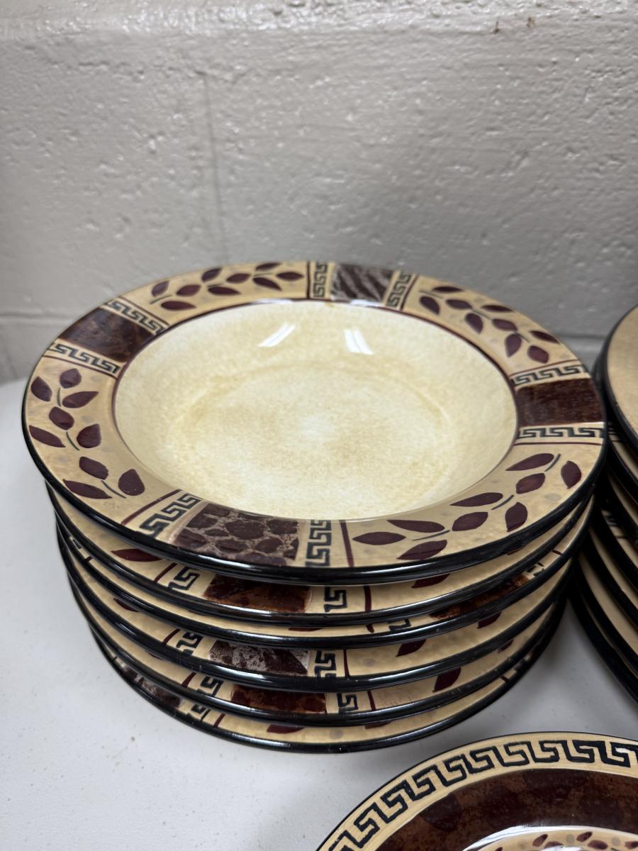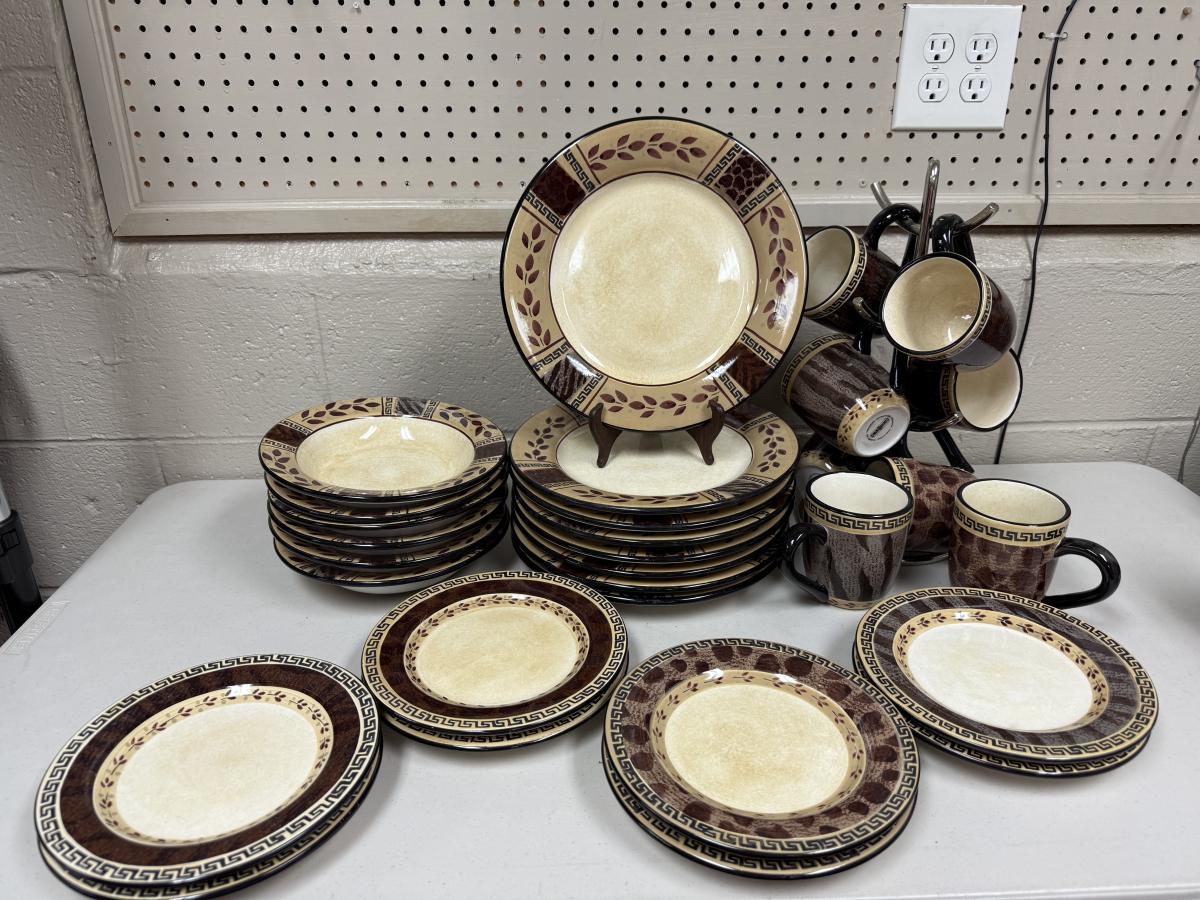 8 dinner, 8 salad, 8 coffee mugs, 6 bowls