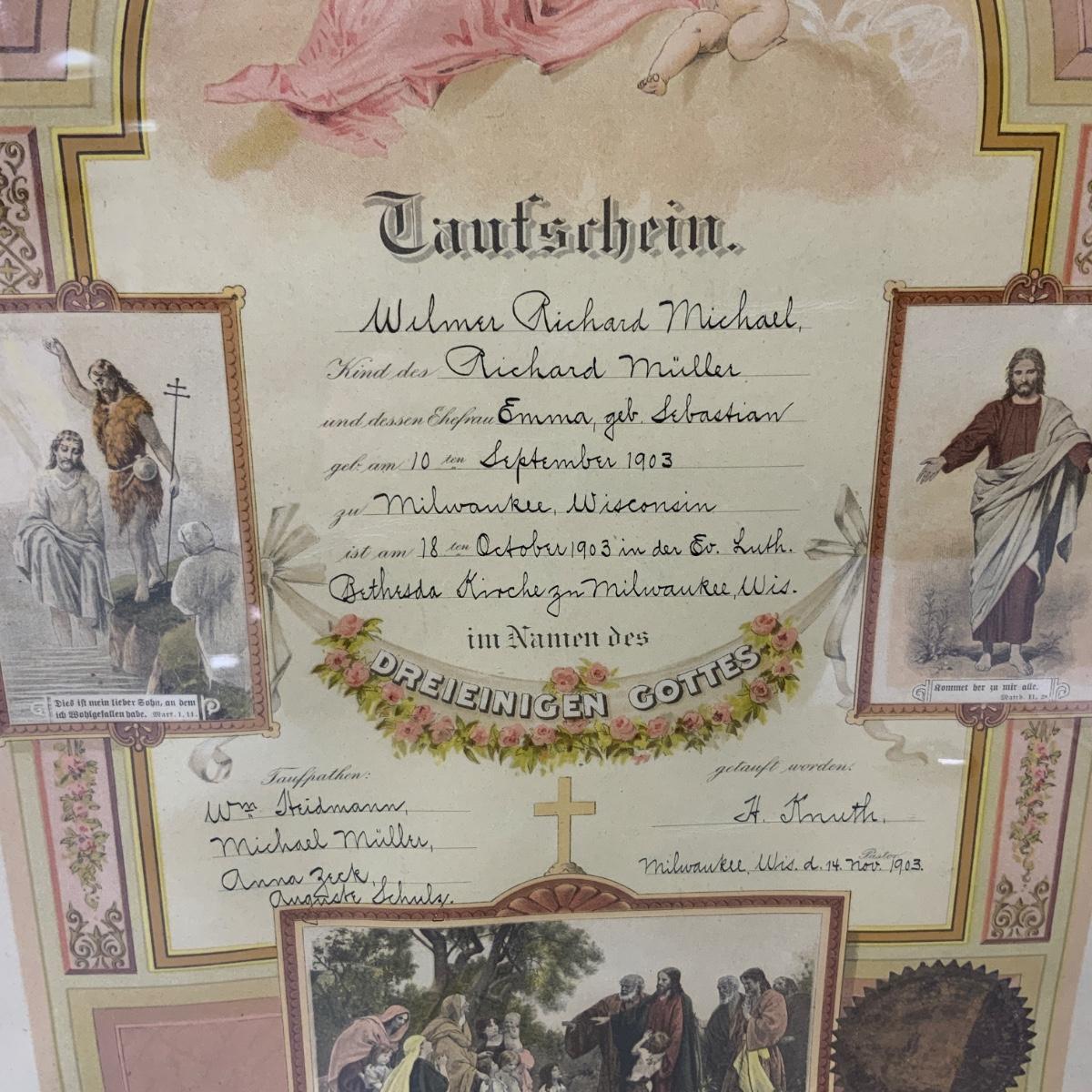 .31. 1903 Baptismal Certificate | Milwaukee, Wisconsin