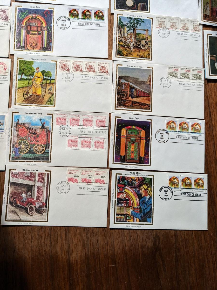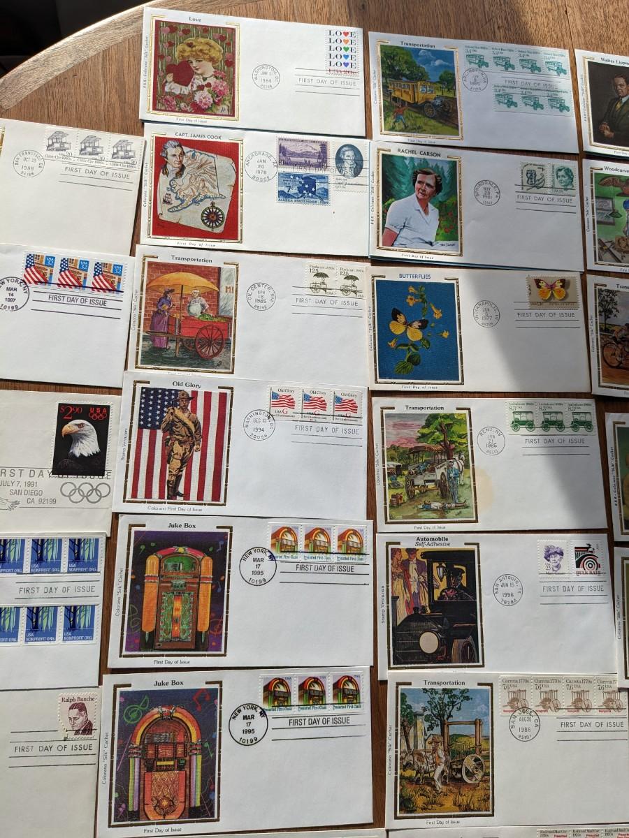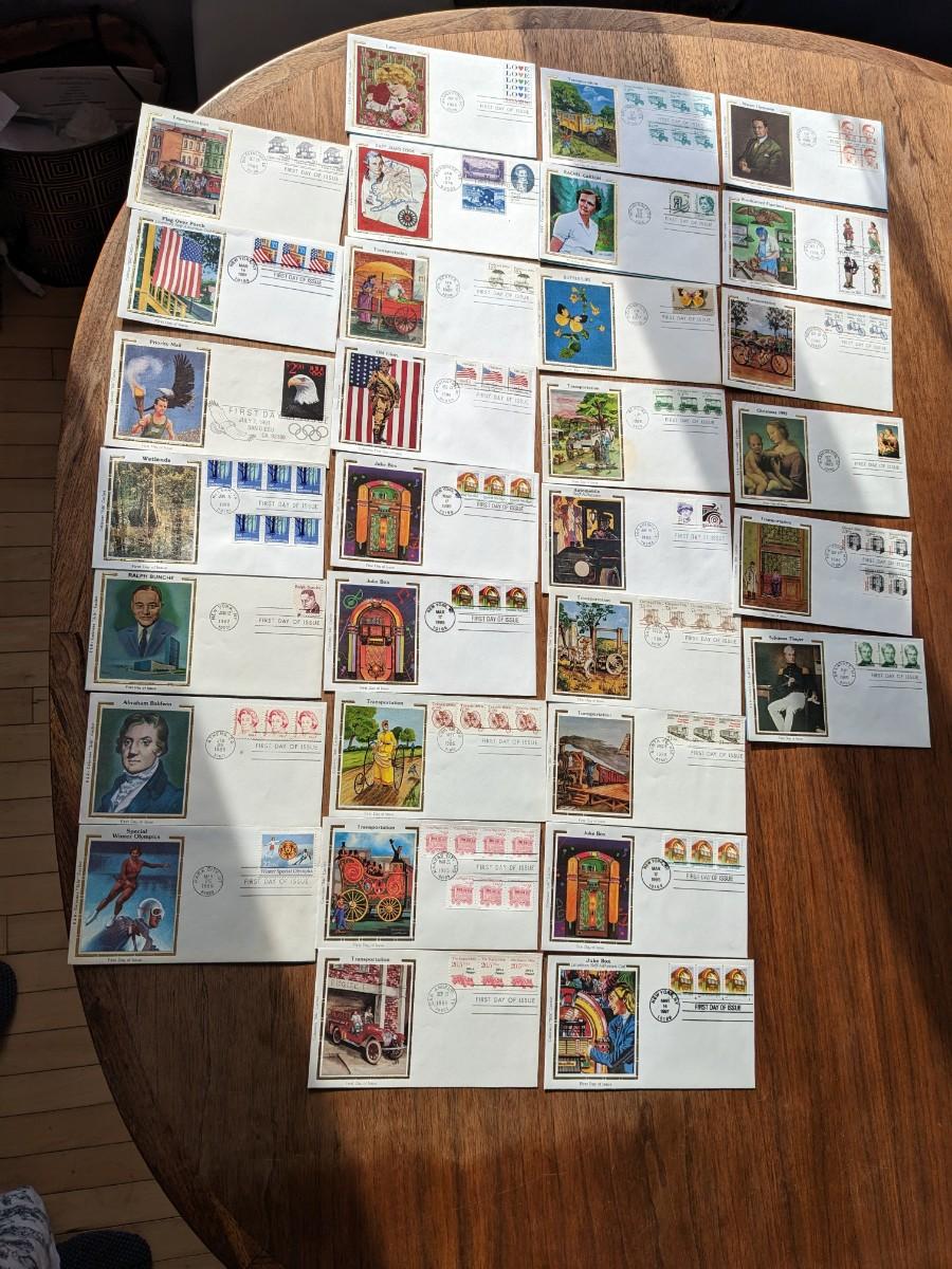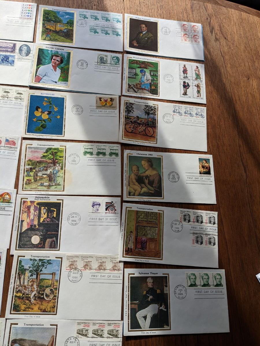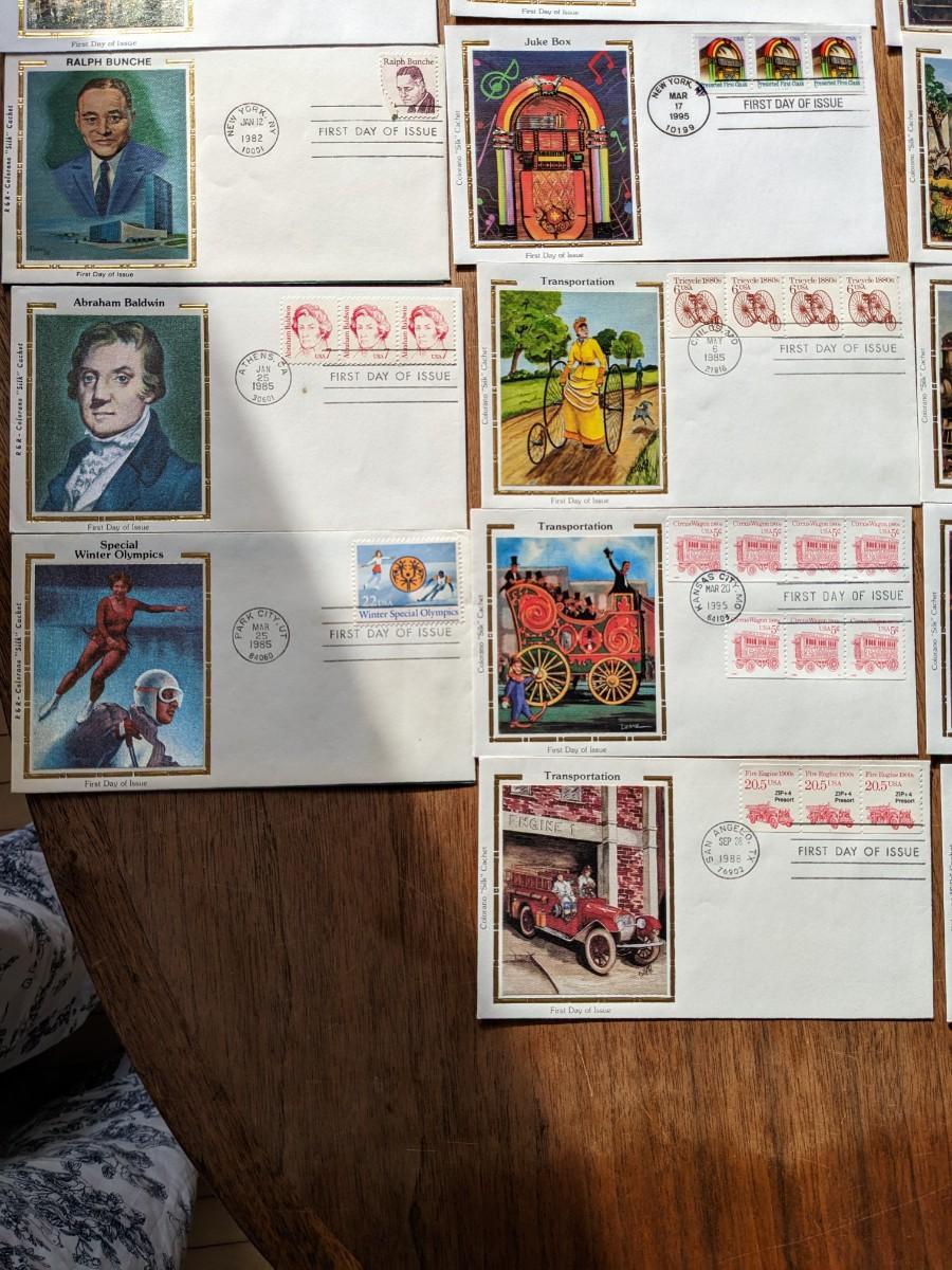 31, 1980's Silk Cachet Collection First Day Issue Stamps and Envelopes
