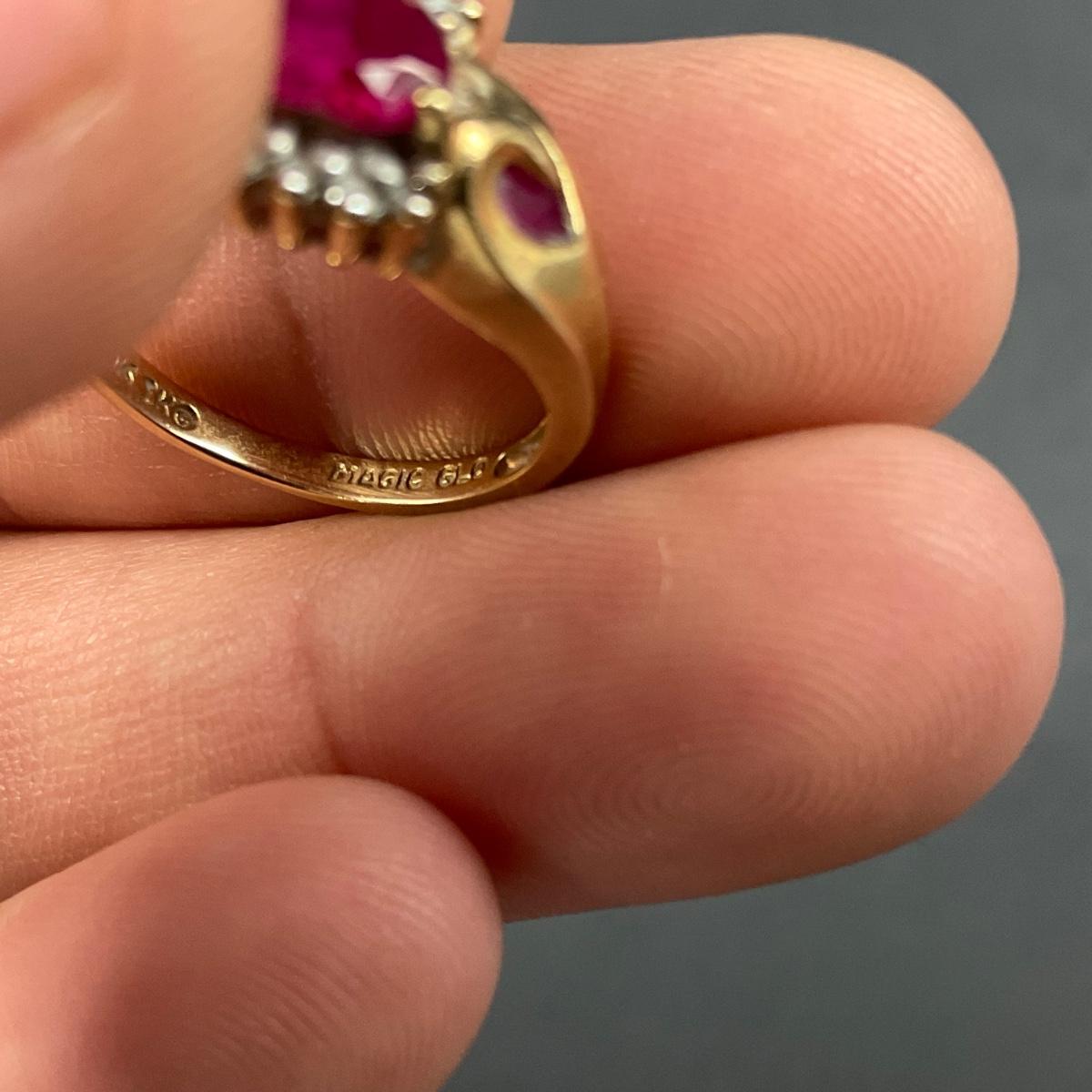One marked 10KT ring size 6. Ring has a pink heart center stone. Stones surrounding the heart are tested diamond stones. This piece does have some scuffs, scratches, marks, or slight damage, but otherwise appears to be in great shape. Please see photos for details and condition. Any condition statement is given as a courtesy to a client, is an opinion, and should not be treated as a statement of fact. Reference to condition written, oral or within a condition report shall not be regarded as a full account of condition and may not include all defects, alterations, or restorations. Absence of a condition report does not imply a lot is flawless or lacking imperfections or damage. Katherine’s Auction & Appraisal Service shall have no responsibility for any error or omission. Returns shall not be accepted on the basis of condition. ::: Shipping is available on this lot. If you require shipping you must let us know at the close of the auction. We will coordinate with you after the item has been won. Shipping fees will include insurance up to or exceeding the value of all items being mailed. If you have any questions regarding this lot please contact the auctioneer either via this website, by direct email or by phone. PICK UP TIMES and other important information can be found in the TERMS and DESCRIPTION of the auction. Please take a look for pertinent information. Thanks!