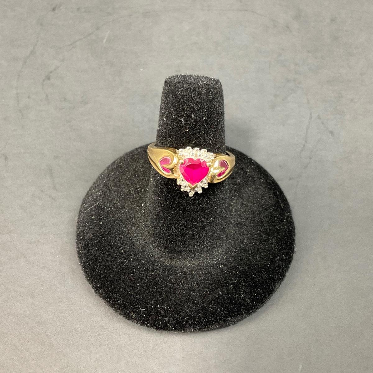 -31- FINE JEWELRY | 10KT Pink Heart & Diamond Ring | Marked