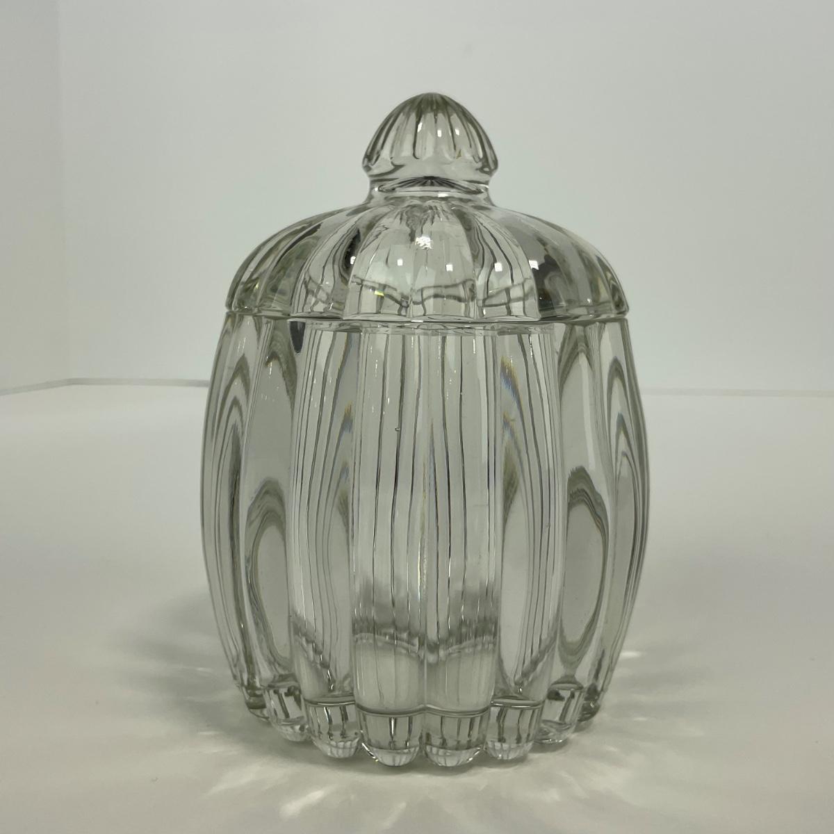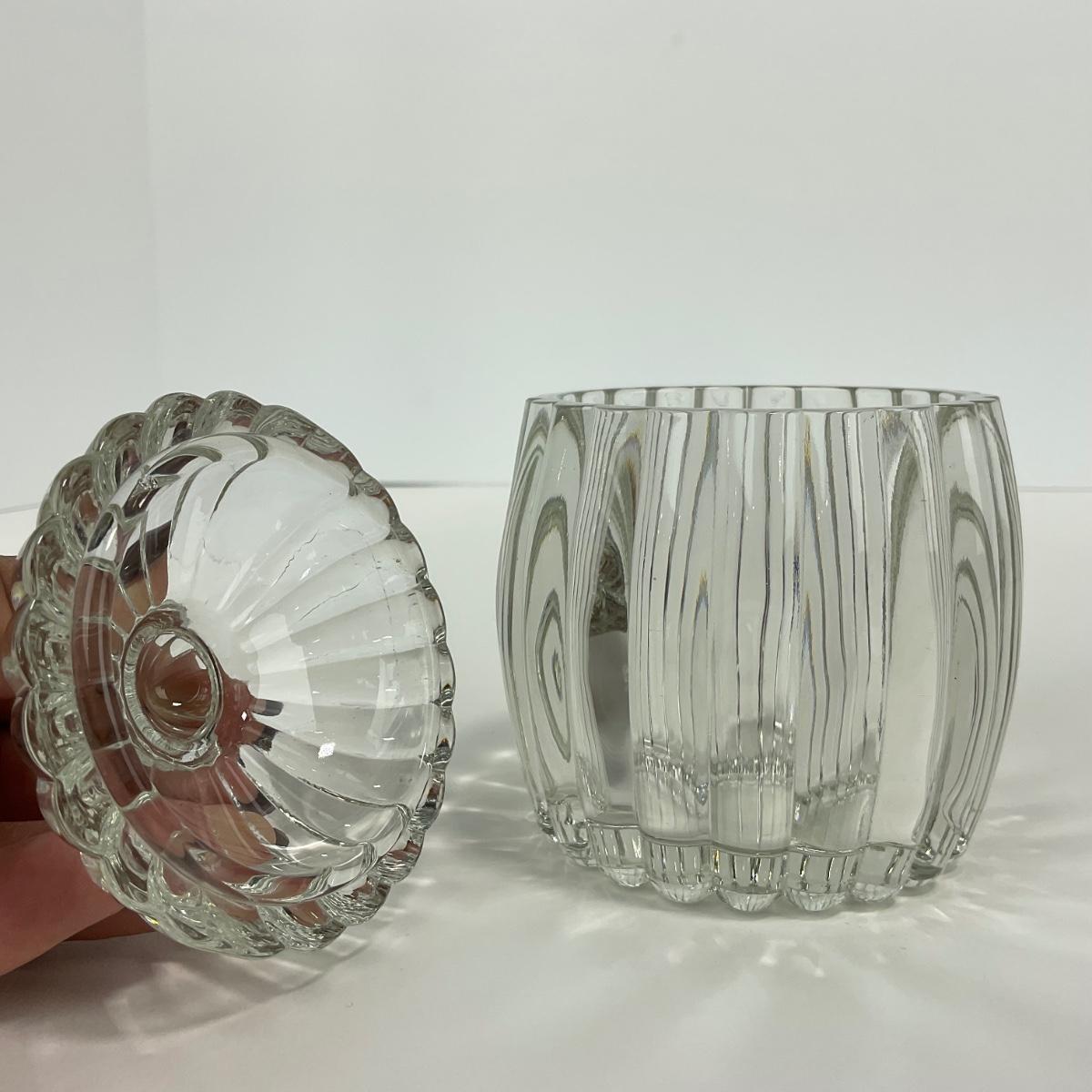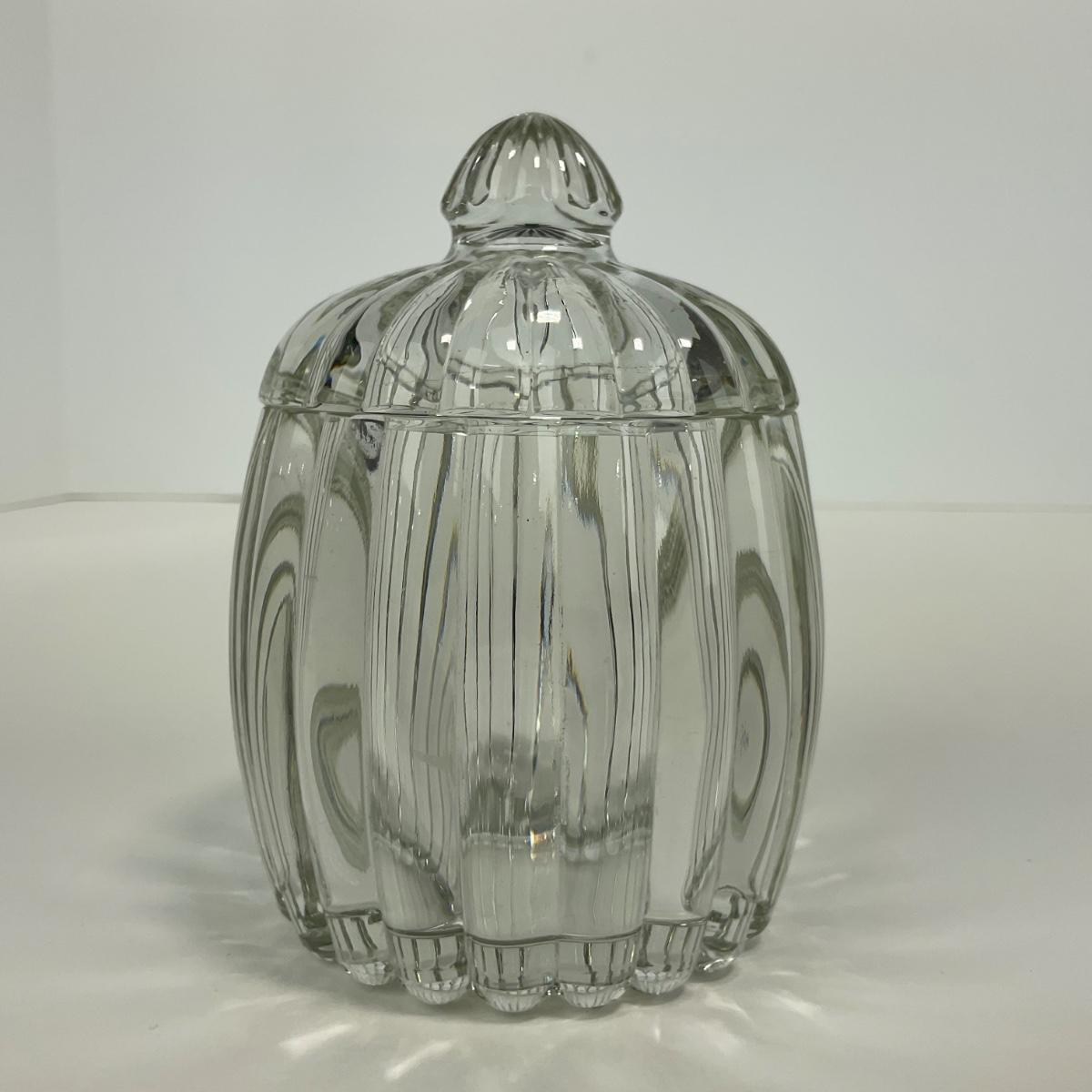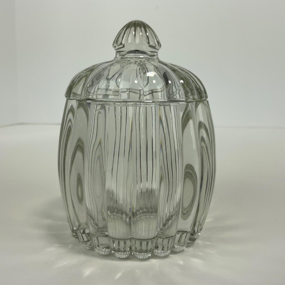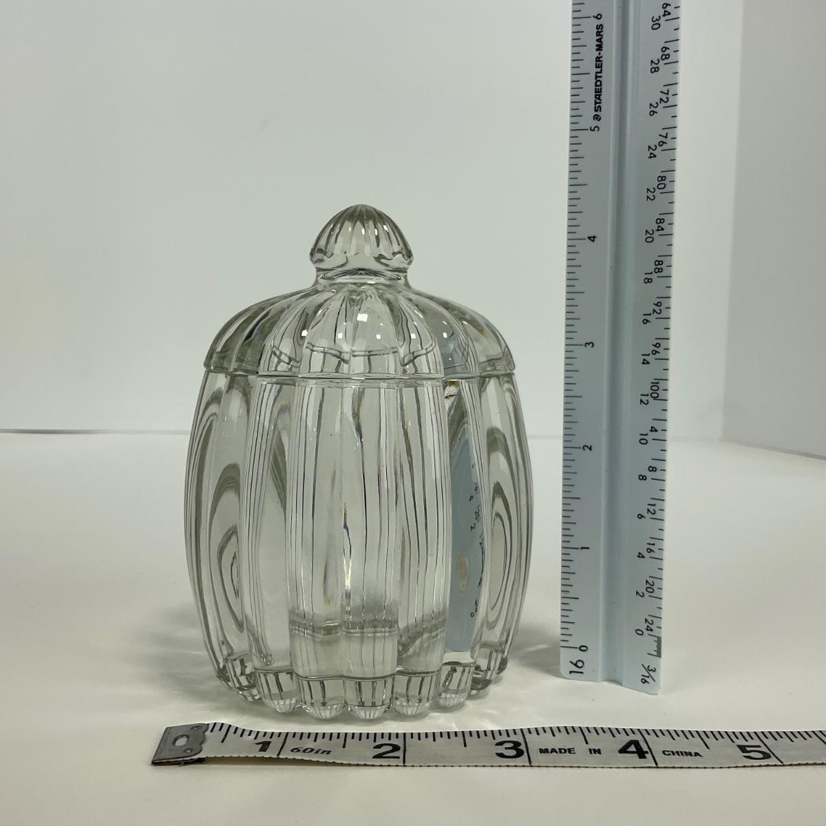 -31- GLASSWARE | Vintage Jeanette Clear Ribbed Covered Dish