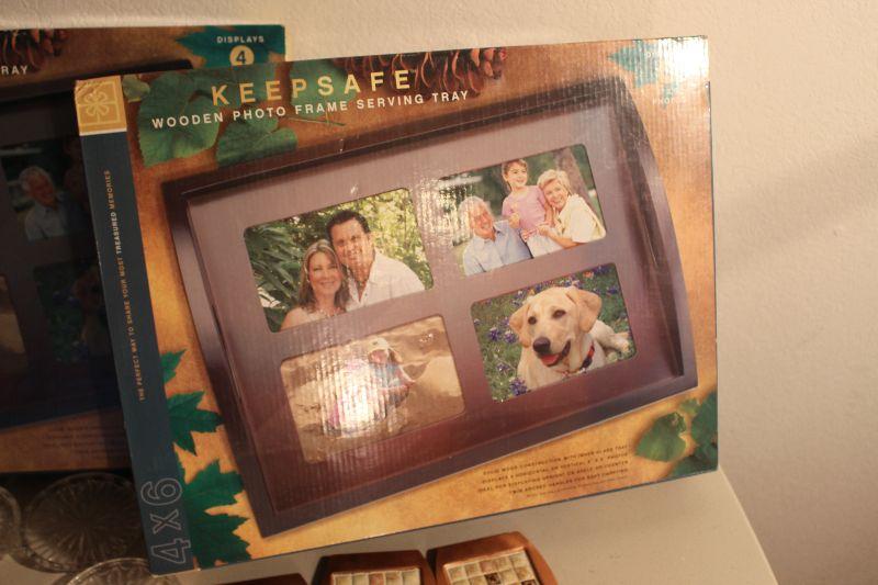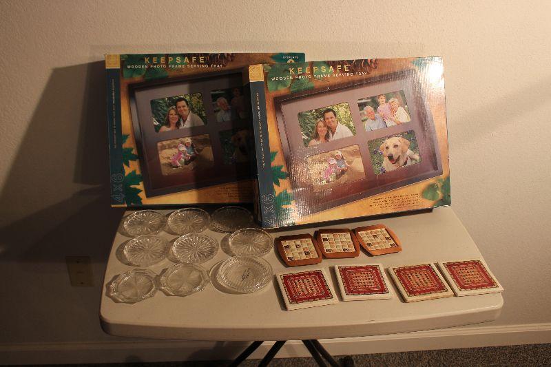 #31 Lot Two New Wooden Keepsafe Frame Serving Tray and Coaster