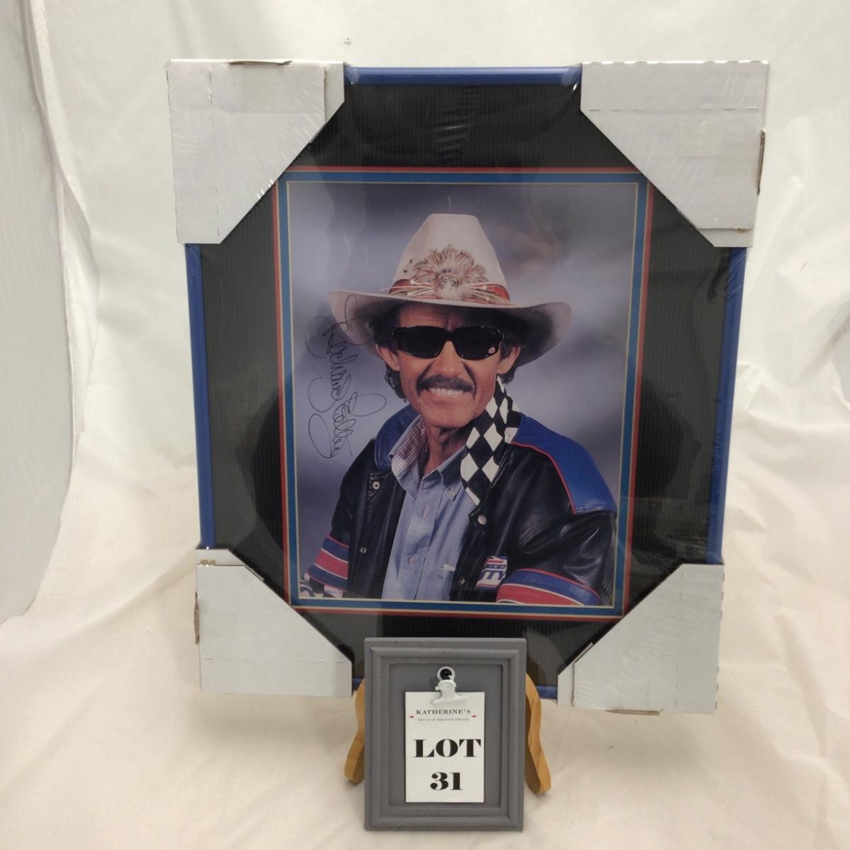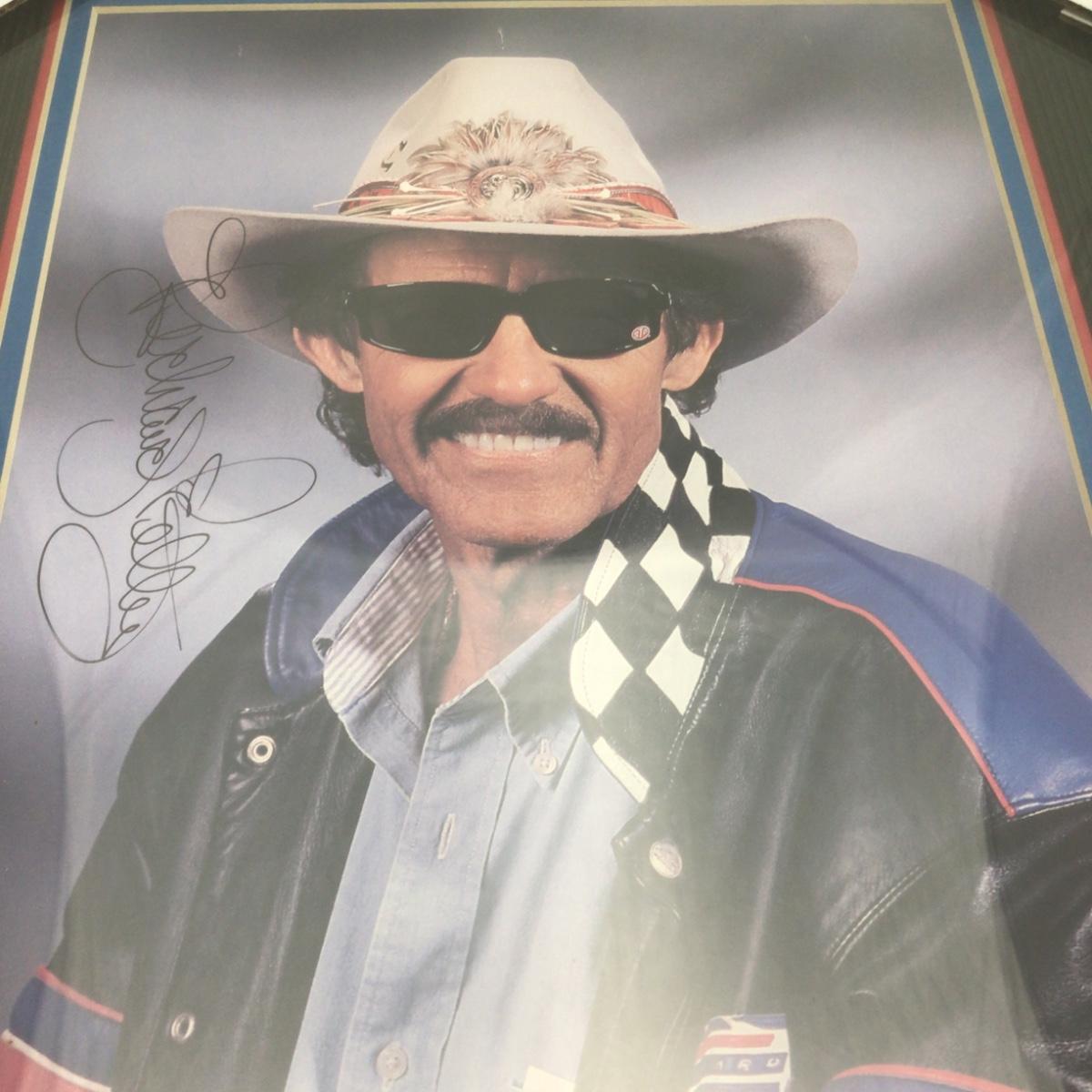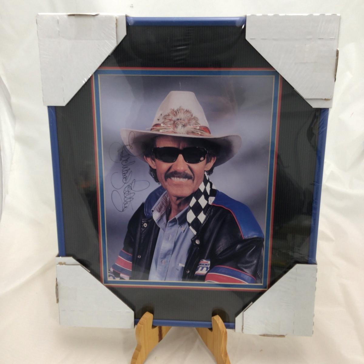 Signed Richard Petty Framed with no Certificate of authenticity. Signature is assumed authentic but not guaranteed. 13.5 inches by 16 inches. Please see photos for details and condition. ::: Shipping is available on this lot. If you require shipping you must let us know at the close of the auction. We will coordinate with you after the item has been won. Shipping fees will include insurance up to or exceeding the value of all items being mailed. If you have any questions regarding this lot please contact the auctioneer either via this website, by direct email or by phone. PICK UP TIMES and other important information can be found in the TERMS and DESCRIPTION of the auction. Please take a look for pertinent information. Thanks!
