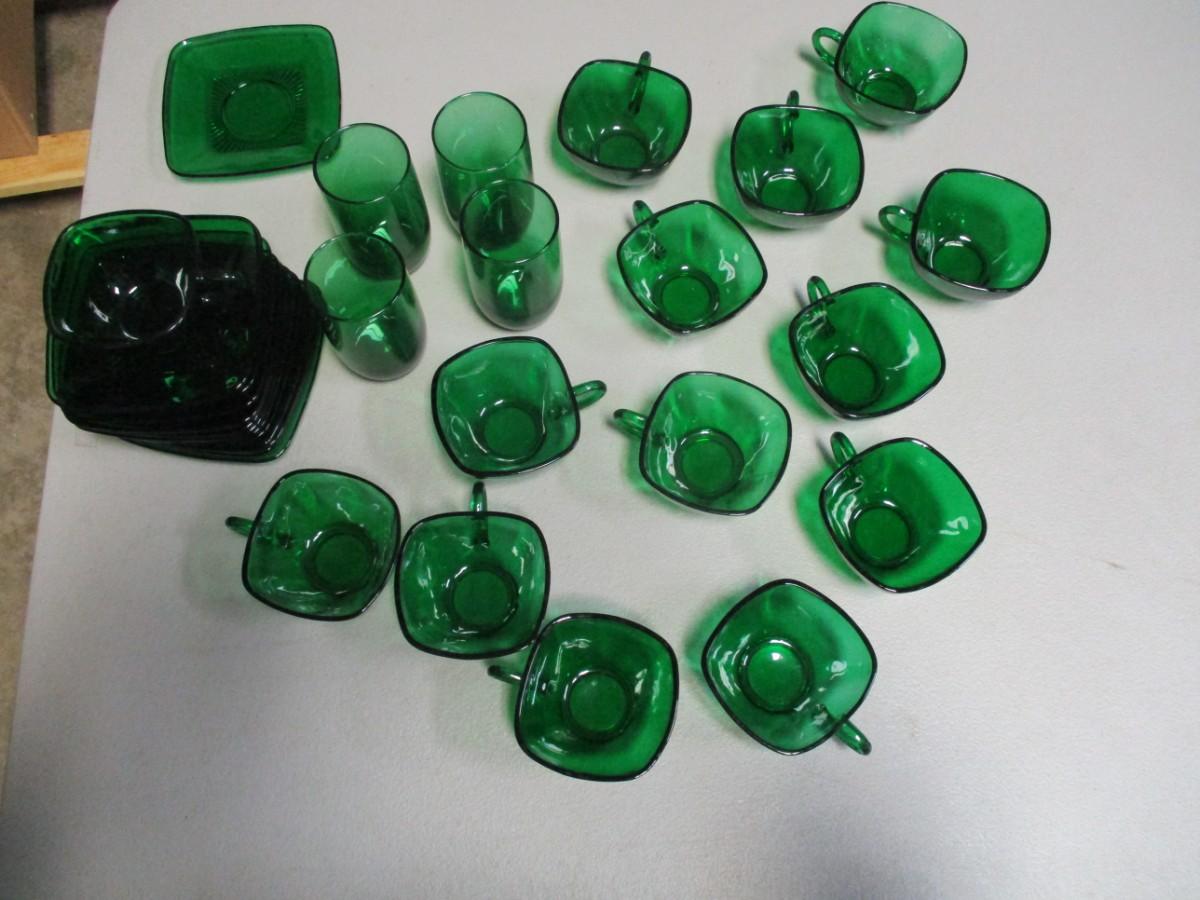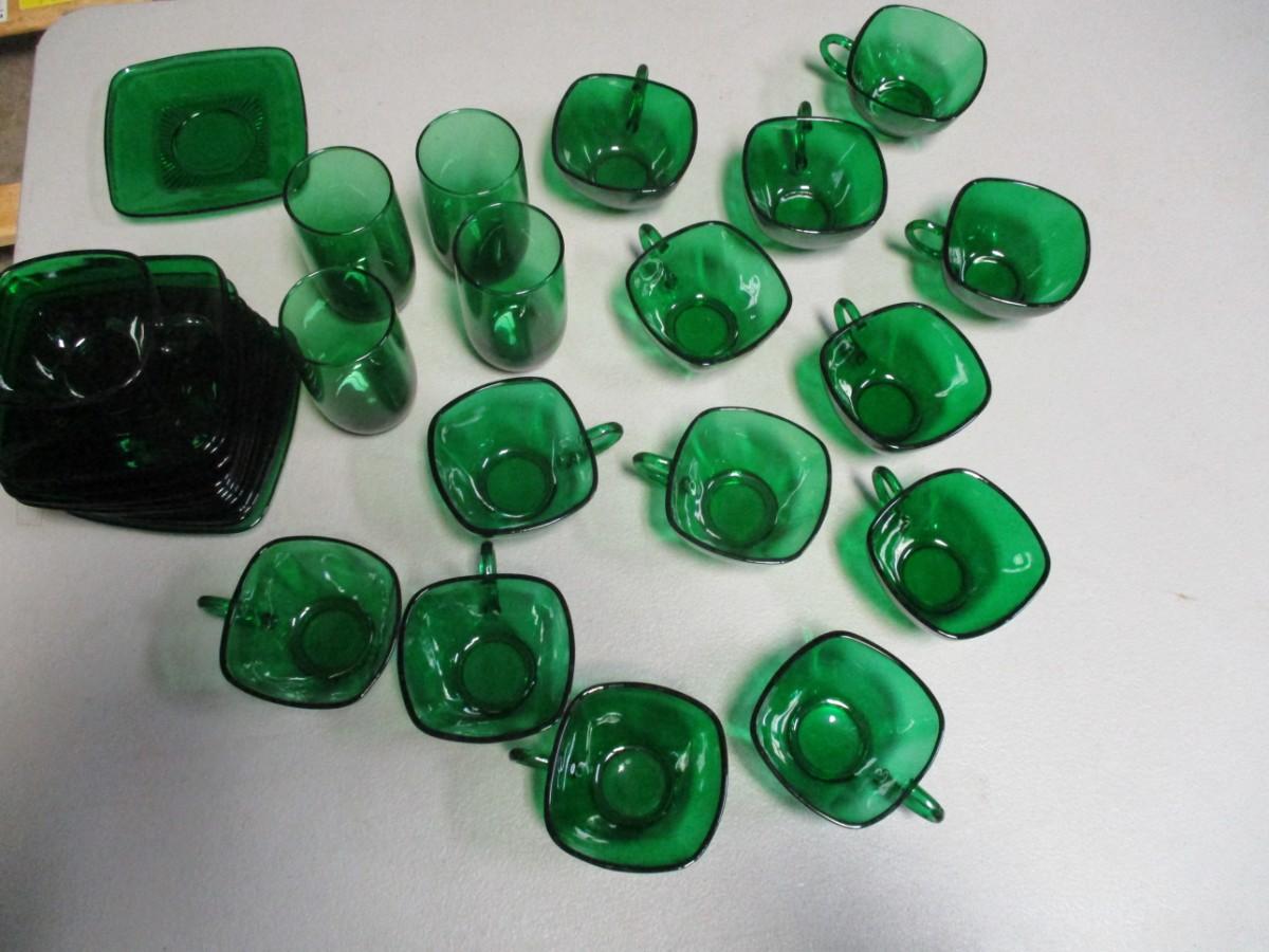 31 Pieces Of Green Depression Glass