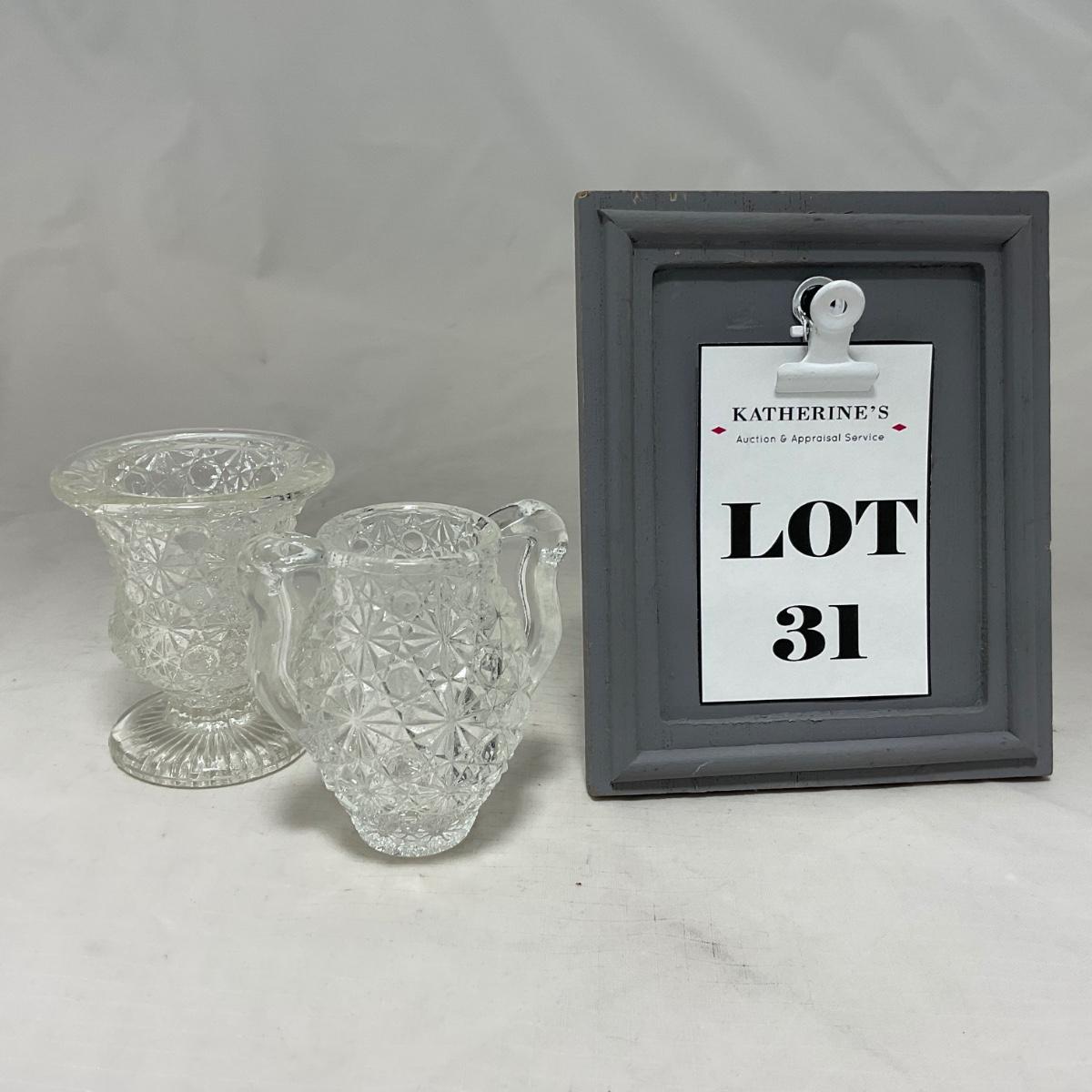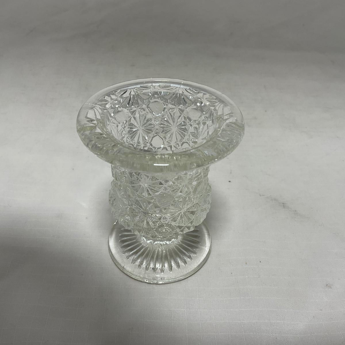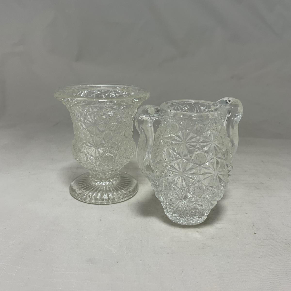 Two small clear glass miniature vases, beautifully designed. Please see photos for details and condition. ::: Shipping is available on this lot. If you require shipping you must let us know at the close of the auction. We will coordinate with you after the item has been won. Shipping fees will include insurance up to or exceeding the value of all items being mailed. If you have any questions regarding this lot please contact the auctioneer either via this website, by direct email or by phone. PICK UP TIMES and other important information can be found in the TERMS and DESCRIPTION of the auction. Please take a look for pertinent information. Thanks!