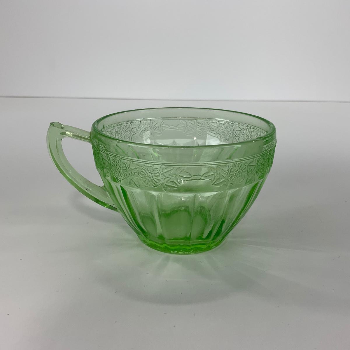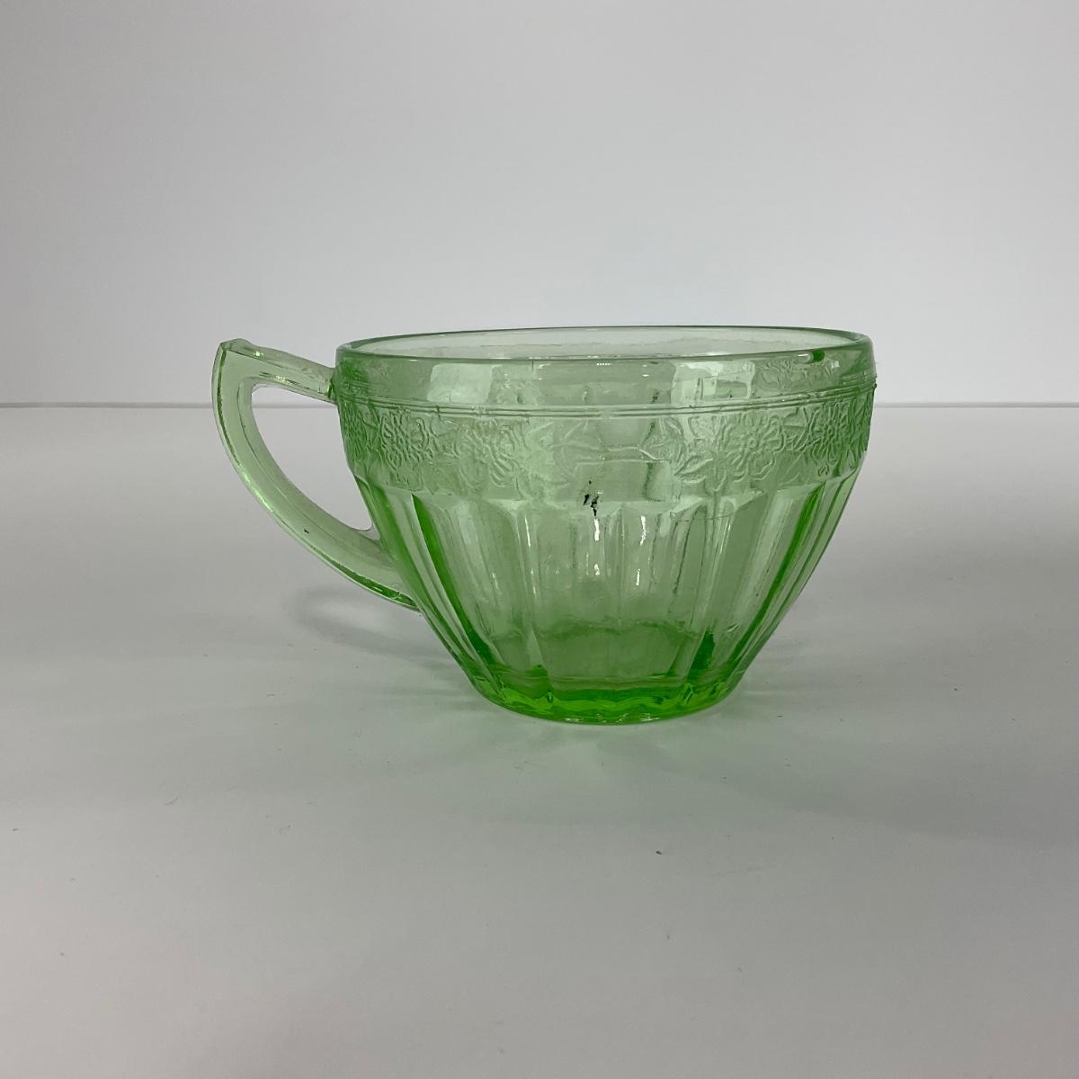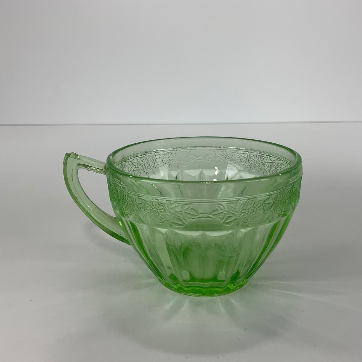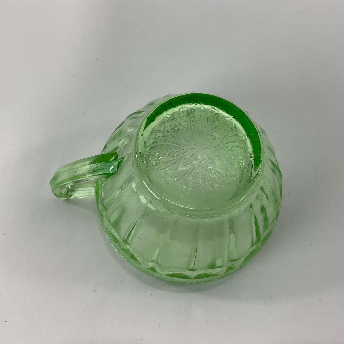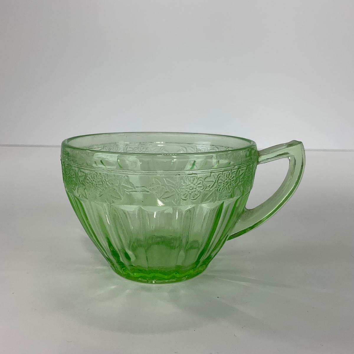 -31- URANIUM | Adam Jeanette Glass Co. | Green Depression Cup & Saucer