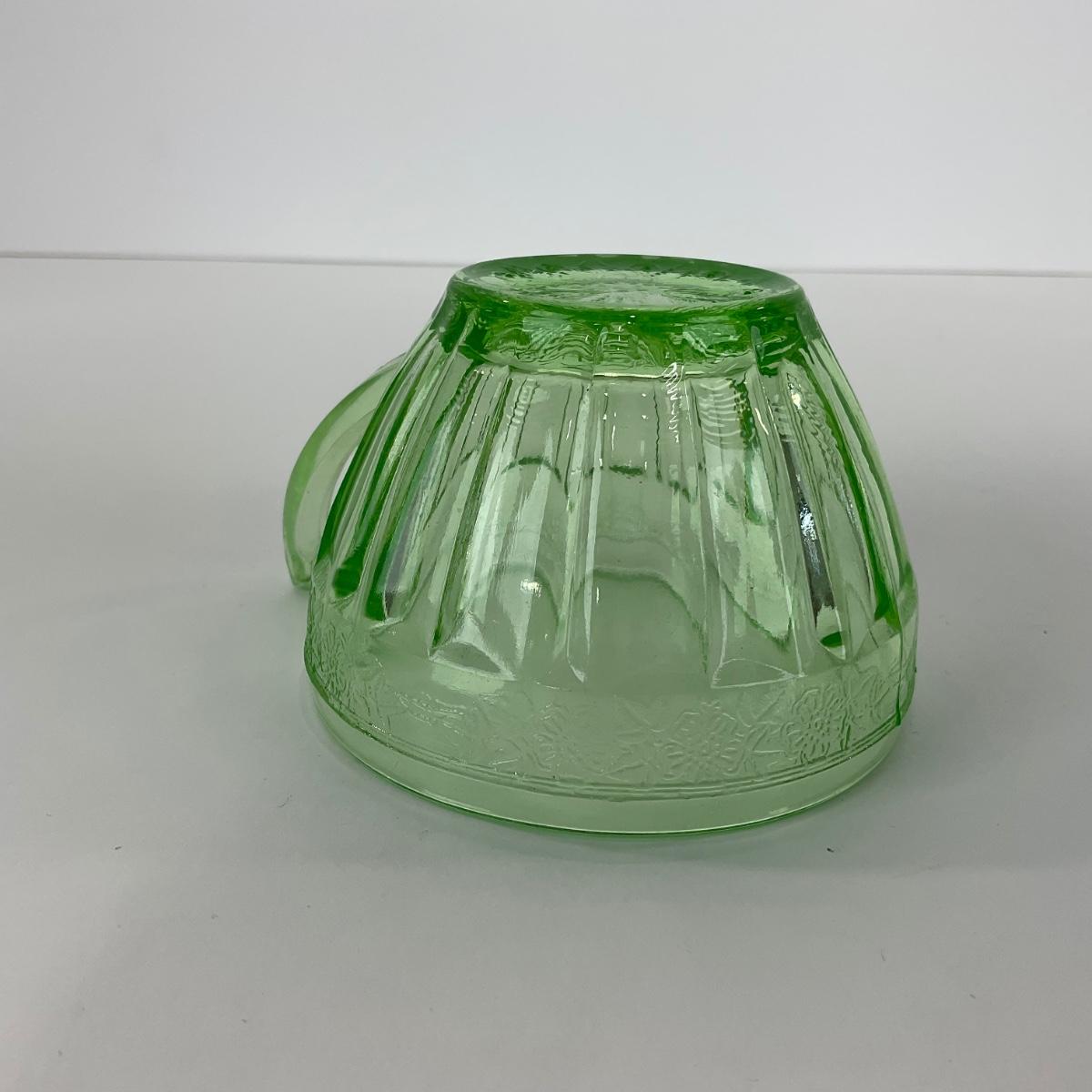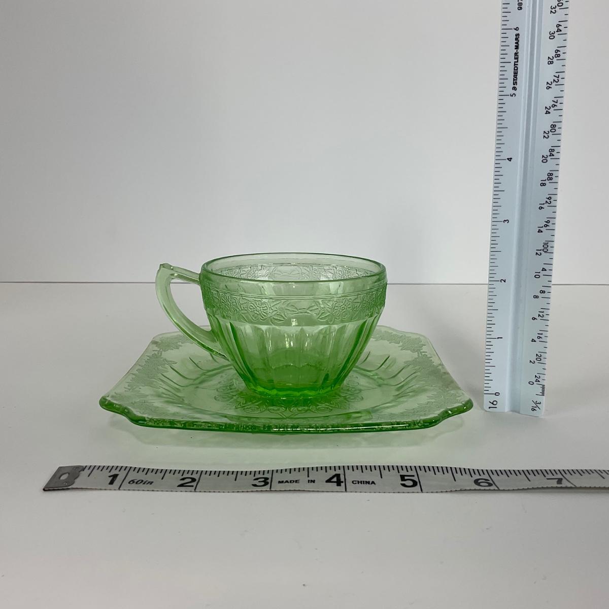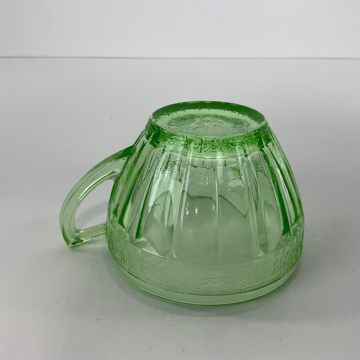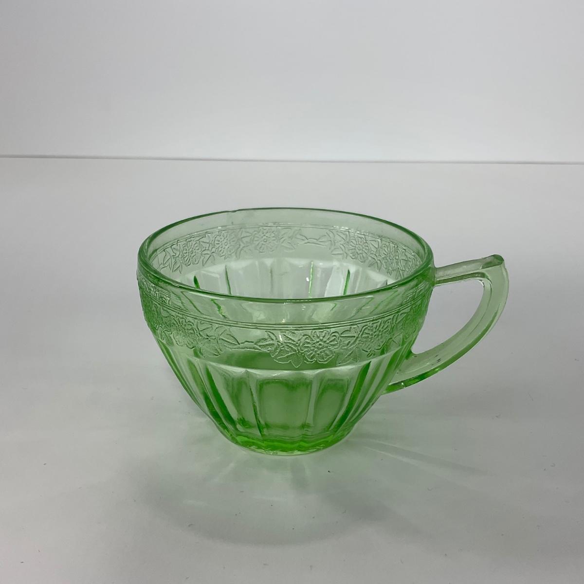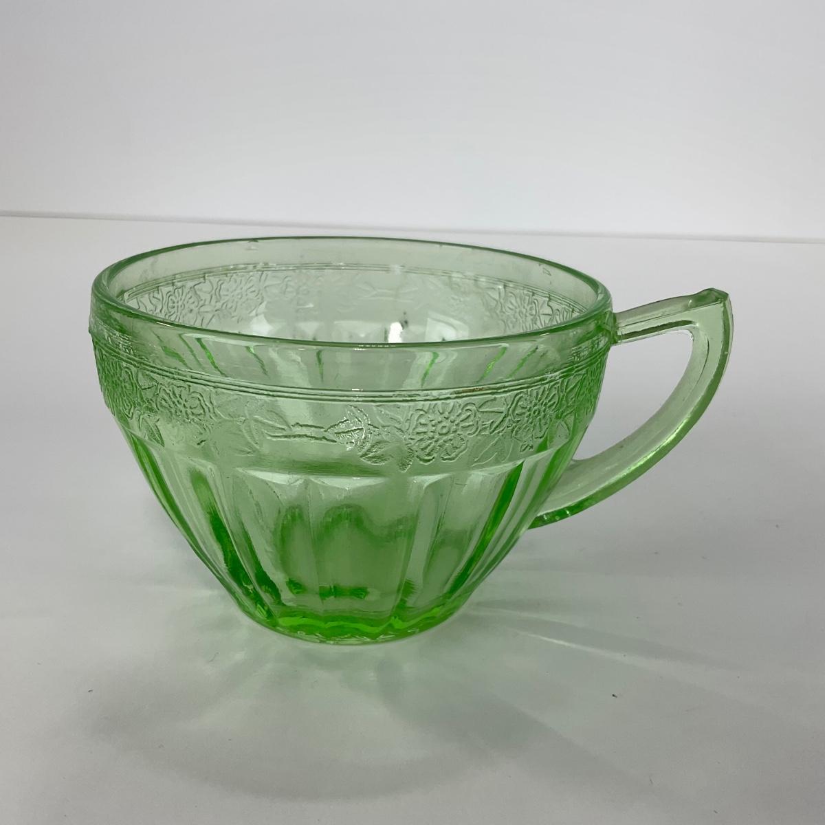 -31- URANIUM | Adam Jeanette Glass Co. | Green Depression Cup & Saucer