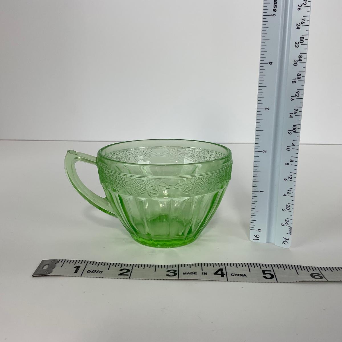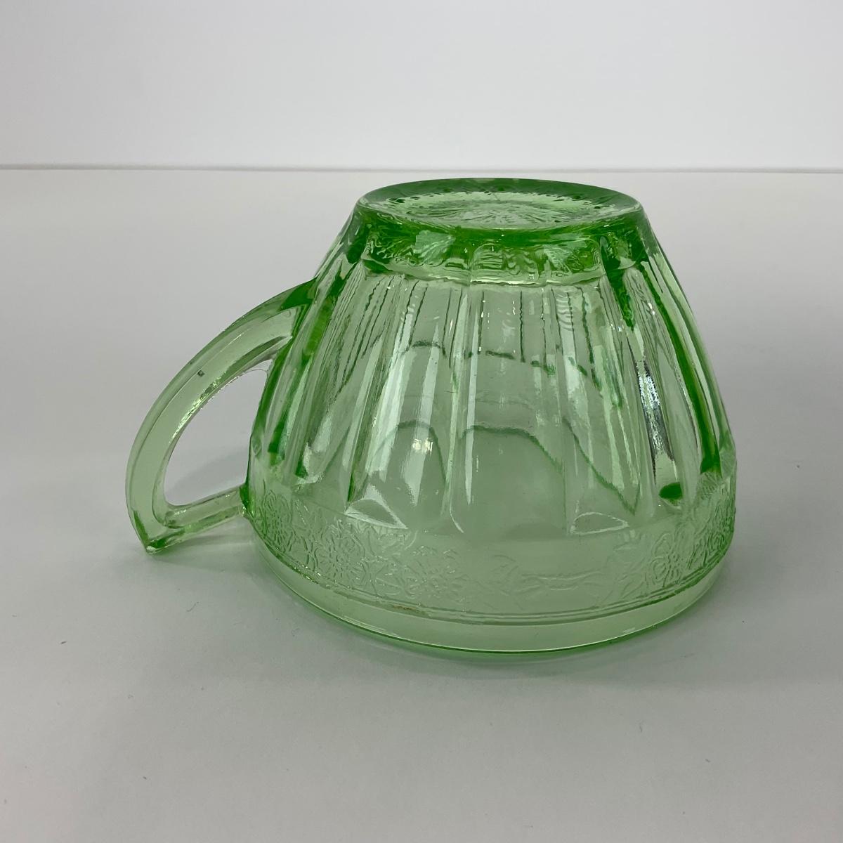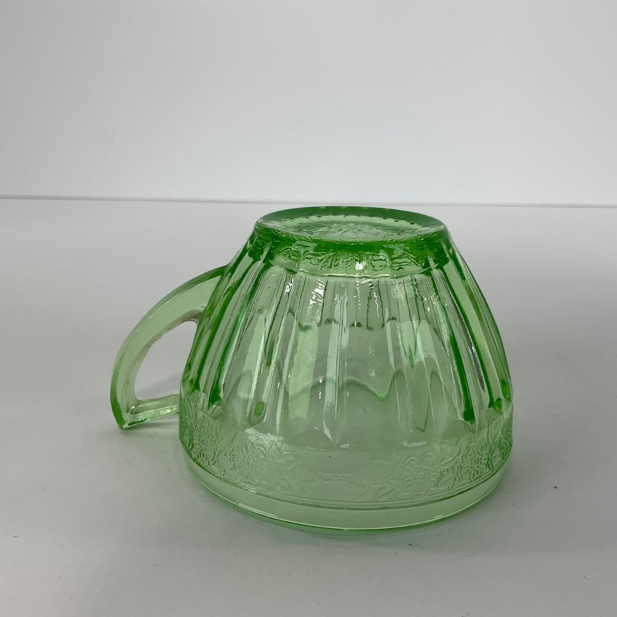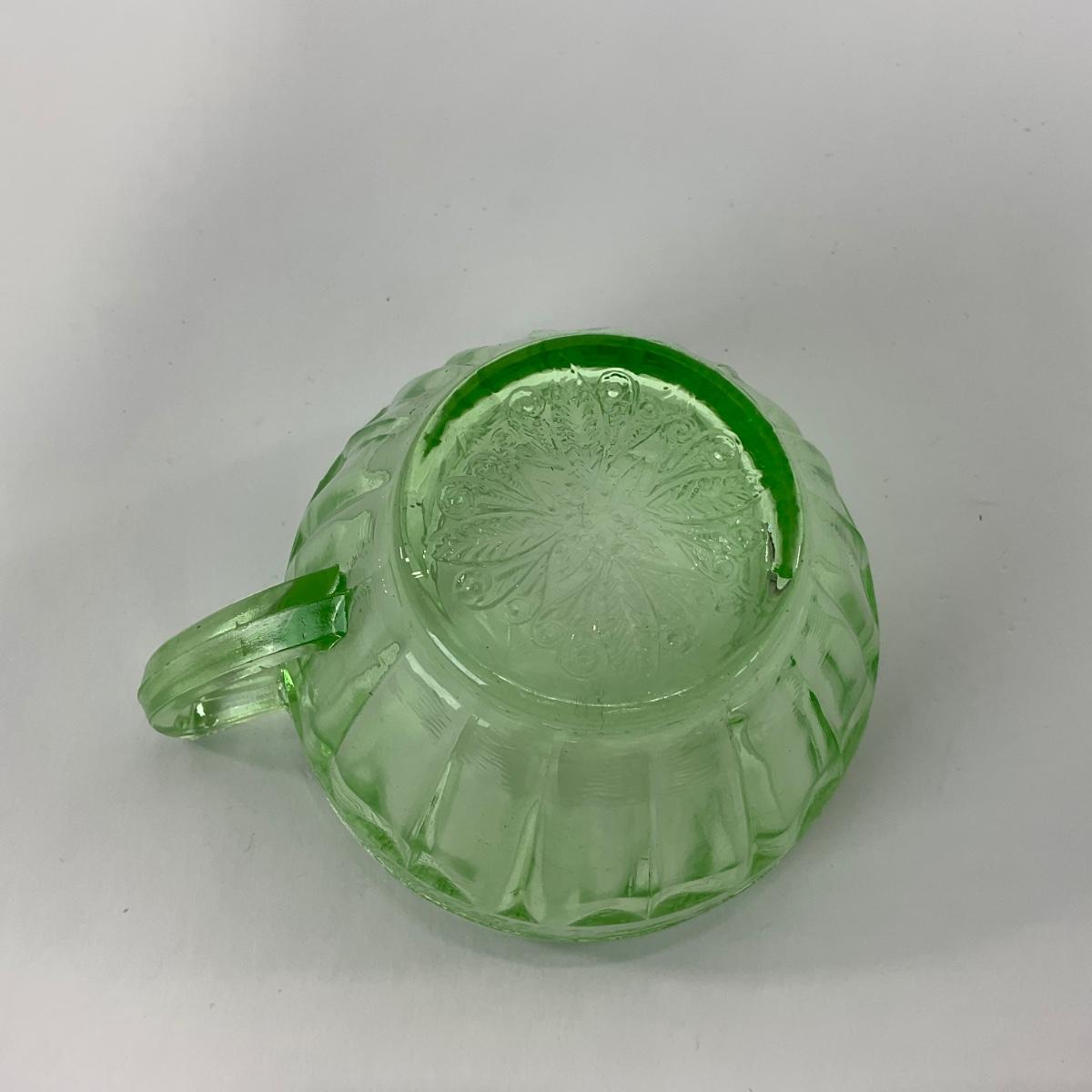 -31- URANIUM | Adam Jeanette Glass Co. | Green Depression Cup & Saucer