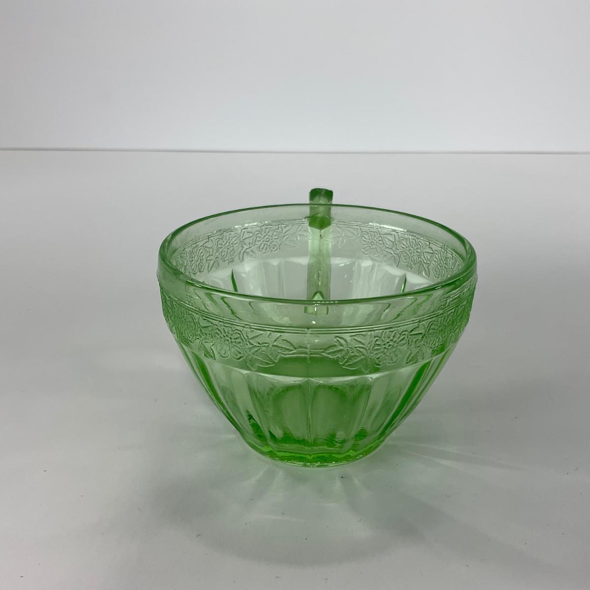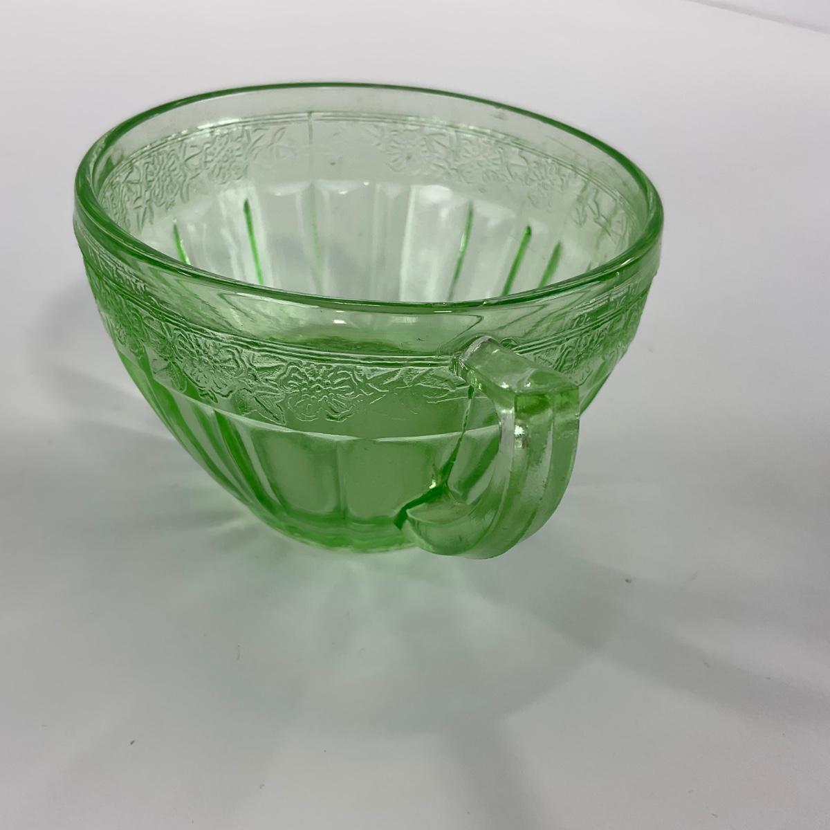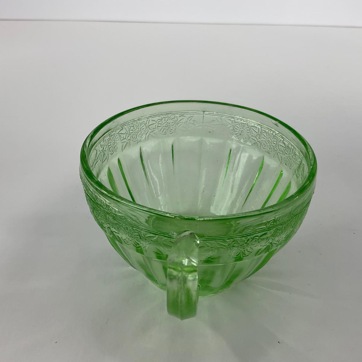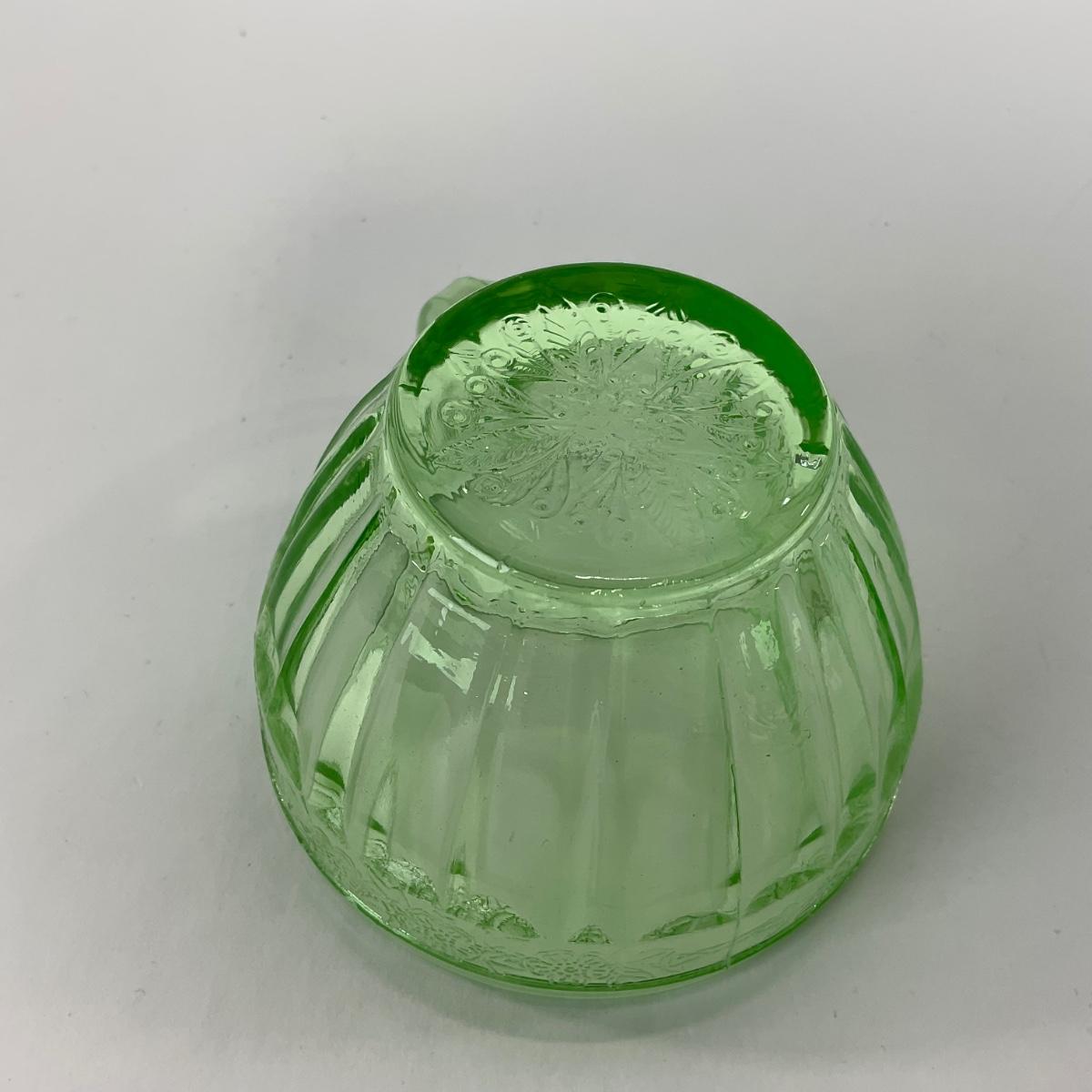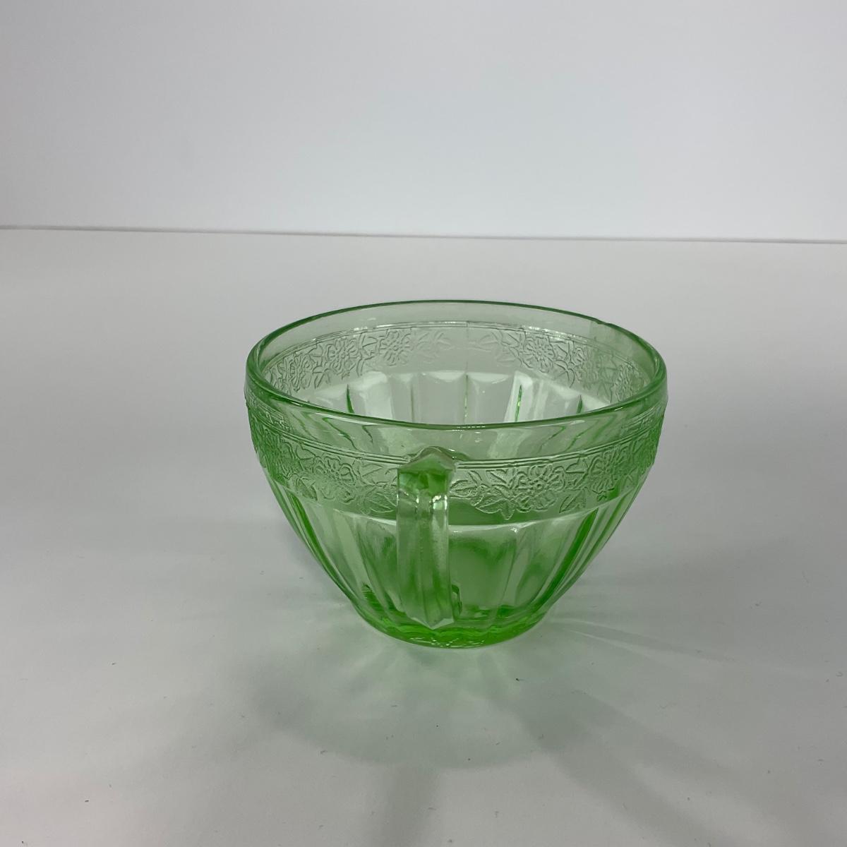 -31- URANIUM | Adam Jeanette Glass Co. | Green Depression Cup & Saucer