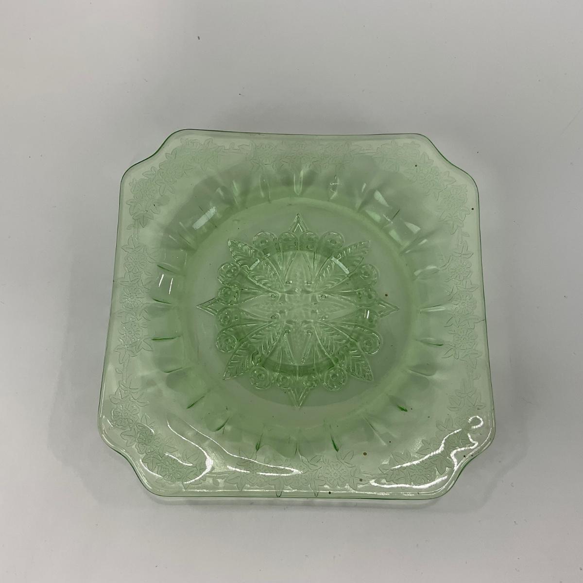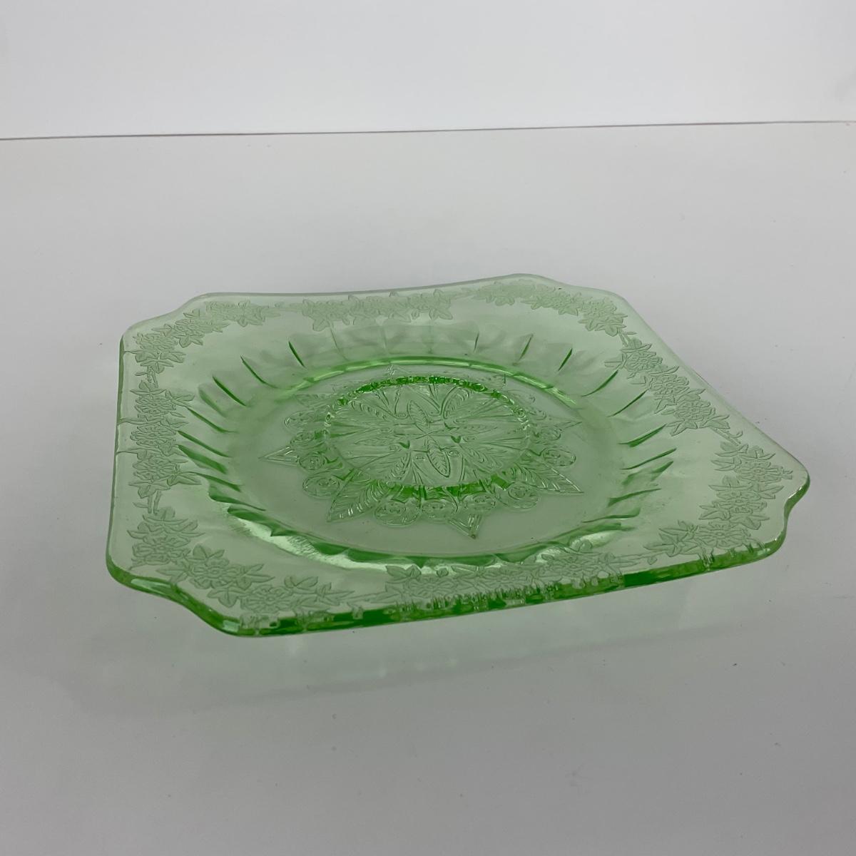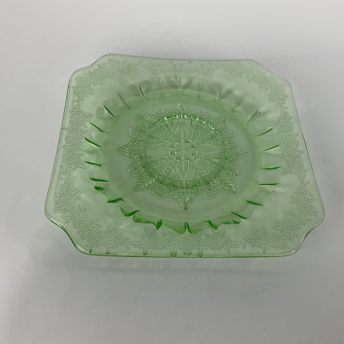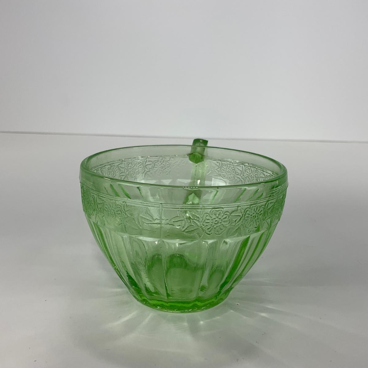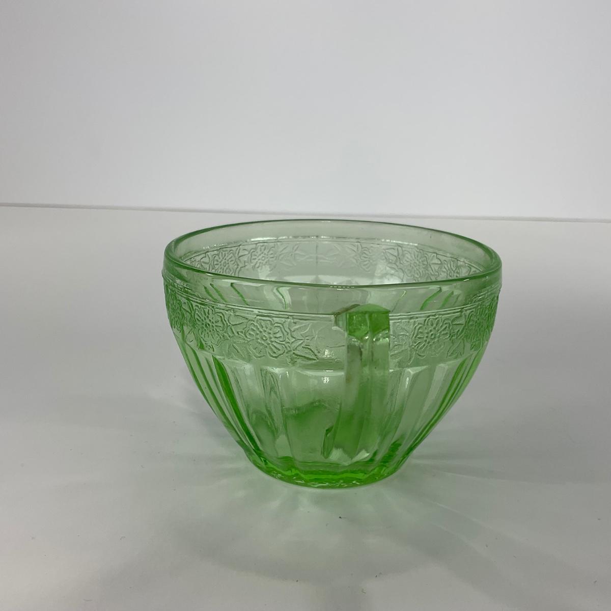 -31- URANIUM | Adam Jeanette Glass Co. | Green Depression Cup & Saucer