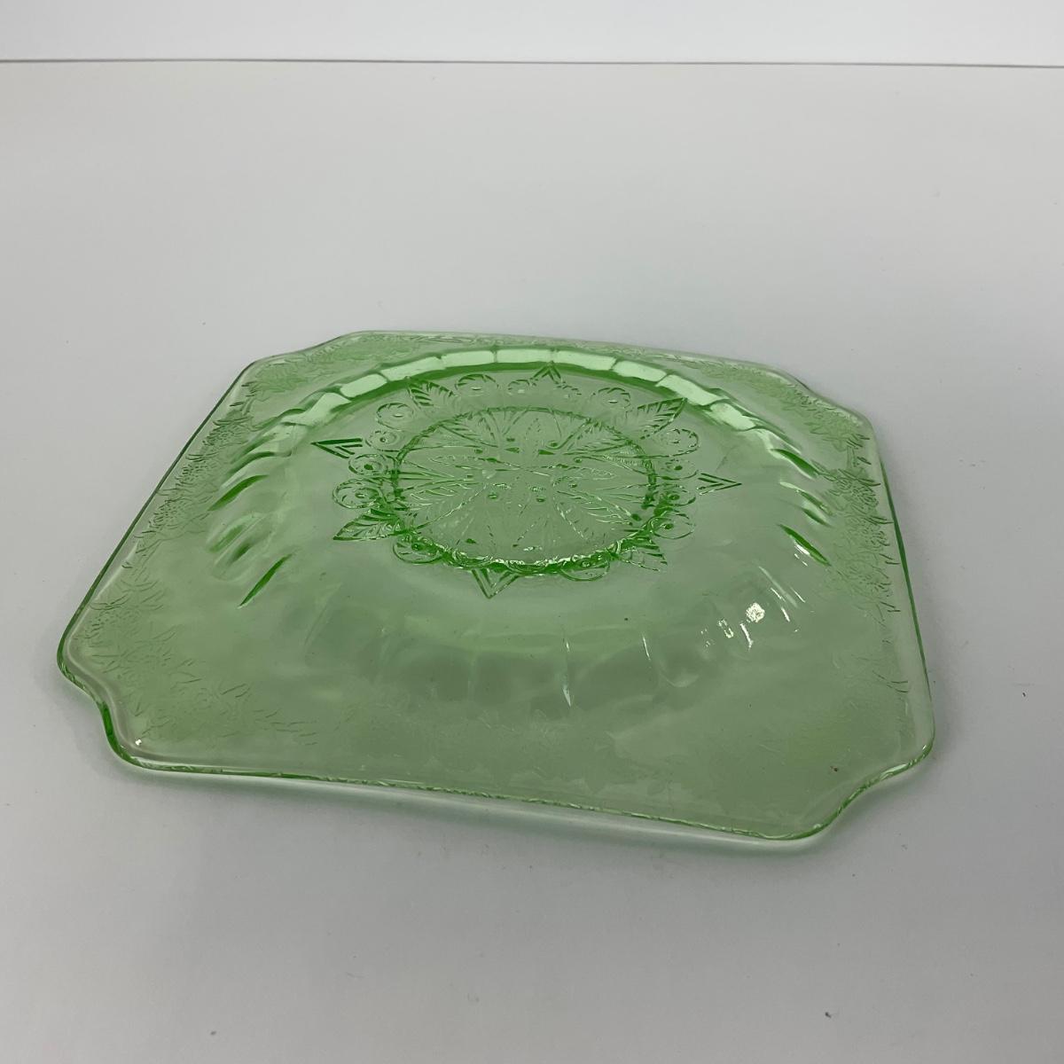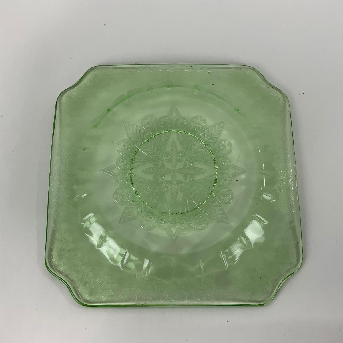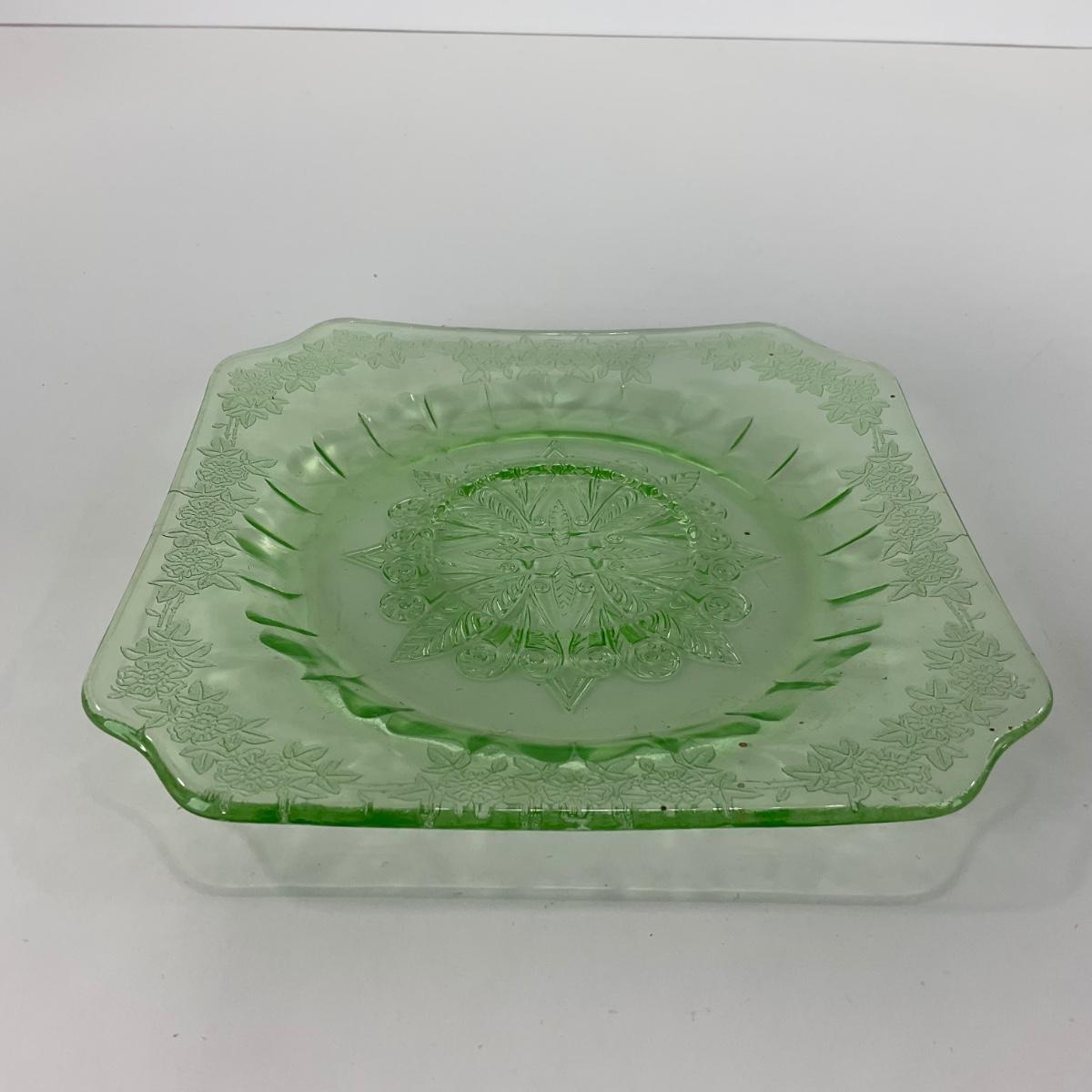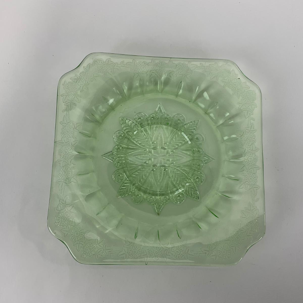 Three cups and three saucers in the Uranium green depression glass Adam Jeanette Glass Co. (1932-1933) These pieces DO GLOW under Black light! Please see photos for details and condition. ::: Shipping is available on this lot. If you require shipping you must let us know at the close of the auction. We will coordinate with you after the item has been won. Shipping fees will include insurance up to or exceeding the value of all items being mailed. If you have any questions regarding this lot please contact the auctioneer either via this website, by direct email or by phone. PICK UP TIMES and other important information can be found in the TERMS and DESCRIPTION of the auction. Please take a look for pertinent information. Thanks!