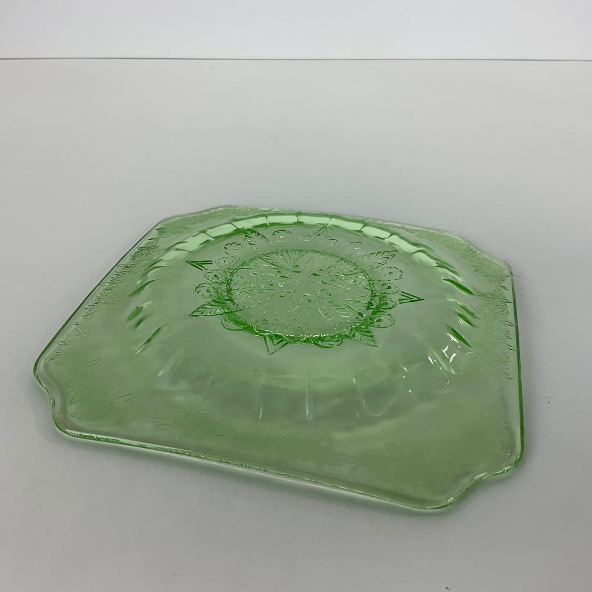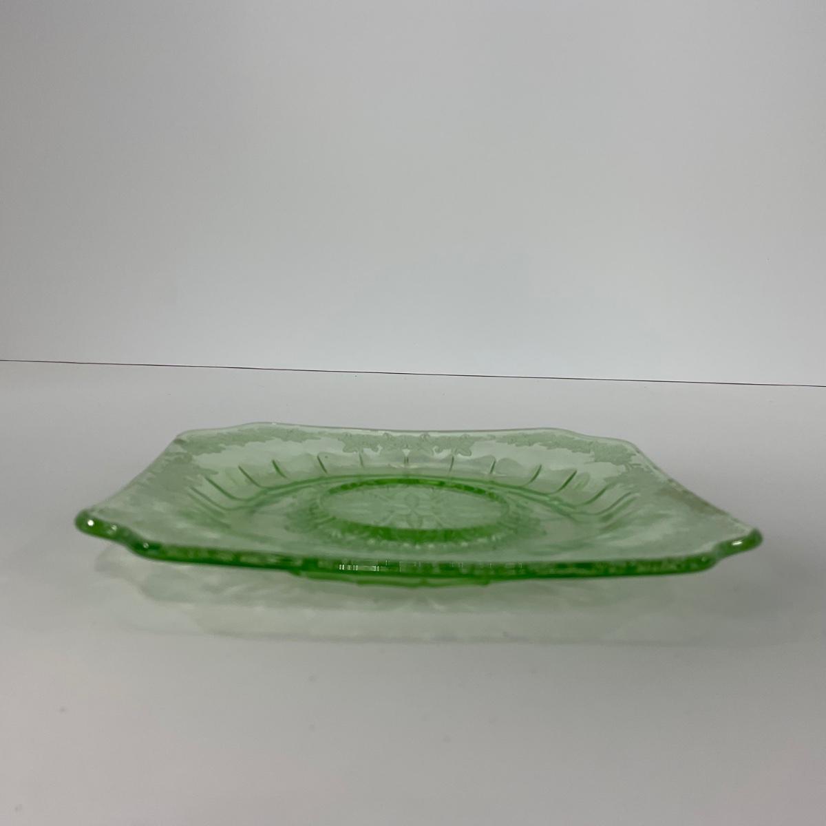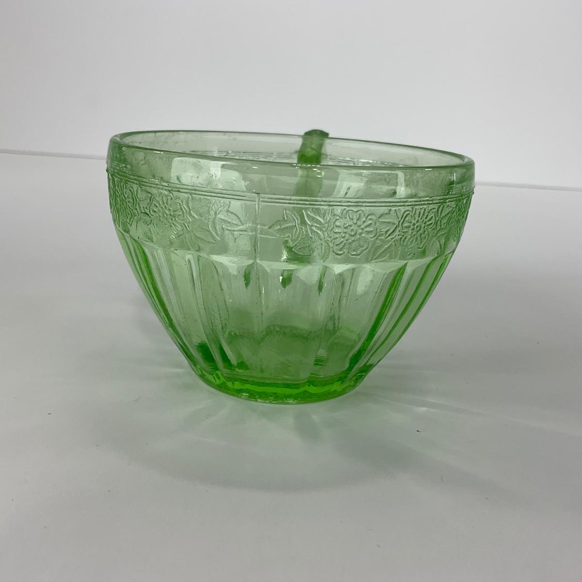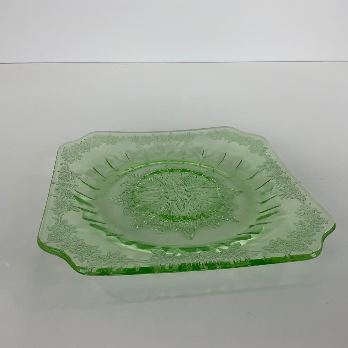 Three cups and three saucers in the Uranium green depression glass Adam Jeanette Glass Co. (1932-1933) These pieces DO GLOW under Black light! Please see photos for details and condition. ::: Shipping is available on this lot. If you require shipping you must let us know at the close of the auction. We will coordinate with you after the item has been won. Shipping fees will include insurance up to or exceeding the value of all items being mailed. If you have any questions regarding this lot please contact the auctioneer either via this website, by direct email or by phone. PICK UP TIMES and other important information can be found in the TERMS and DESCRIPTION of the auction. Please take a look for pertinent information. Thanks!