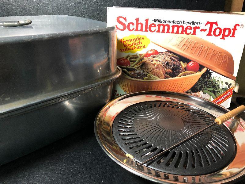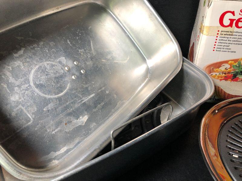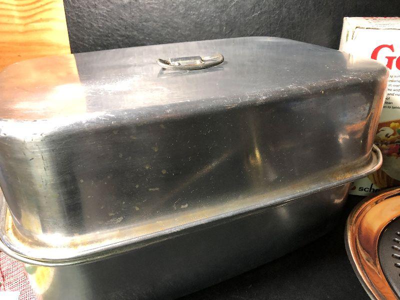 Terracota covered roaster, Grill-Pro and Mirro covered roaster. *Please review all photos for condition and contents of lot.
