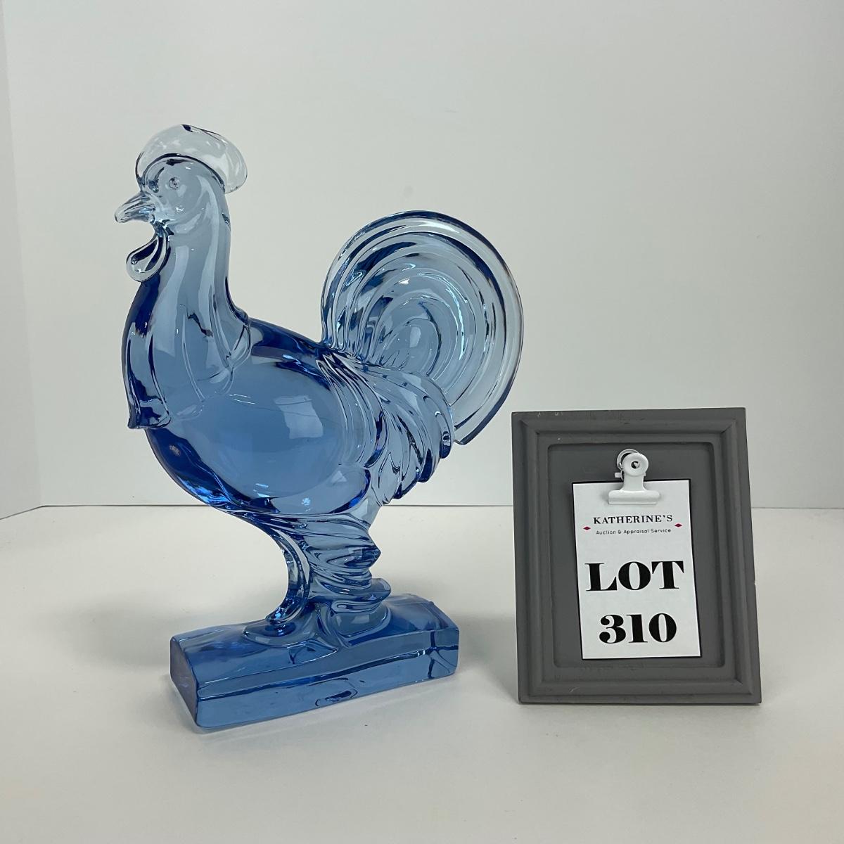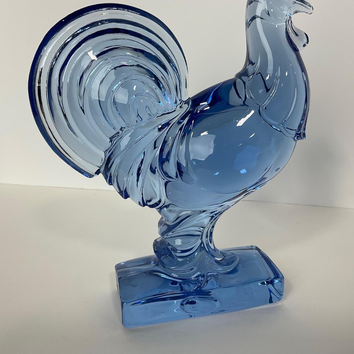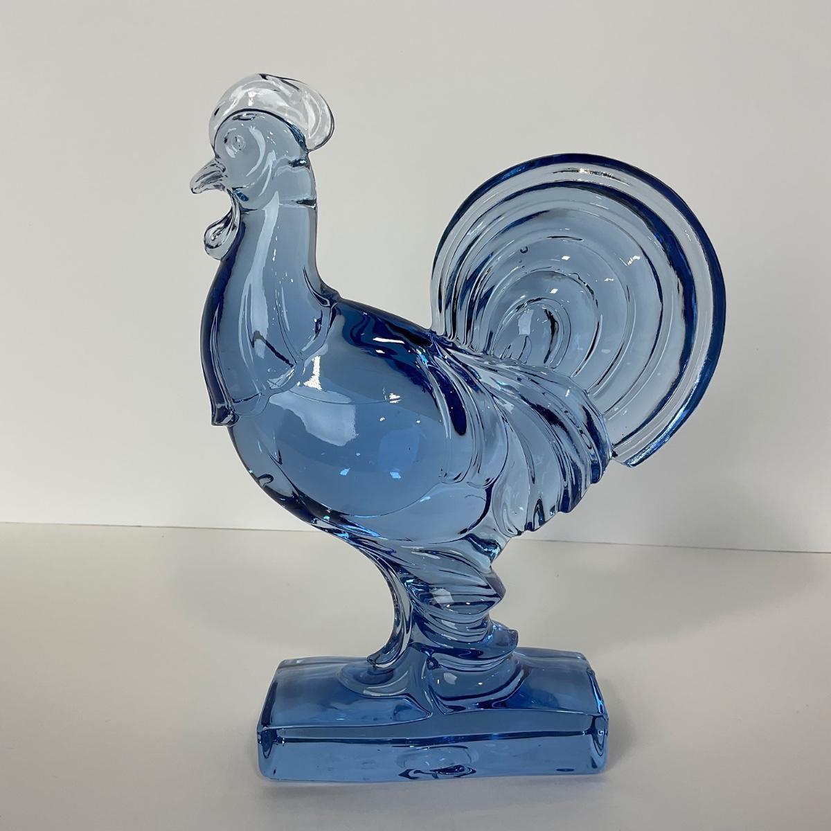 One Paden City ice blue Harry Barth rooster. This piece has no damage, and appears to be in great shape with no visable chips, cracks, or broken pieces. 7 1/2 inches wide by 9 1/2 inches tall. Please see photos for details and condition. Any condition statement is given as a courtesy to a client, is an opinion, and should not be treated as a statement of fact. Reference to condition written, oral or within a condition report shall not be regarded as a full account of condition and may not include all defects, alterations, or restorations. Absence of a condition report does not imply a lot is flawless or lacking imperfections or damage. Katherine’s Auction & Appraisal Service shall have no responsibility for any error or omission. Returns shall not be accepted on the basis of condition. ::: Shipping is available on this lot. If you require shipping you must let us know at the close of the auction. We will coordinate with you after the item has been won. Shipping fees will include insurance up to or exceeding the value of all items being mailed. If you have any questions regarding this lot please contact the auctioneer either via this website, by direct email or by phone. PICK UP TIMES and other important information can be found in the TERMS and DESCRIPTION of the auction. Please take a look for pertinent information. Thanks!
