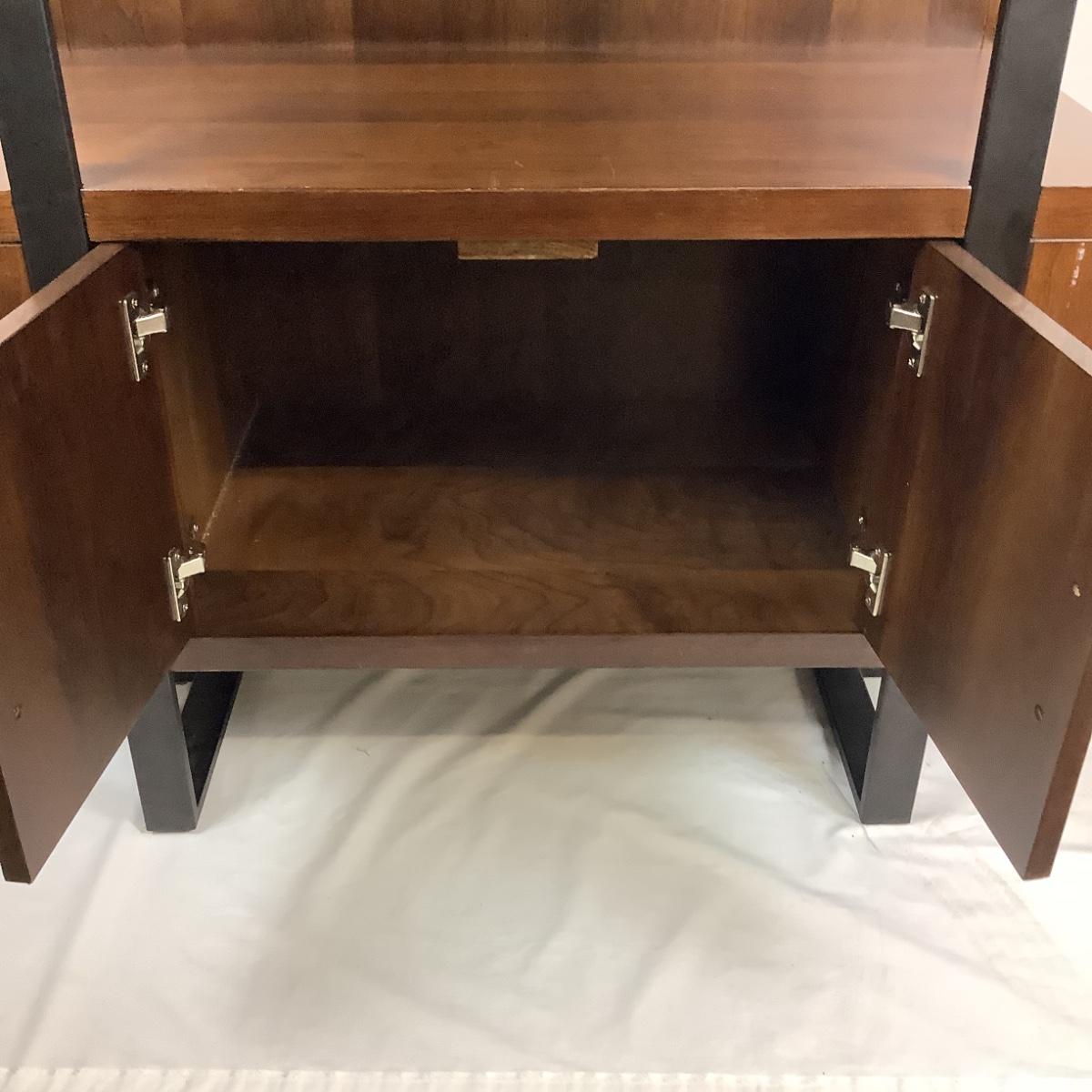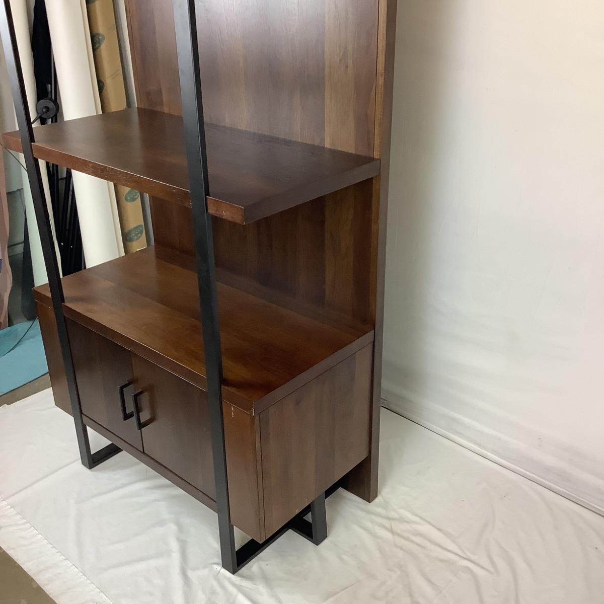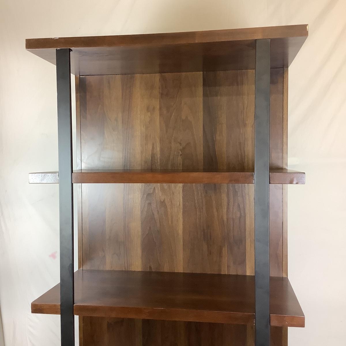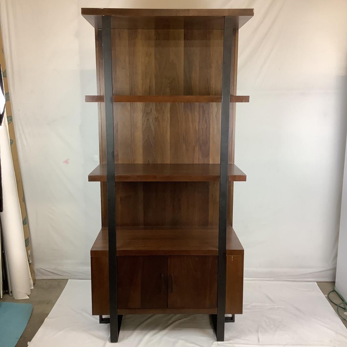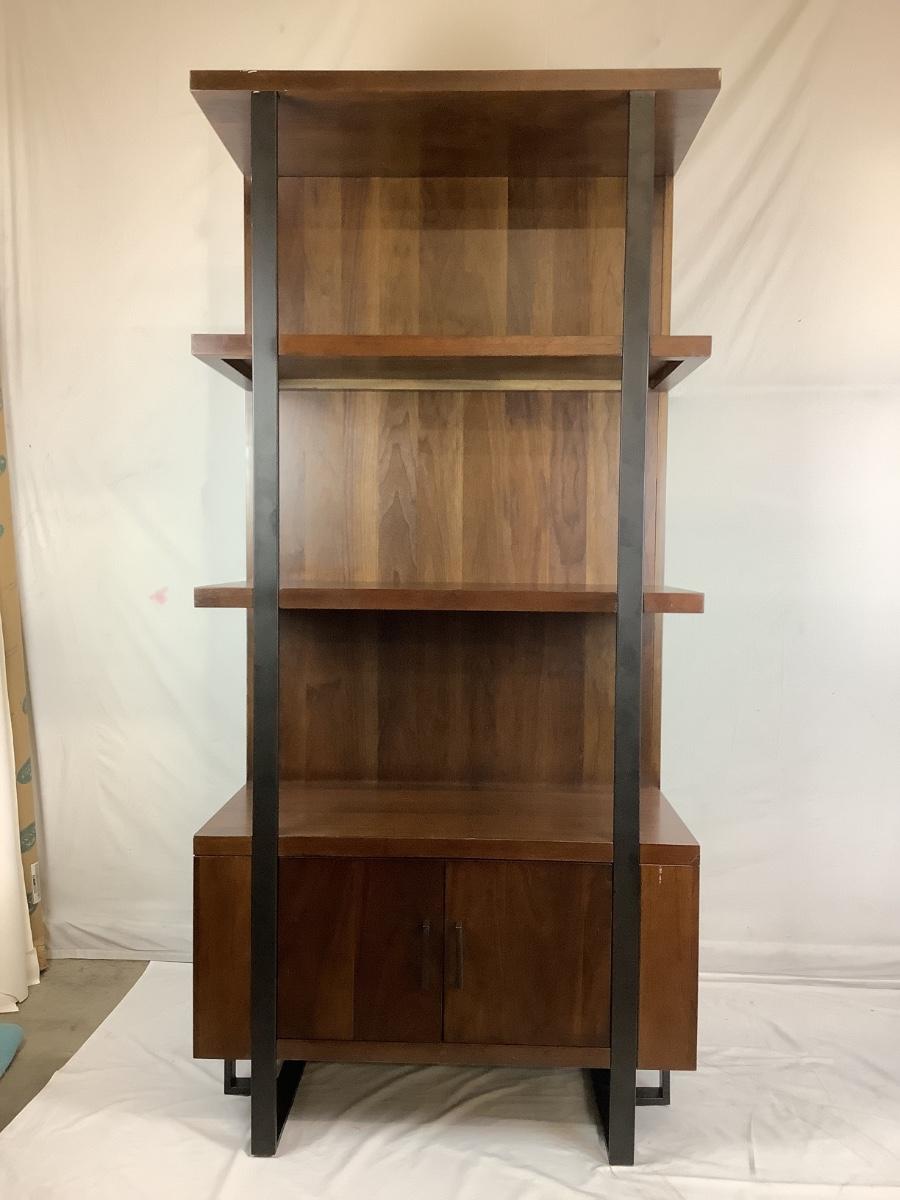 Terra Vista Bookcase/Pier Walnut Veneer w/ Metal Legs & Framework, 3 Fixed Shelves, Bottom Cabinet.