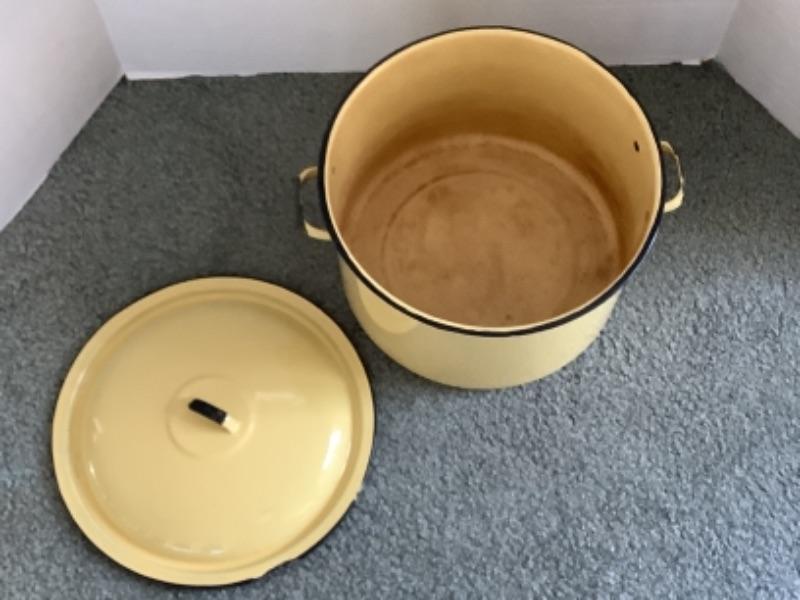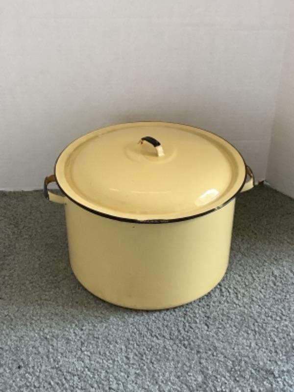 311 Large Vintage Yellow Enamelware Kettle with Lid