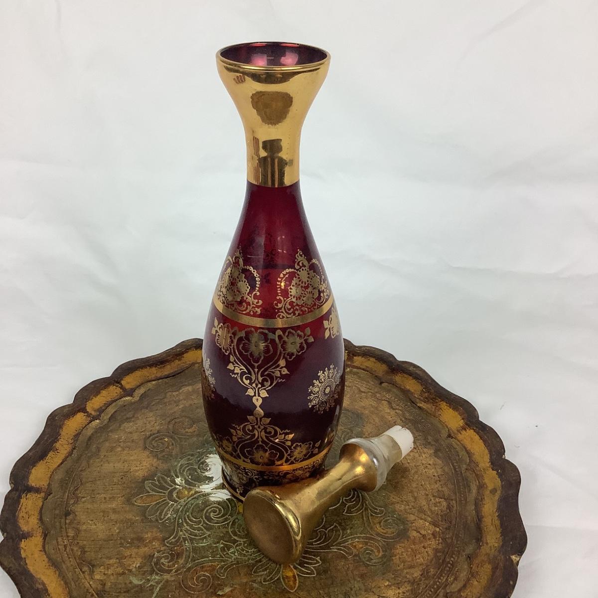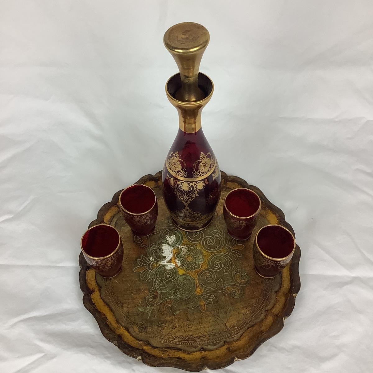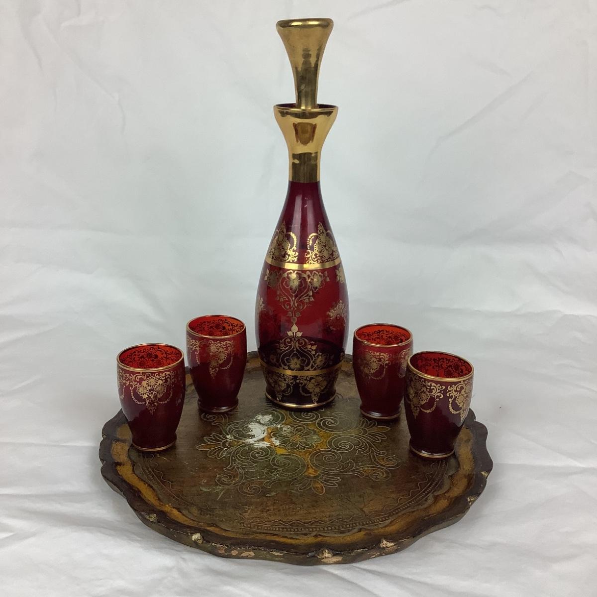 Ruby/Gold Bohemian Glass Liquor Set w/ Tray.