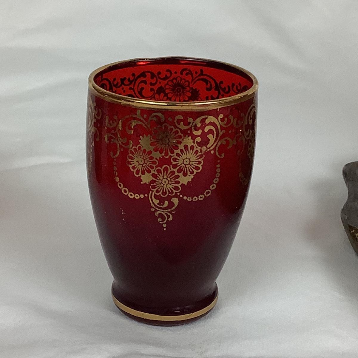 3112 Ruby/Gold Bohemian Glass Liquor Set