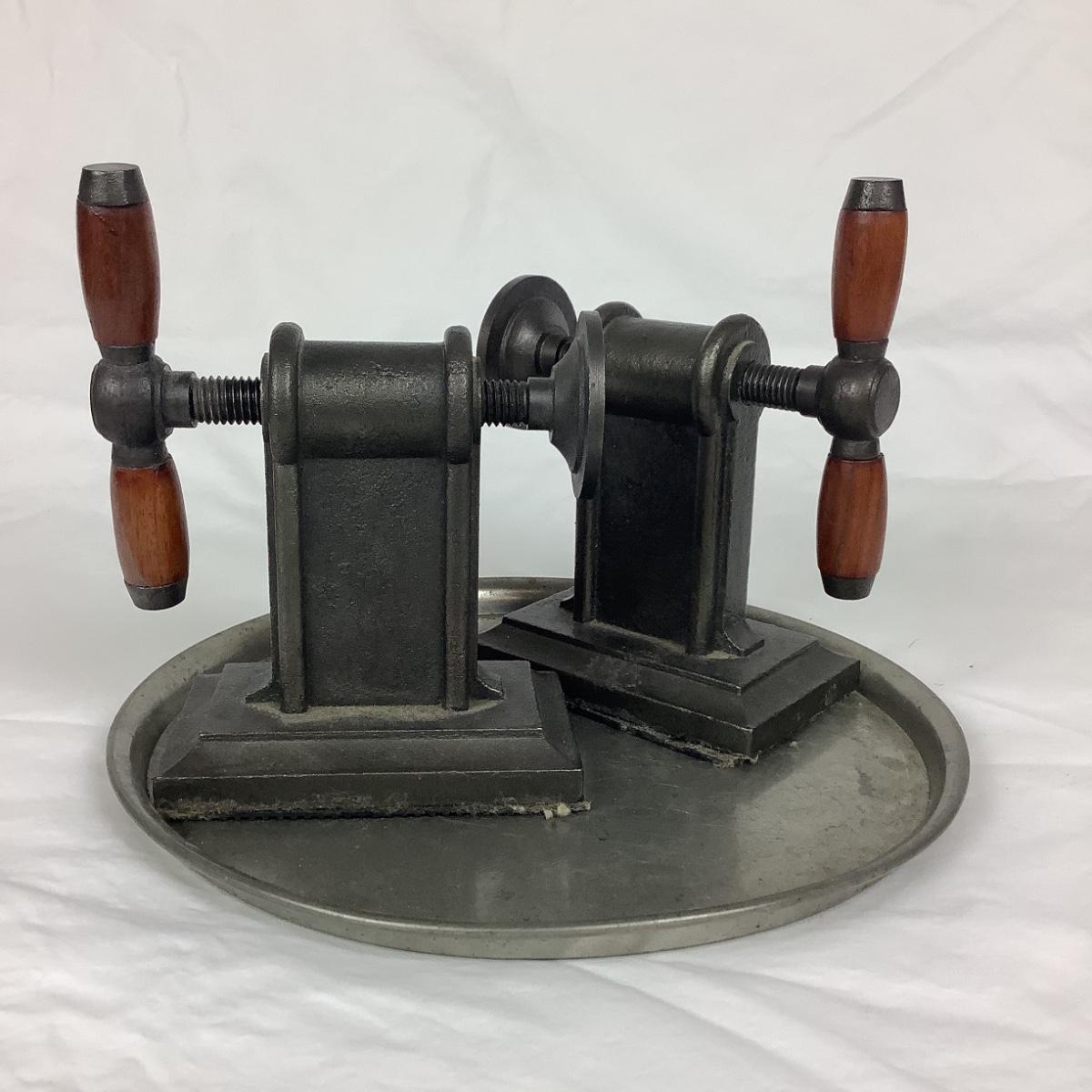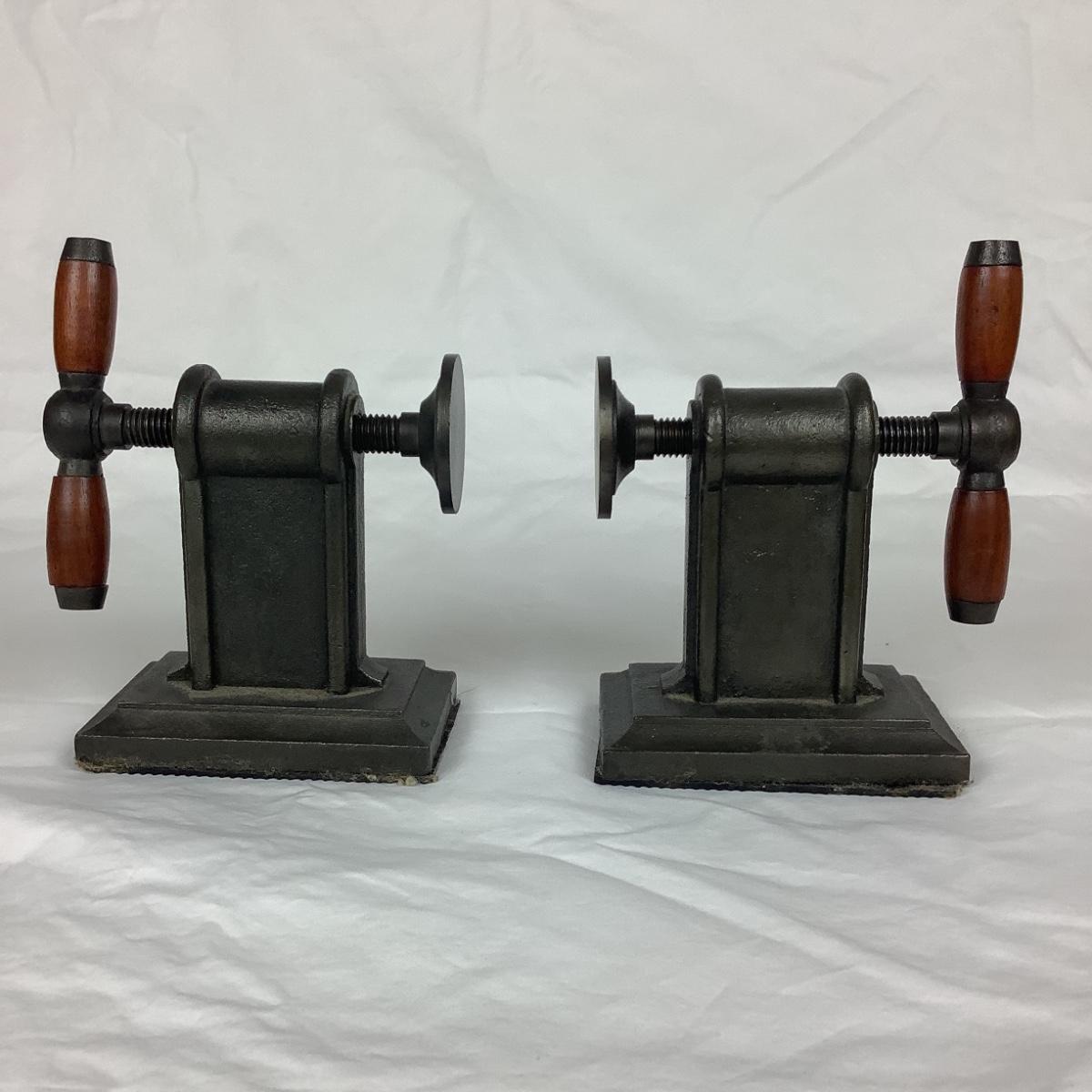 3113 Contemporary Industrial Clamp Bookends/Stieff Pewter Tray