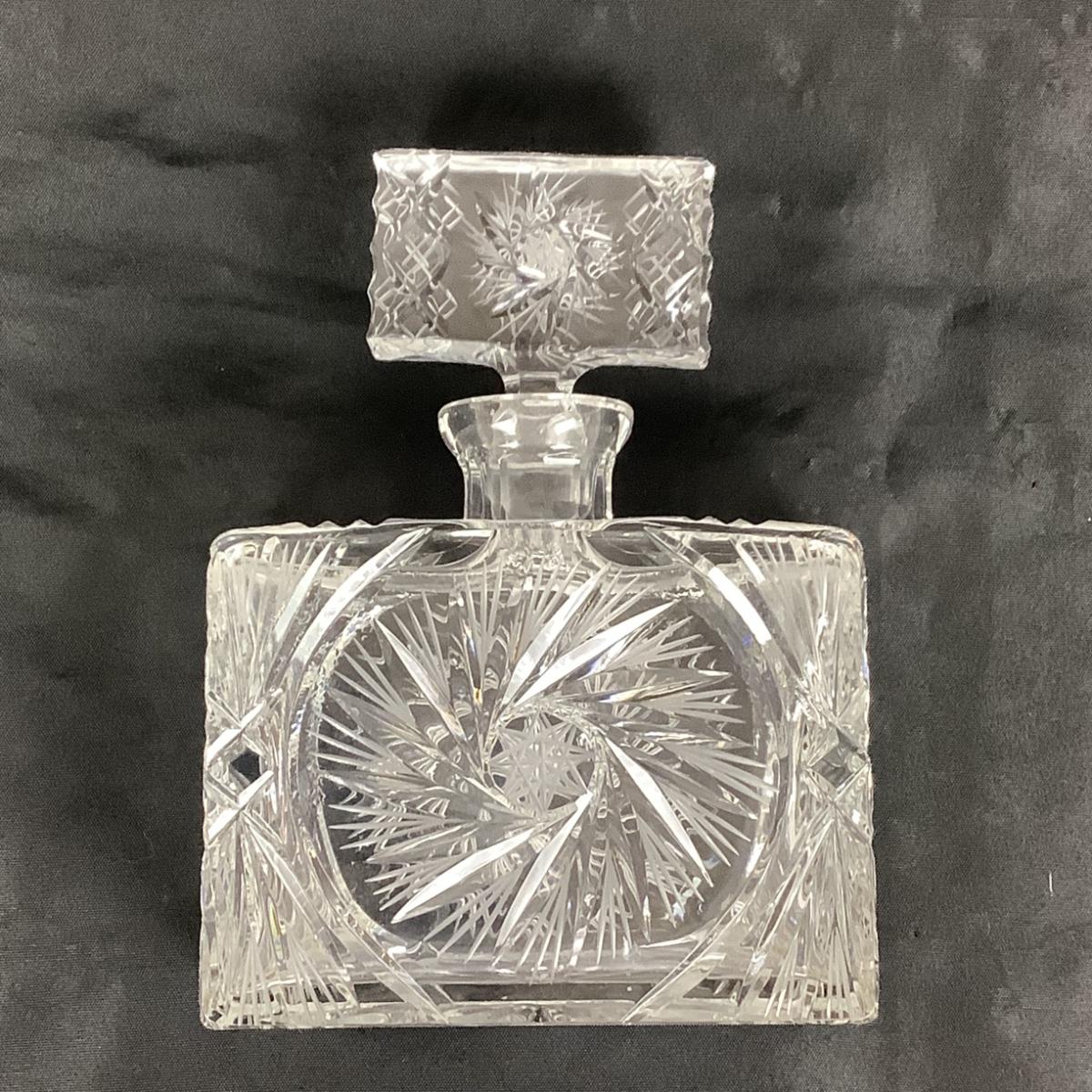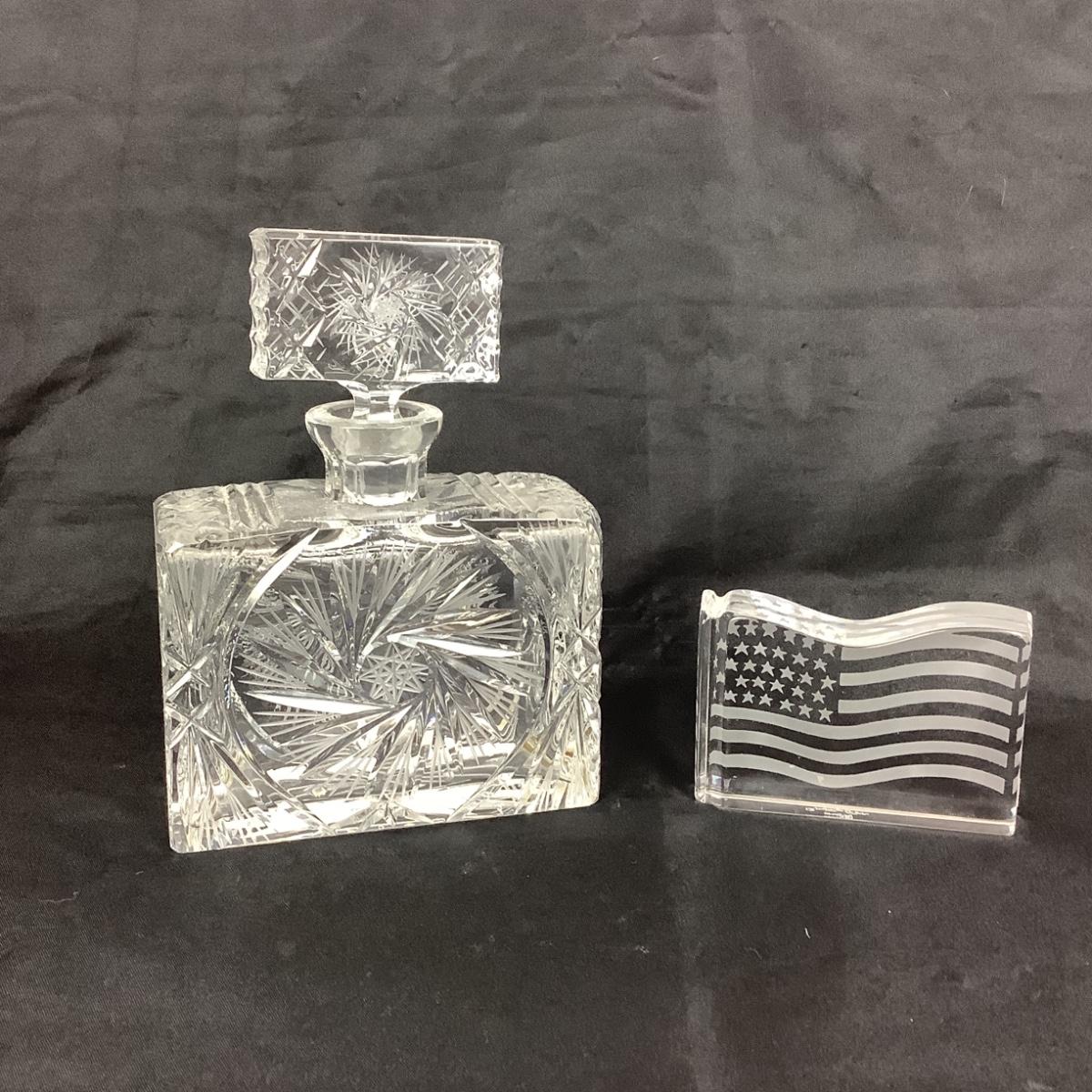 Czech Crystal Decanter & Val S' Lambert Belgium Depose U.S. Flag Paperweight.