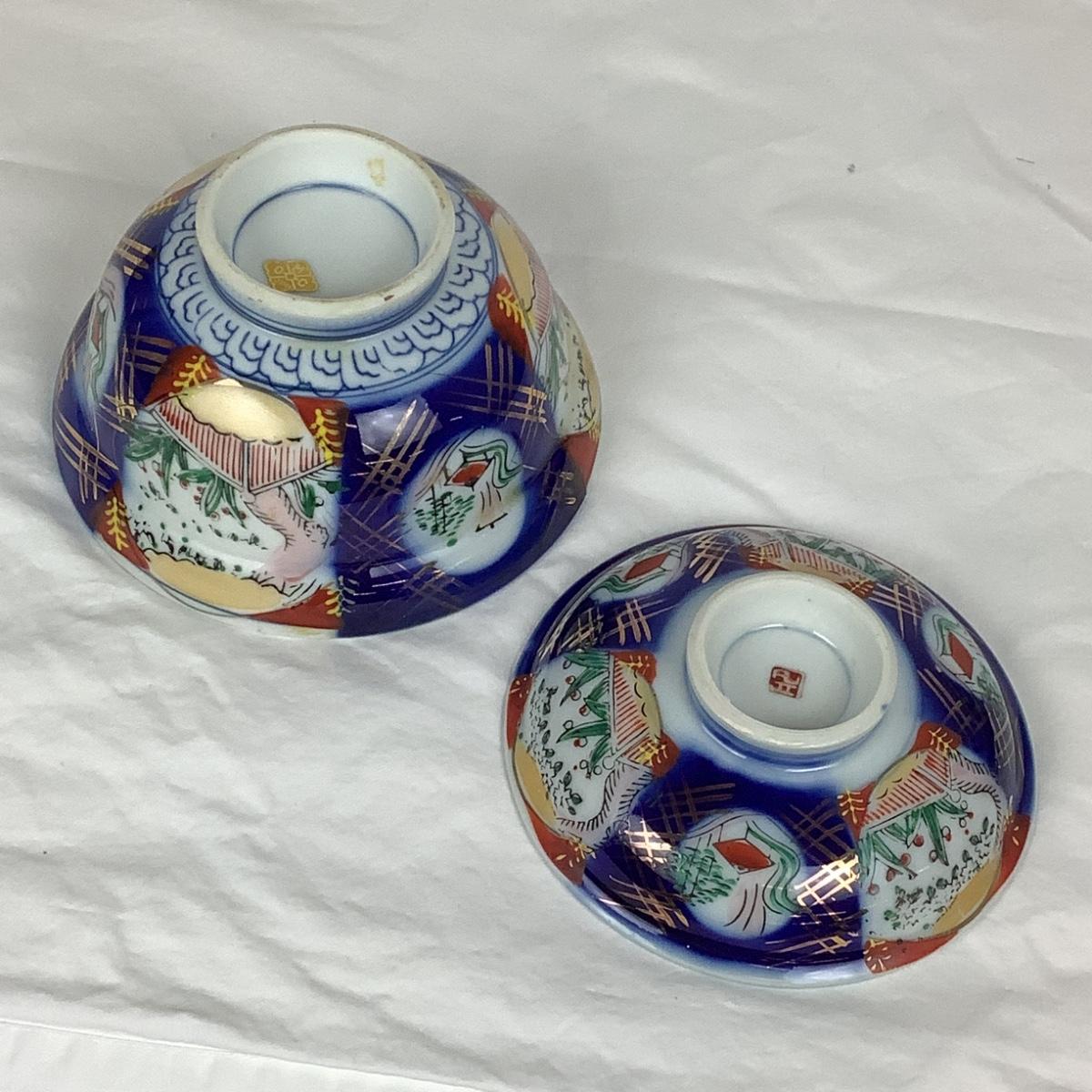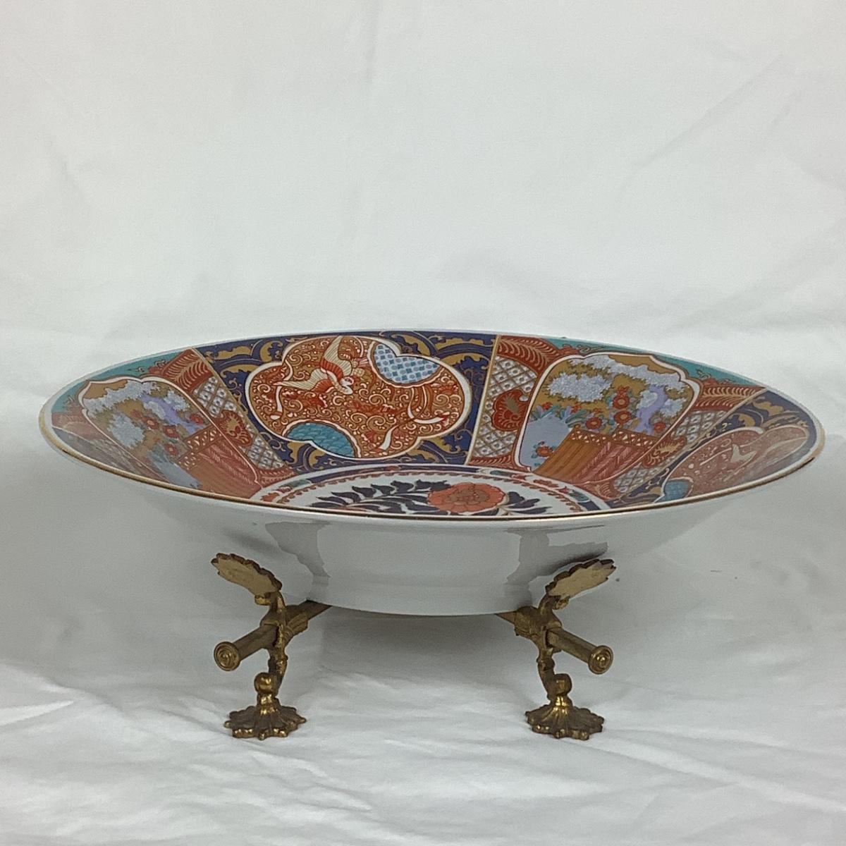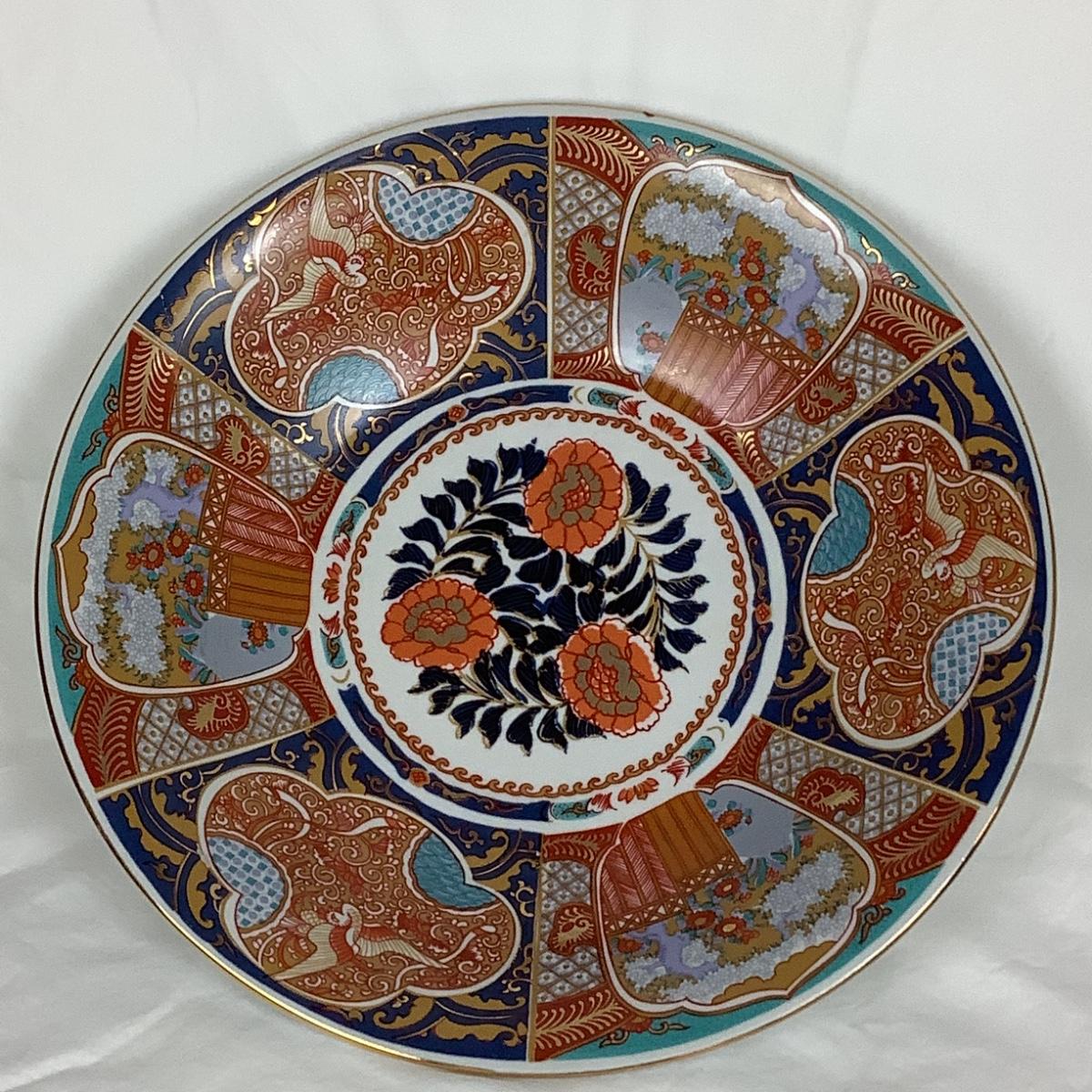 Imari Style Bowls. 14"round Andrea by Sadek Bowl, 7.25"diameter Blue Plate, 5.5" & 6"round Matching Bowls