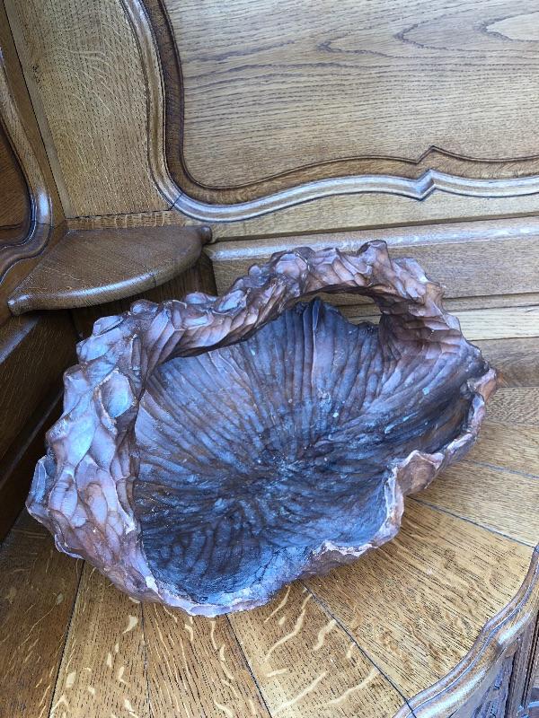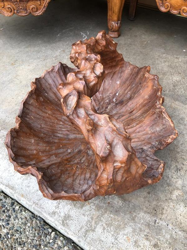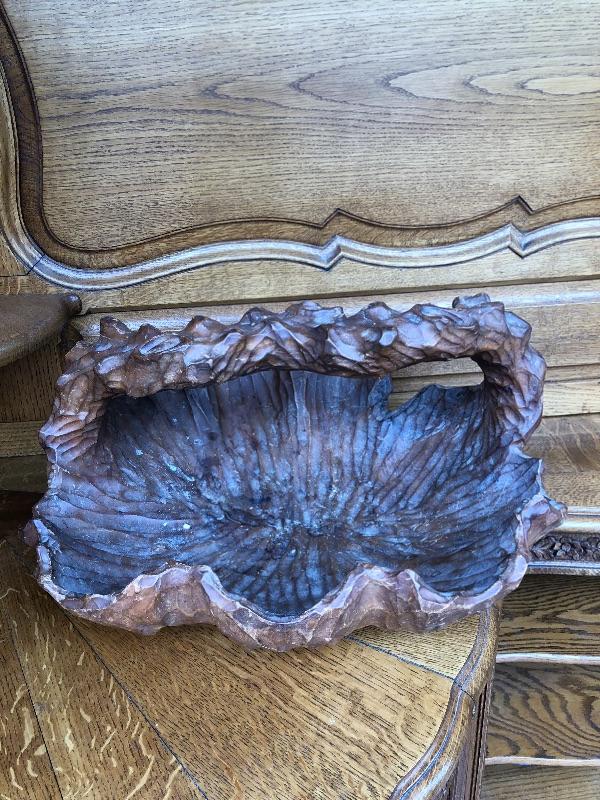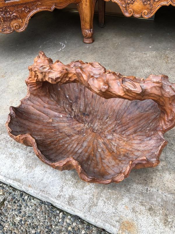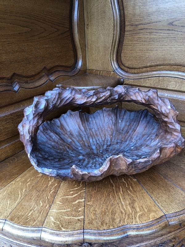 Hand carved solid wood basket. 17.5 L x 15 D x 10 T