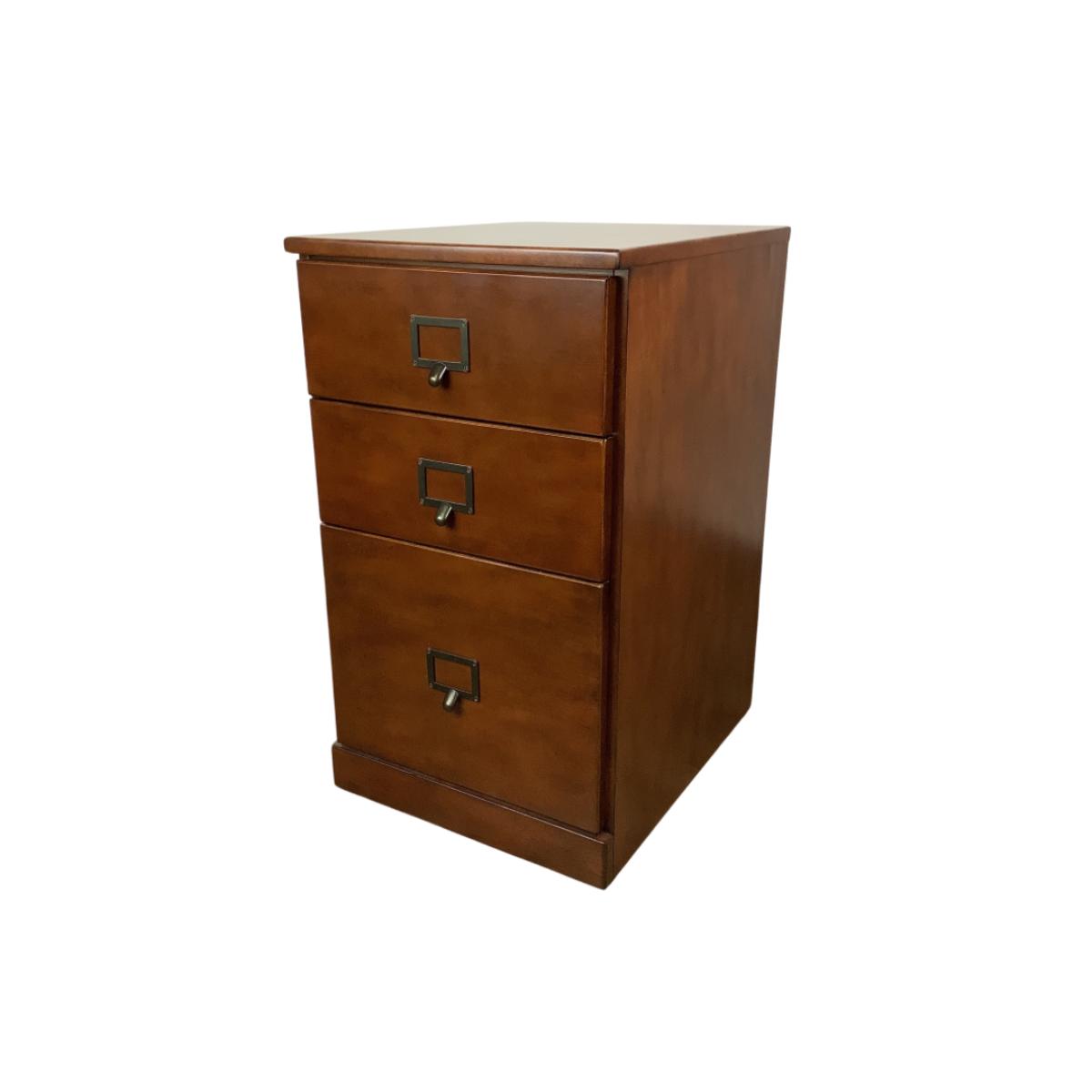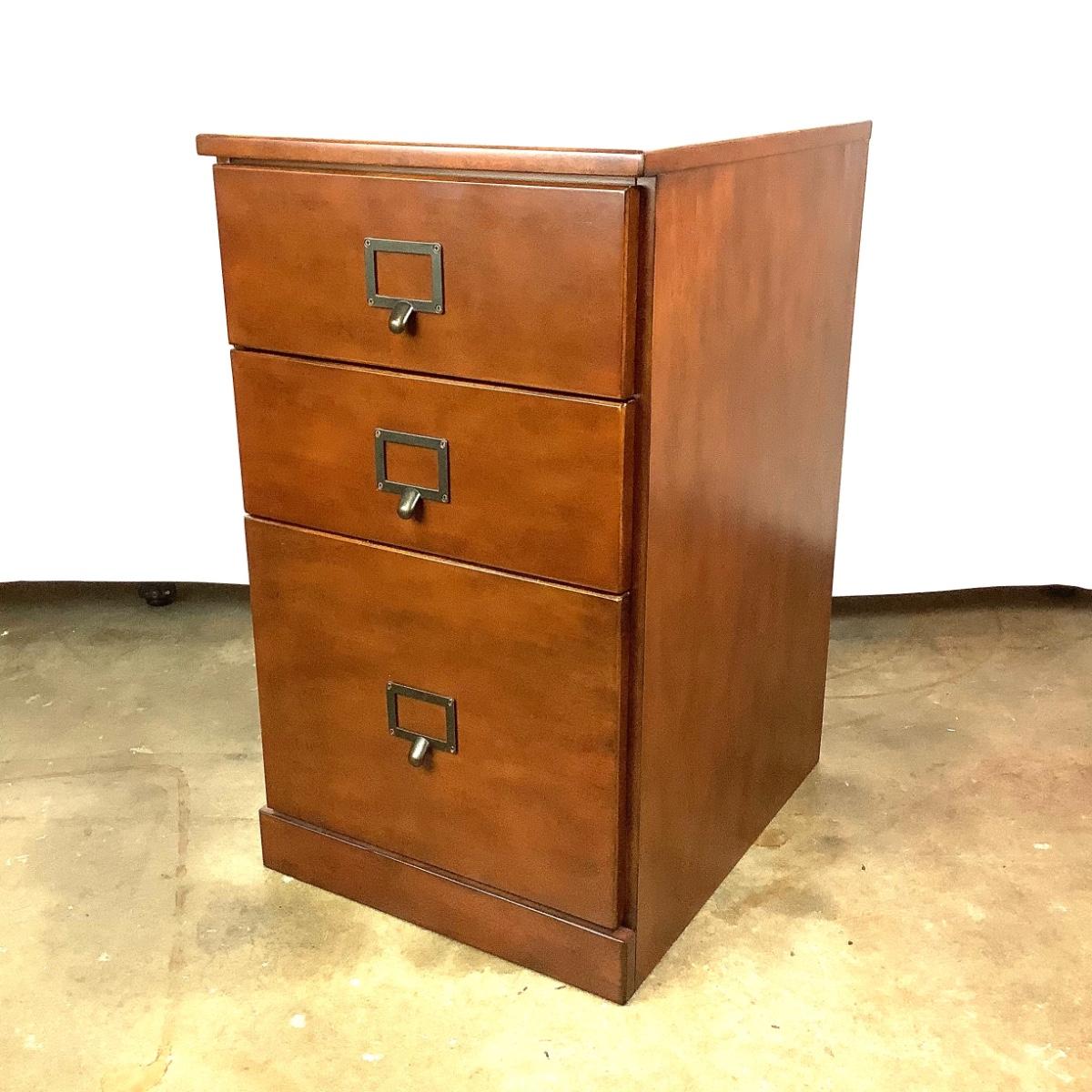 Ballard Design dark stained poplar and veneer/engineered hard wood, measures 27" high x 16" wide x 19" deep.