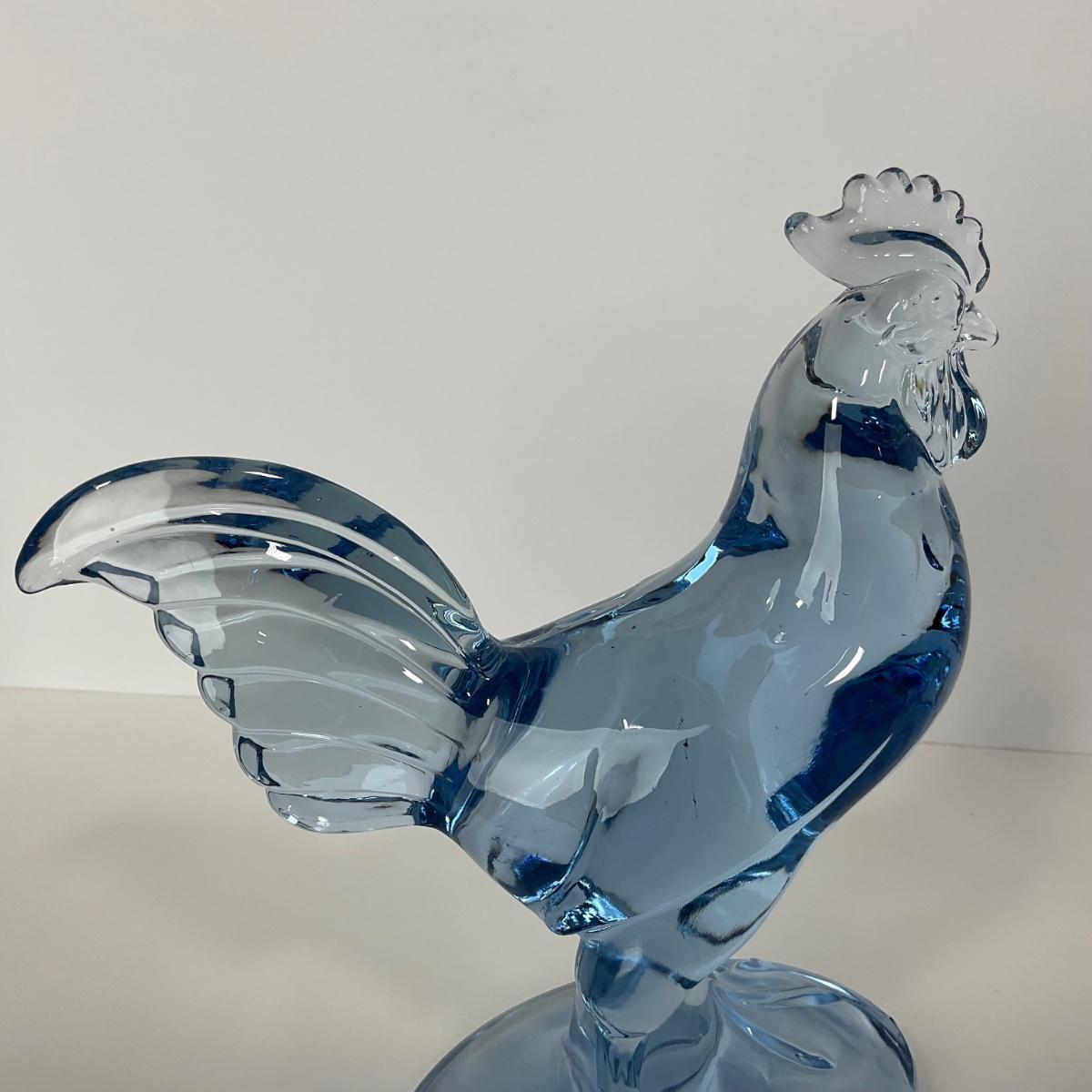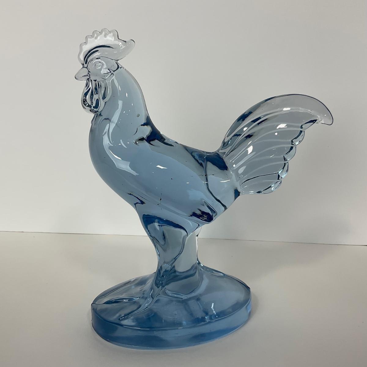 One Paden City ice blue barnyard rooster figure This piece has no damage, and appears to be in great shape with no visable chips, cracks, or broken pieces. 7 1/2 inches wide by 9 inches tall. Please see photos for details and condition. Any condition statement is given as a courtesy to a client, is an opinion, and should not be treated as a statement of fact. Reference to condition written, oral or within a condition report shall not be regarded as a full account of condition and may not include all defects, alterations, or restorations. Absence of a condition report does not imply a lot is flawless or lacking imperfections or damage. Katherine’s Auction & Appraisal Service shall have no responsibility for any error or omission. Returns shall not be accepted on the basis of condition. ::: Shipping is available on this lot. If you require shipping you must let us know at the close of the auction. We will coordinate with you after the item has been won. Shipping fees will include insurance up to or exceeding the value of all items being mailed. If you have any questions regarding this lot please contact the auctioneer either via this website, by direct email or by phone. PICK UP TIMES and other important information can be found in the TERMS and DESCRIPTION of the auction. Please take a look for pertinent information. Thanks!
