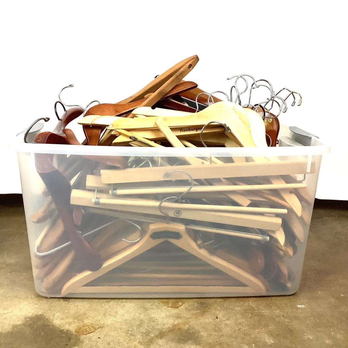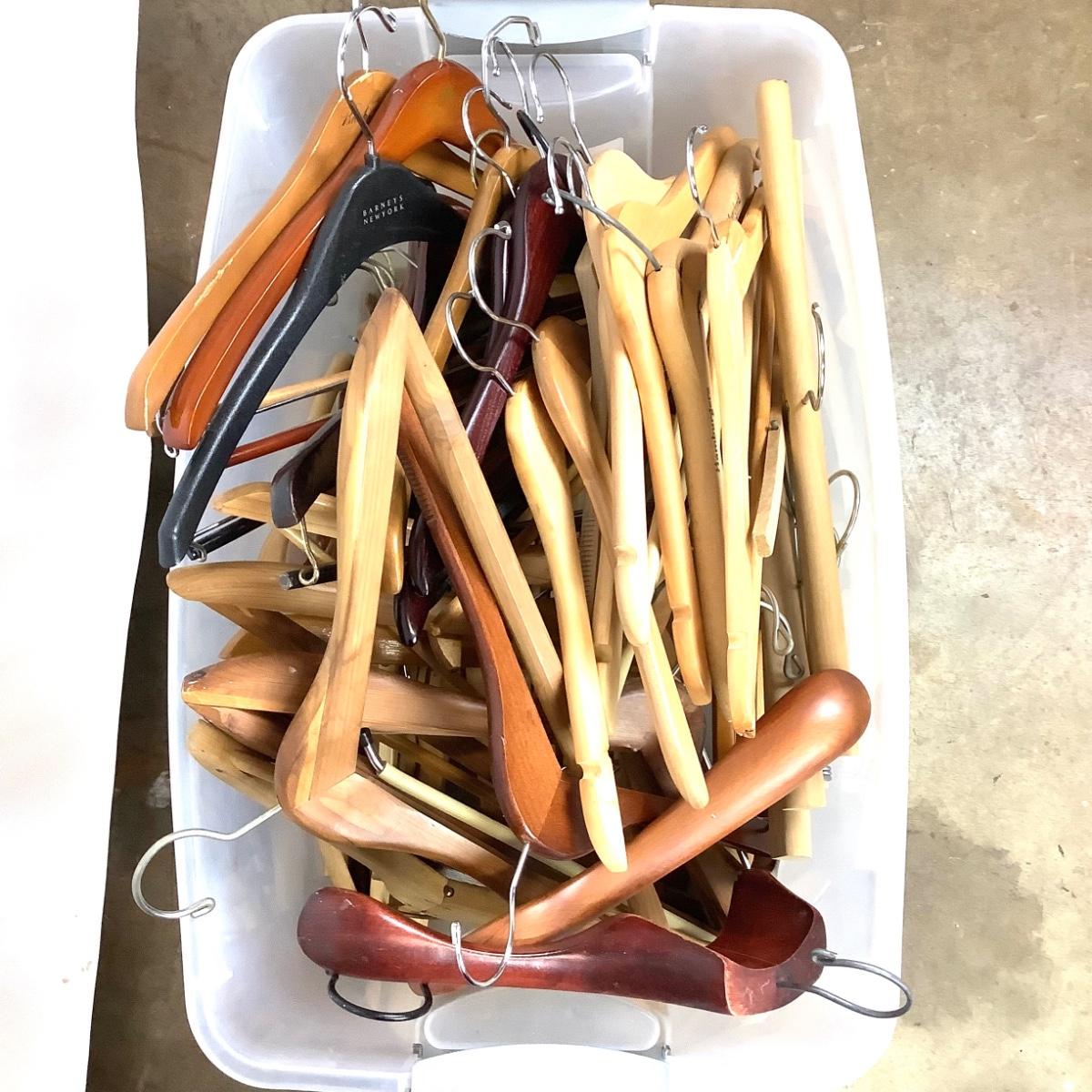 Large lot of wooden hangers, assorted sizes, brands and types.