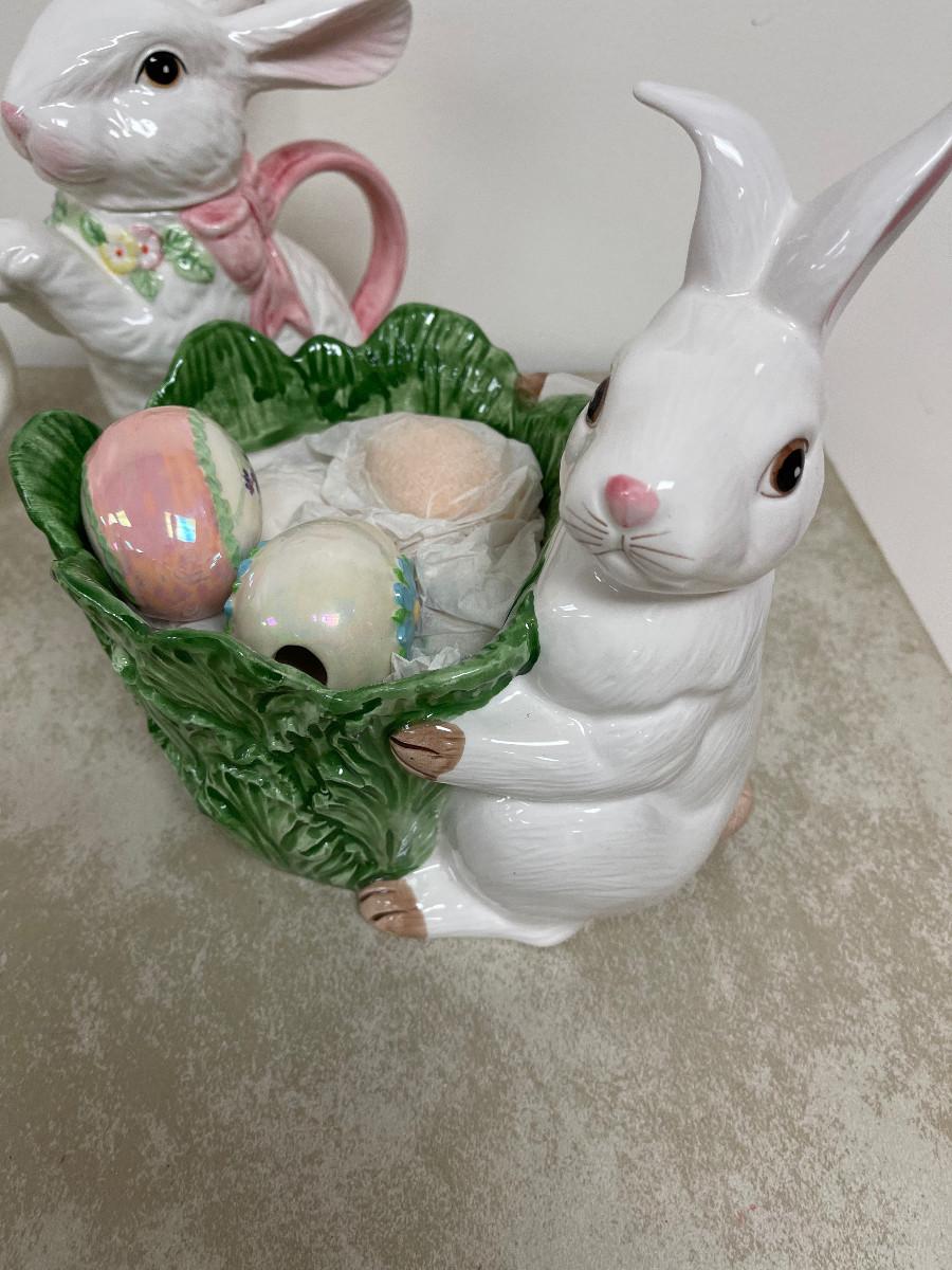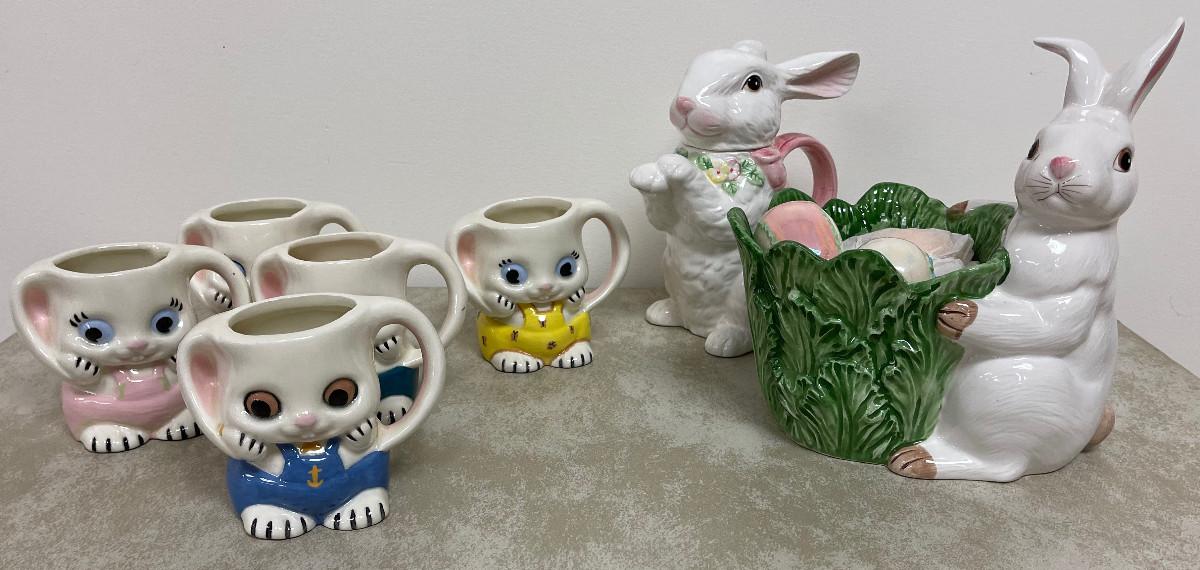 #313 B Bunny Mugs Rabbit Pitcher and Cabbage Rabbit