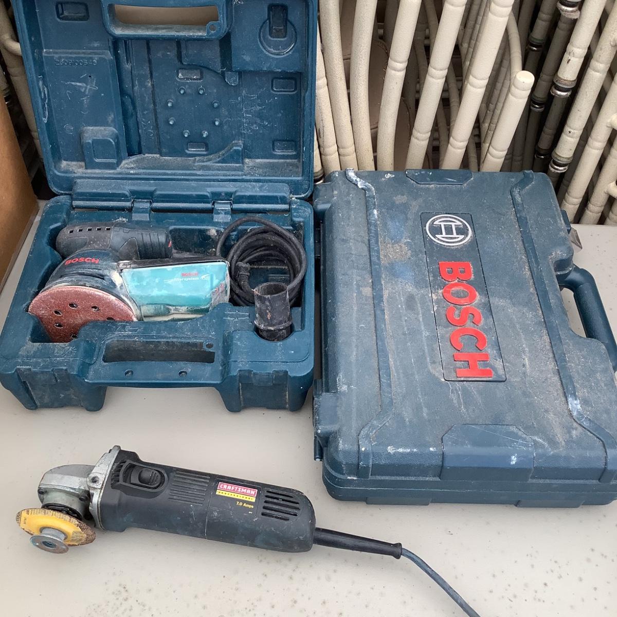 Bosch Orbital Sander Micro Filter System & 4 1/2" Angle Grinder includes one empty Bosch Box