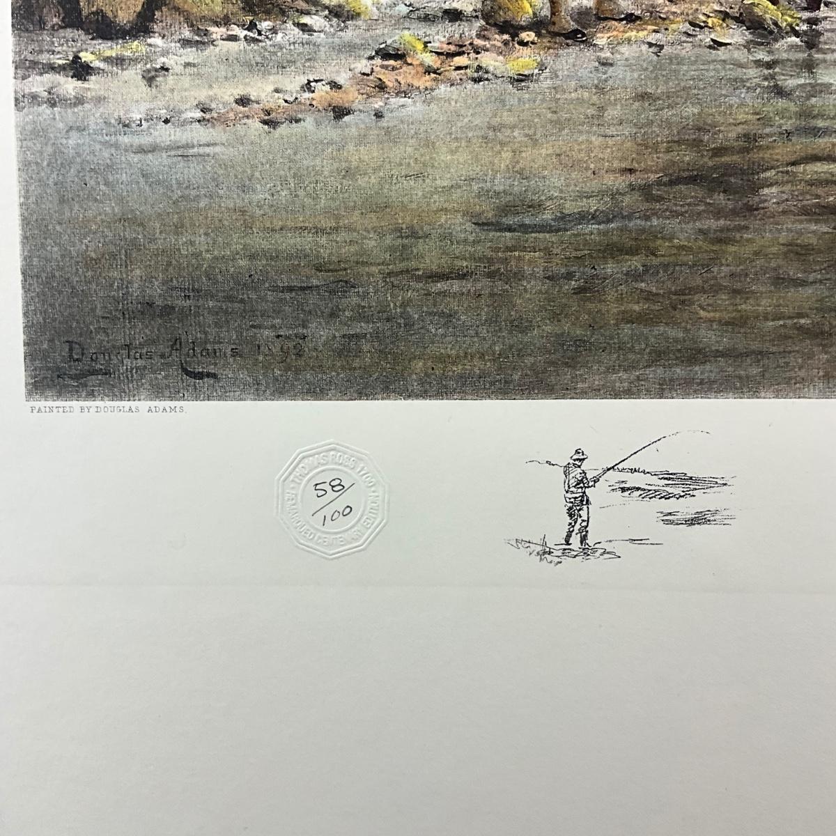 218 Hand-Painted Engraving Signed By Douglas Adams "Trout Fishing" Remark & Seal 58/100