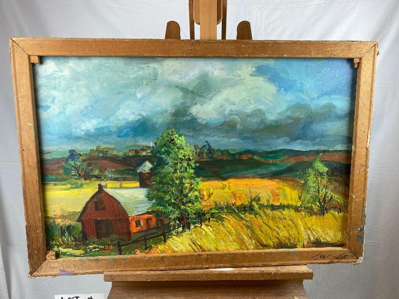 1) on canvas 24.5” T x 36” W. Unsigned