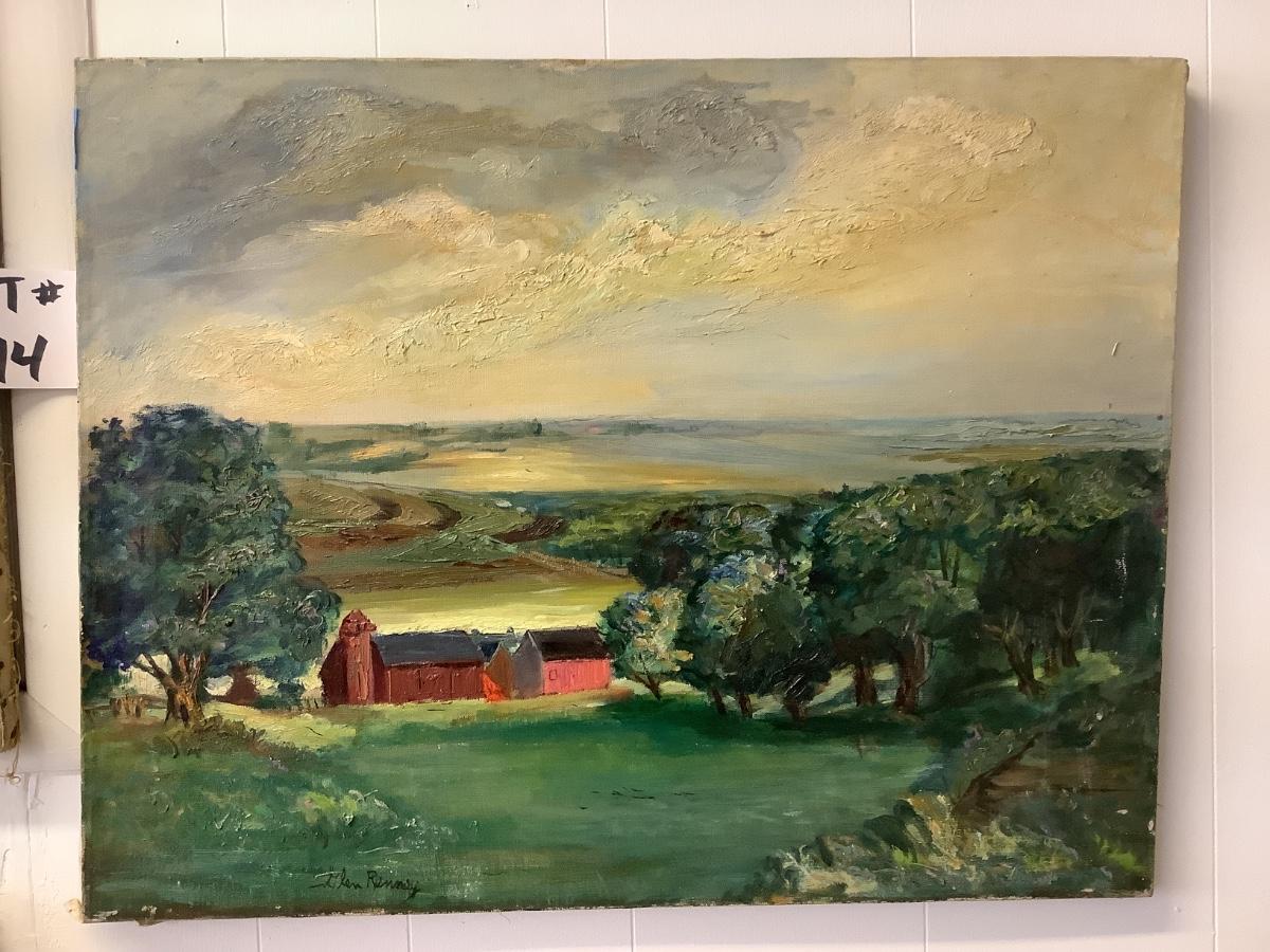 A - 314 Original Oil Painting on Canvas " Red Barn" by Glen Ranney