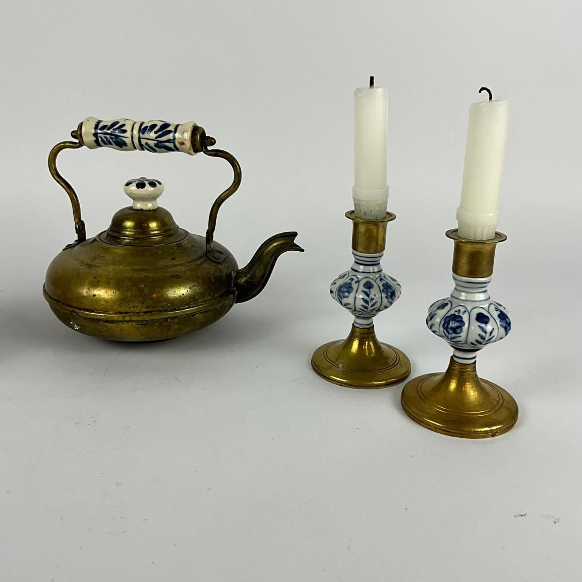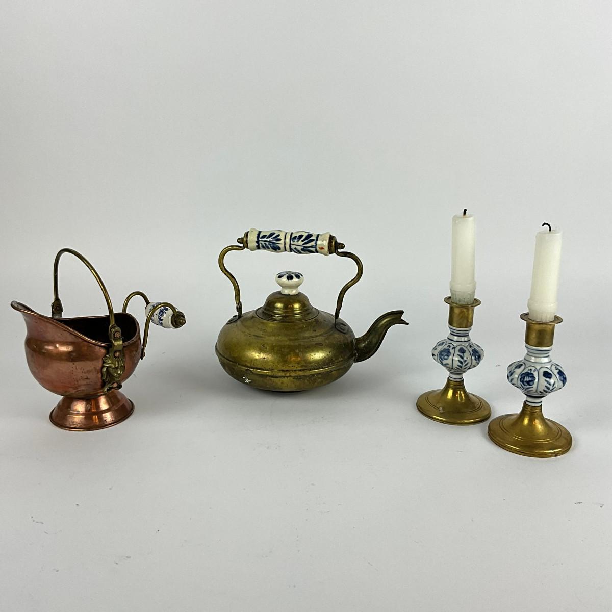315 Copper Cod Hod, Candlestick & Brass Copper Teapot