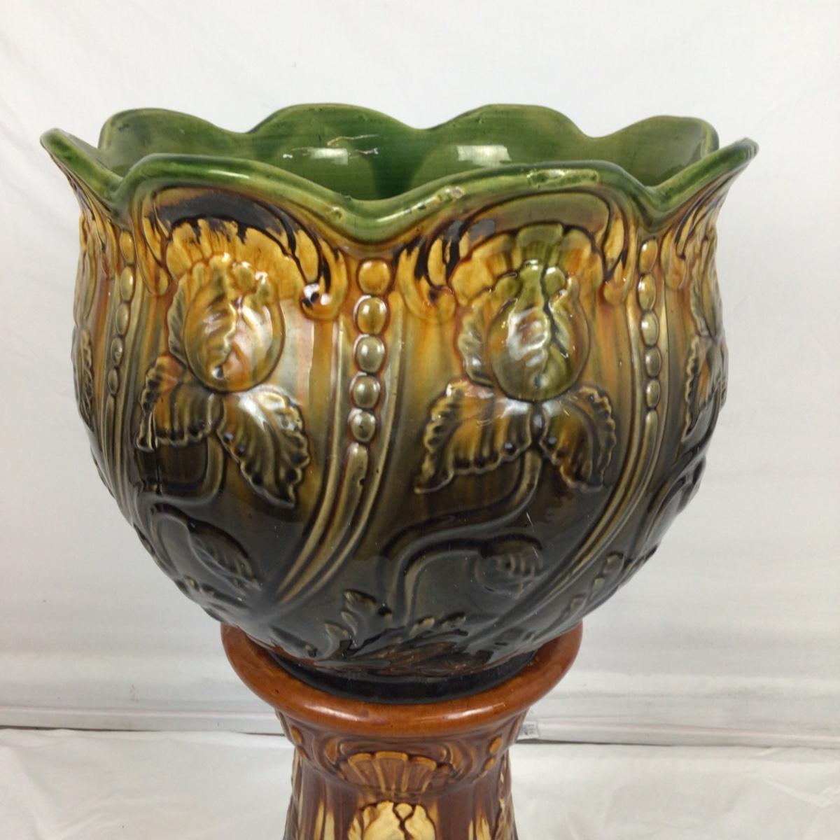 3155 Vintage Majolica Jardiniere Planter in Iris Design