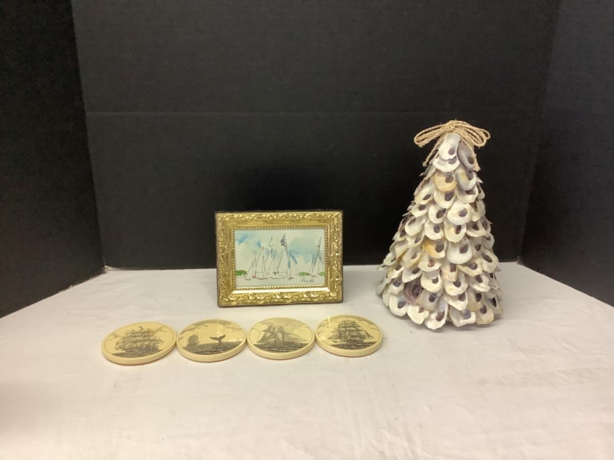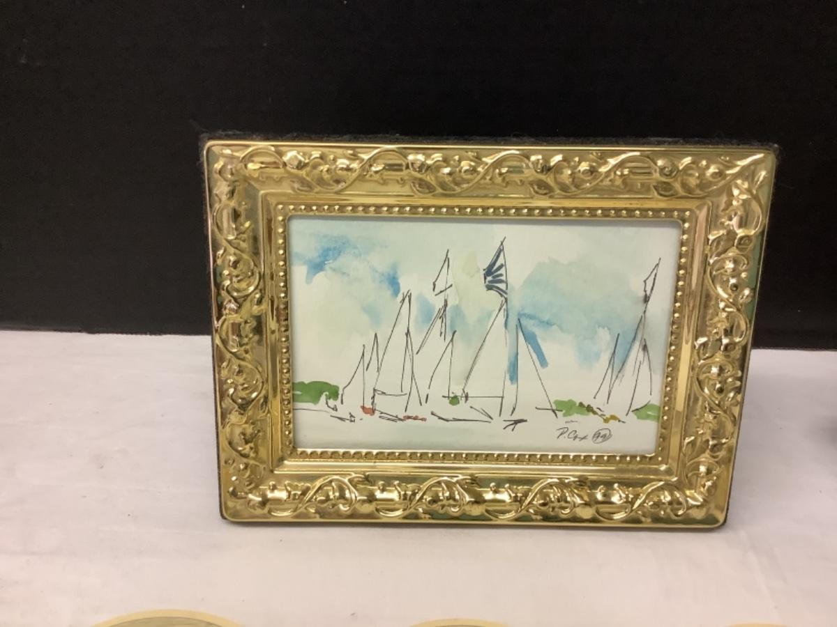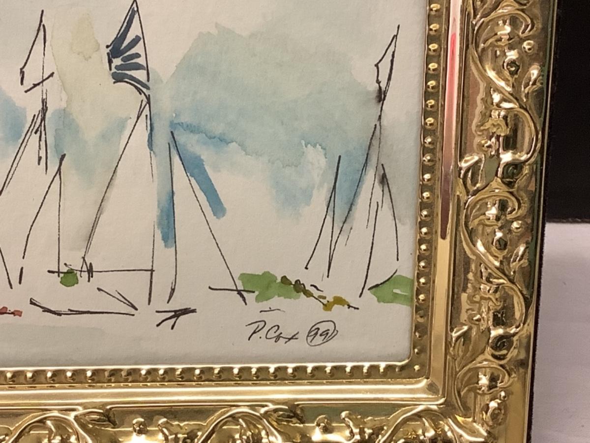 Signed Framed Watercolor by P. Cot “˜ 99 “ Sailing “
