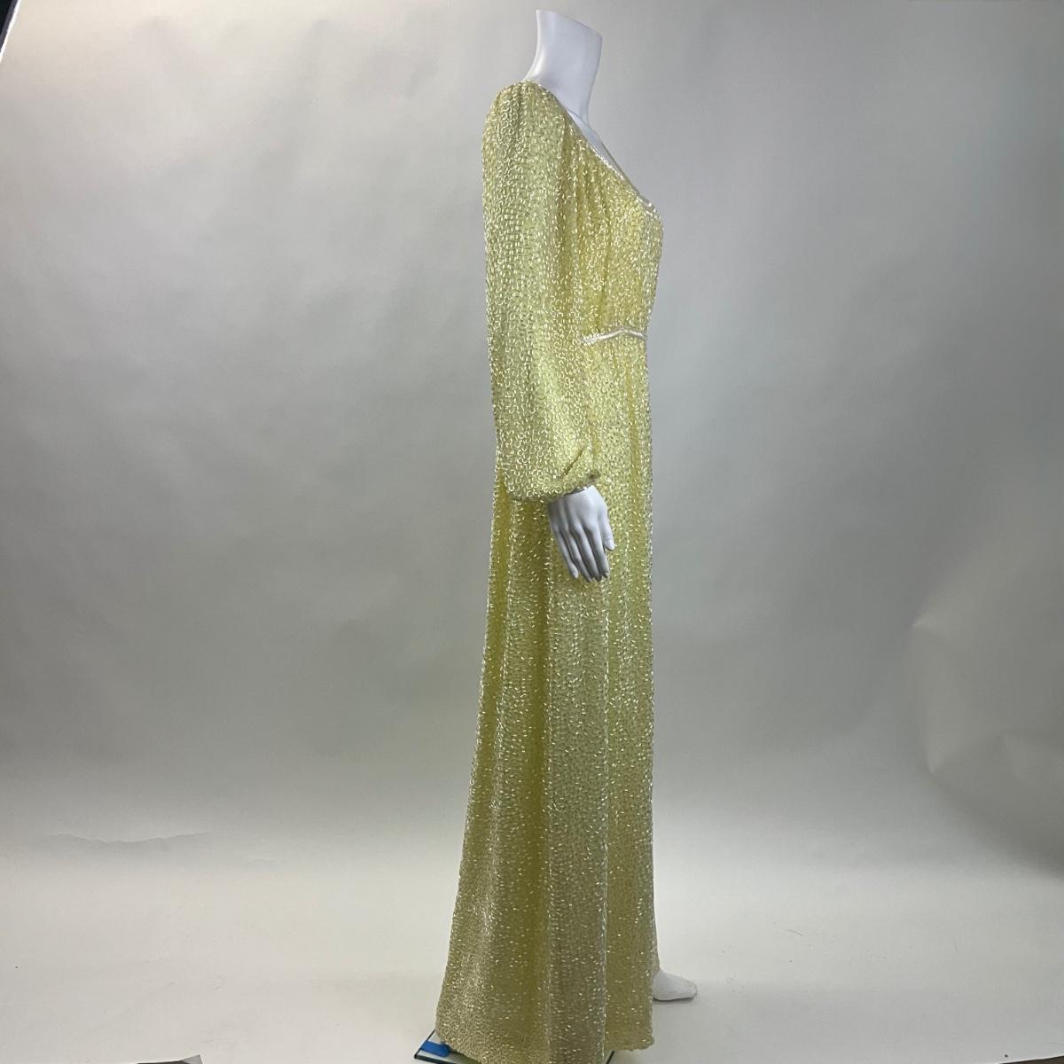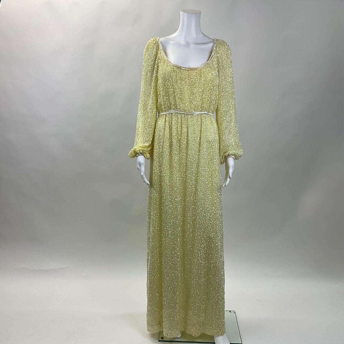 317 LILLIE RUBIN Yellow Beaded Gown Balloon Sleeves