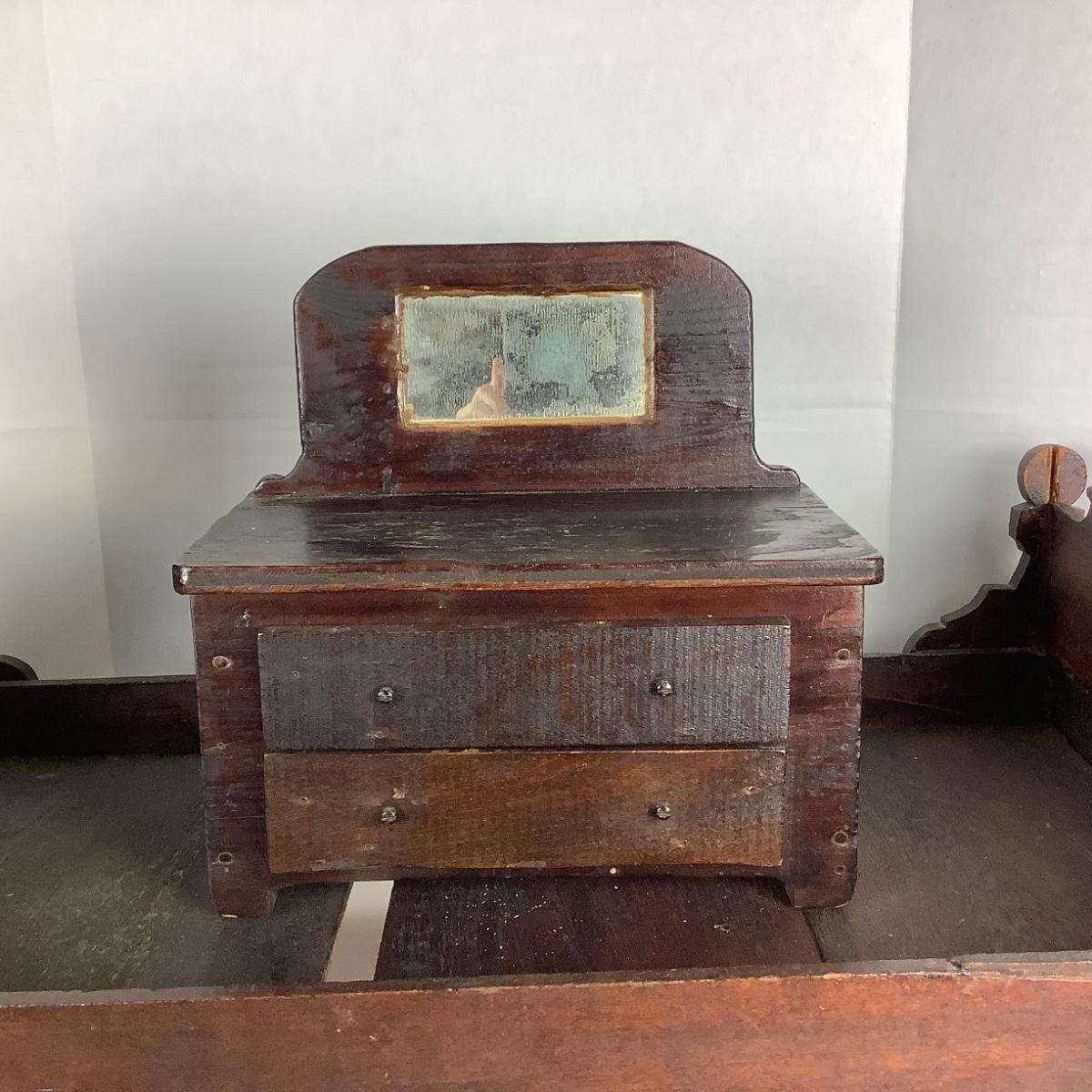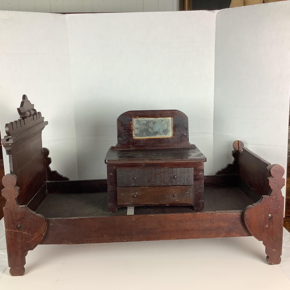 317 Victorian Doll Bed and Handmade Two Drawer Pine Doll Dresser