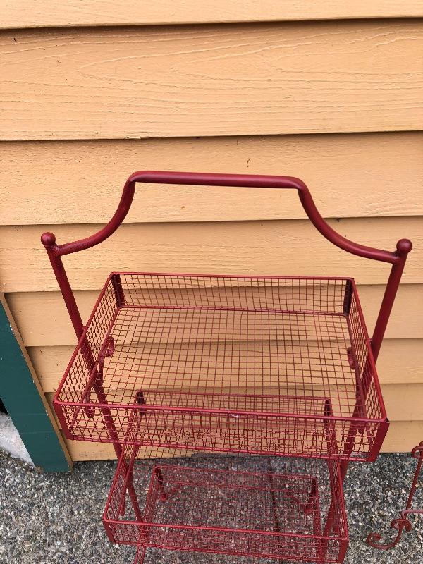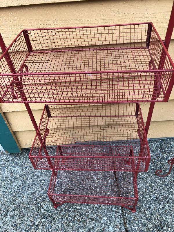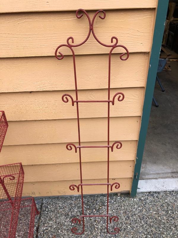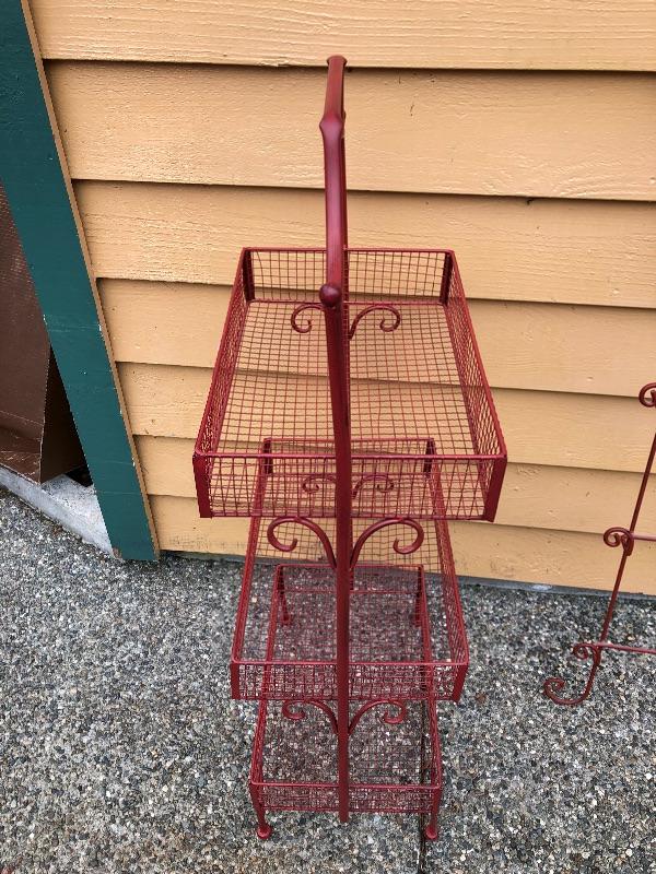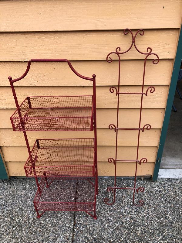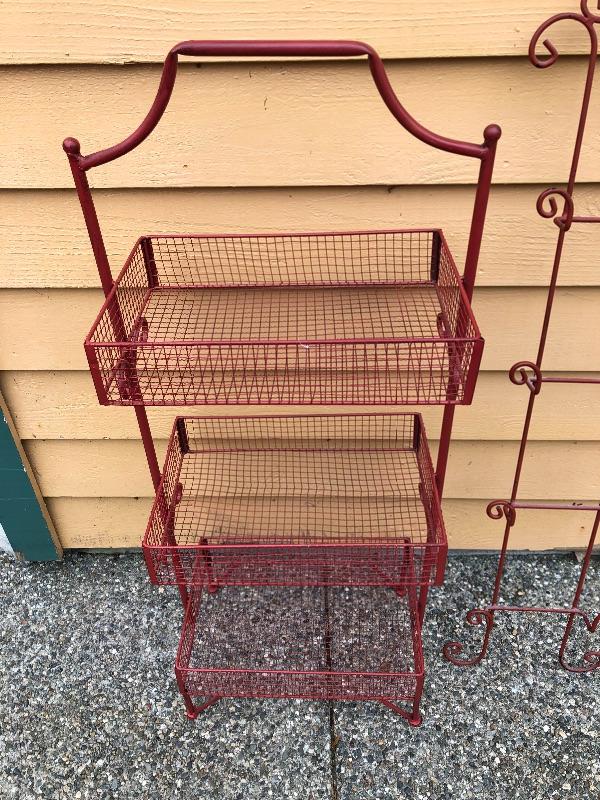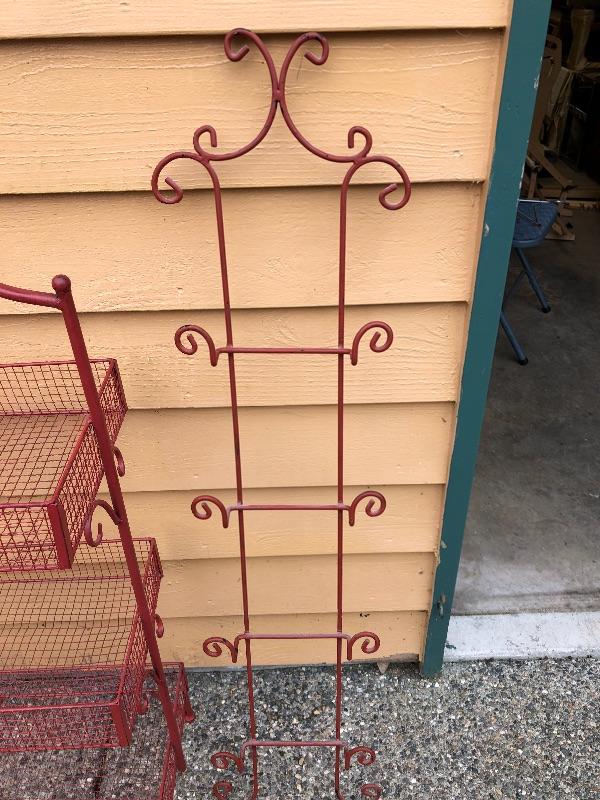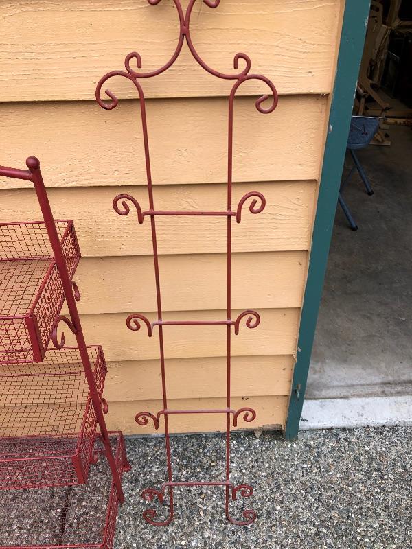 Red Kitchen Storage Rack and Red Plate Wall Rack. Basket rack is 41 inches tall x 17 wide