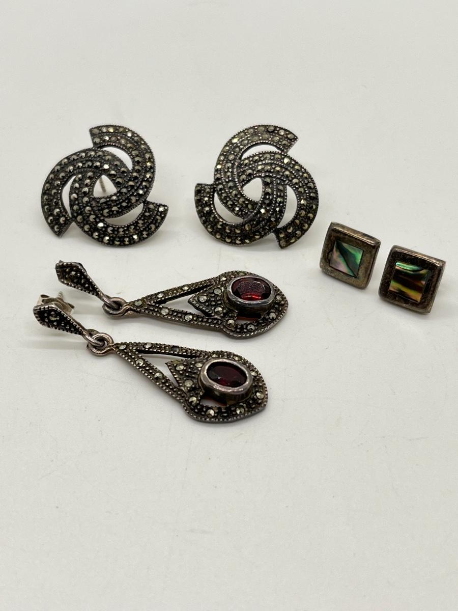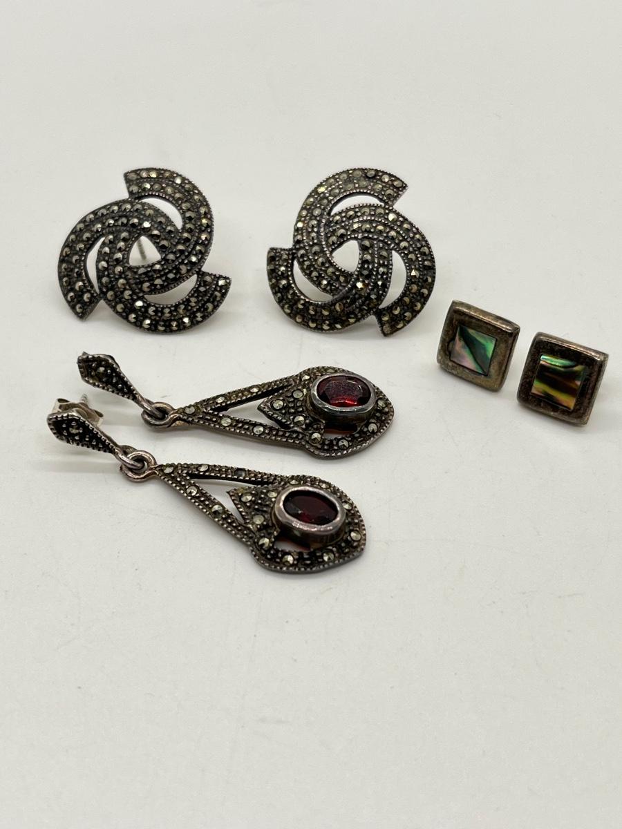 Lot 318J: Three Pairs Sterling Silver Pierced Earrings