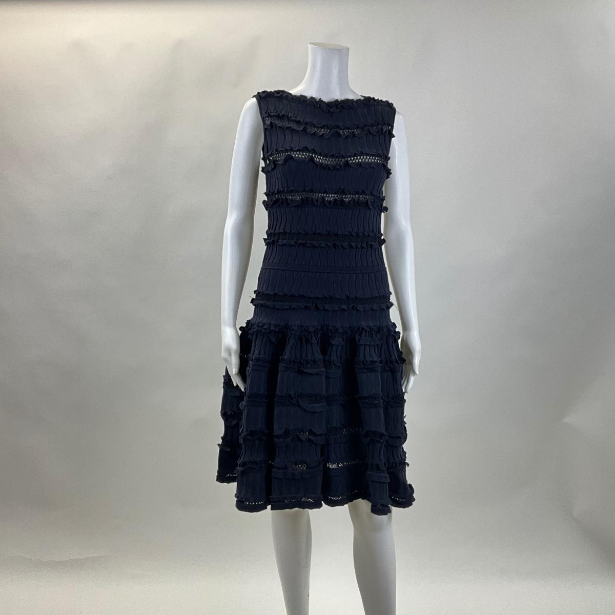 318 ALAÏA PARIS Navy Blue Ruched Sleeveless Dress Size 40