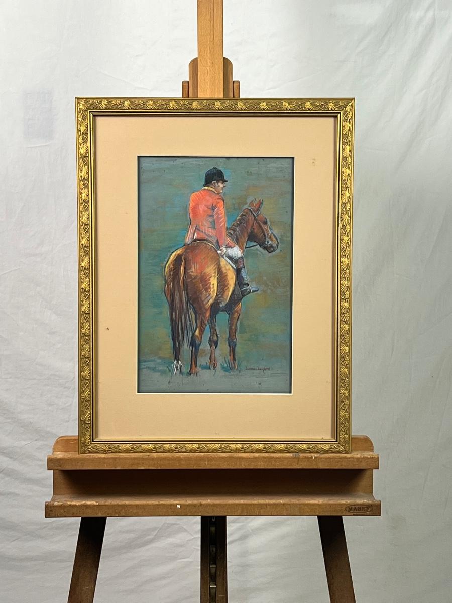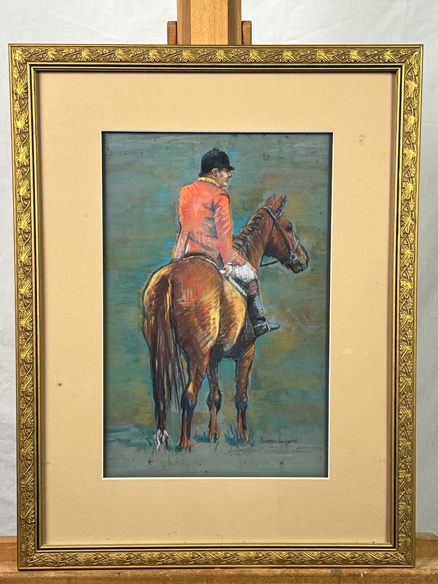 318 Original Pastel of Equestrian Rider Signed Suzanne