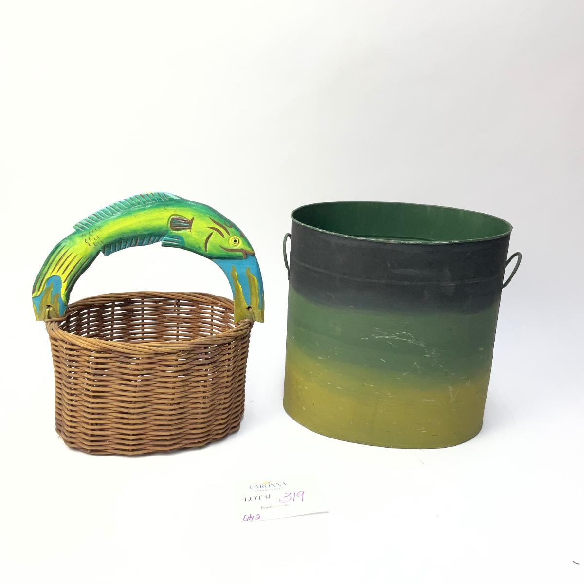 319 Fish Handled Basket with Handpainted Fish Metal Container