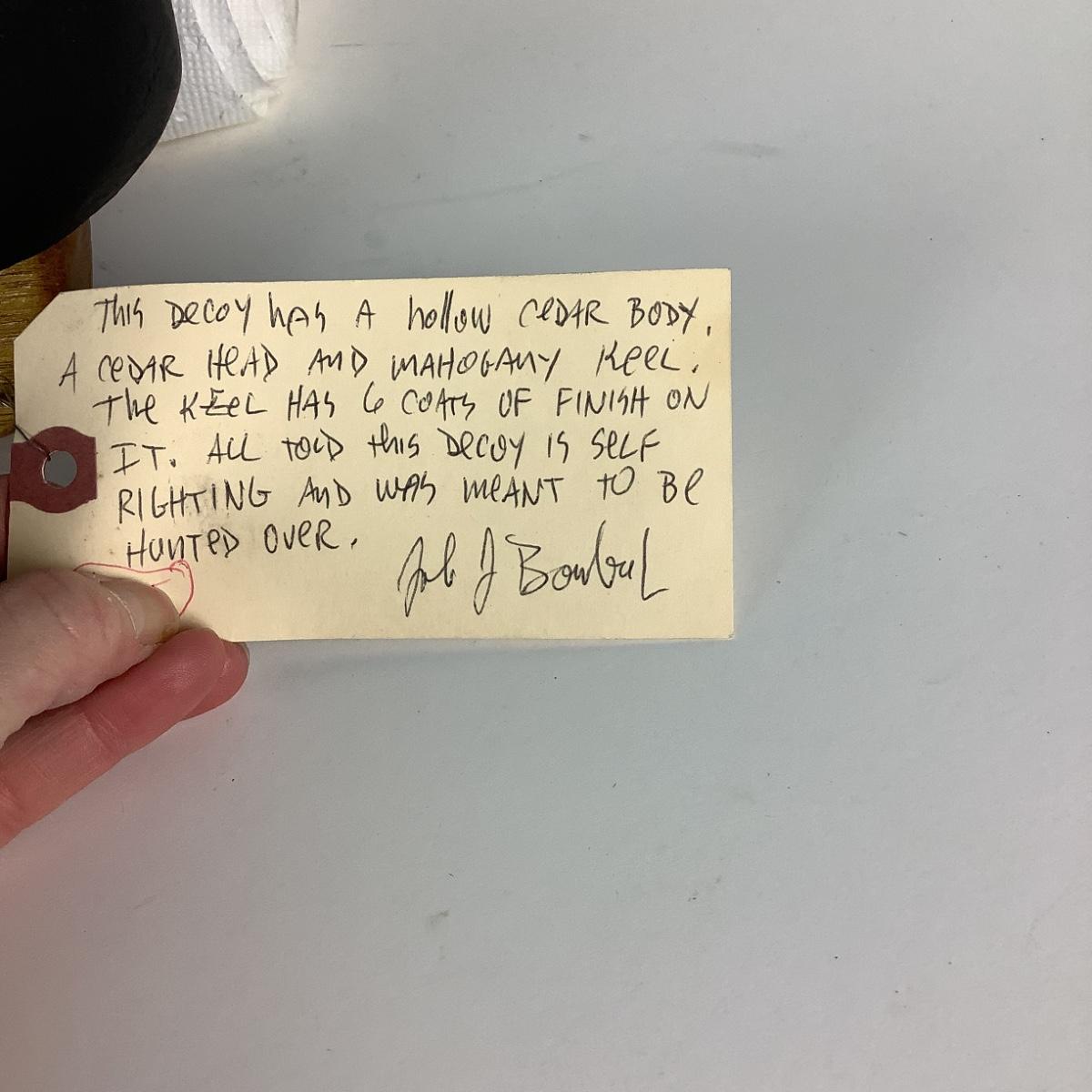 Decoy hollow , Cedar body , cedar head, mahogany keel, self righting, meant to be hunted over . Comes with signed tag
