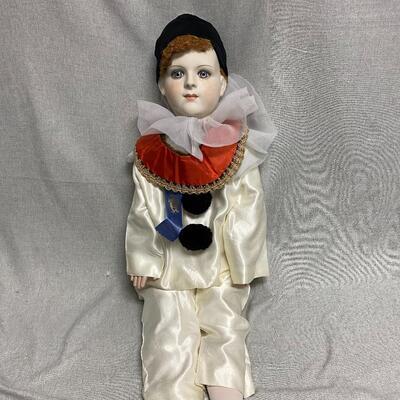 32" bisque and composite clown repro doll. Head is marked FG 10 1982 Seeleys with the artist name Beth Noble 1990. Body is a Real Seeley body. In good condition.