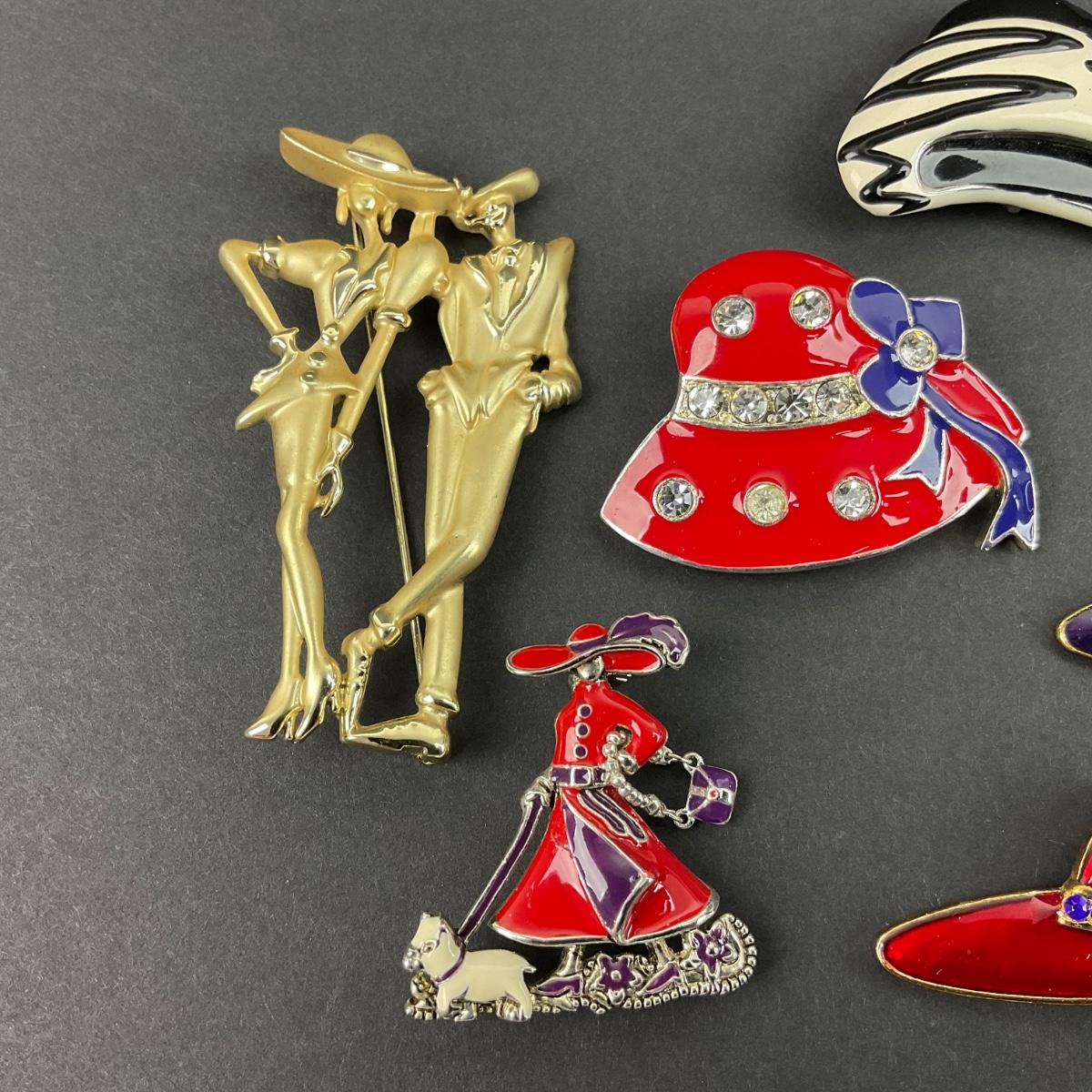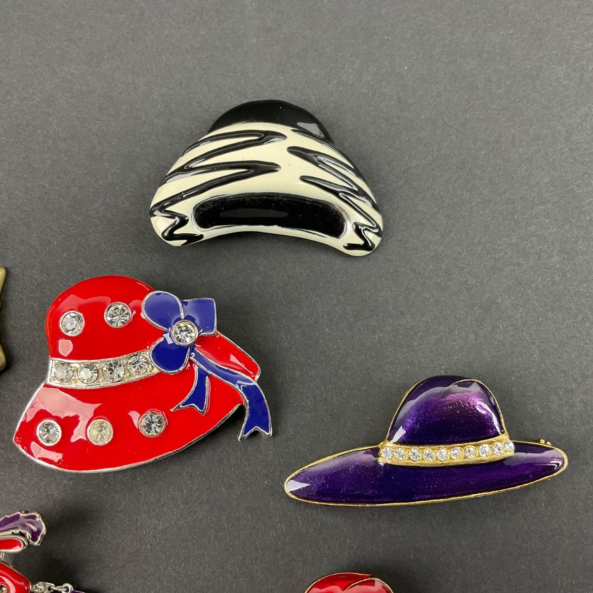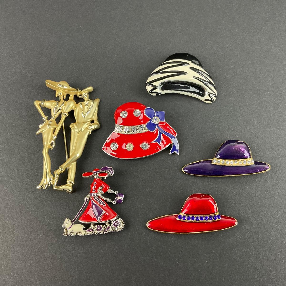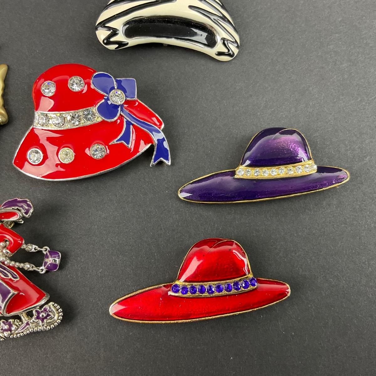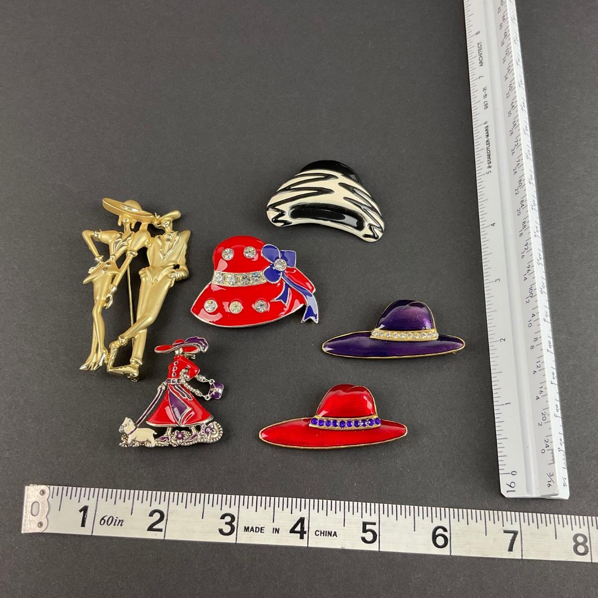 Six miscellaneous Red Hat Society brooches. Please see photos for details and condition. Any condition statement is given as a courtesy to a client, is an opinion, and should not be treated as a statement of fact. Reference to condition written, oral or within a condition report shall not be regarded as a full account of condition and may not include all defects, alterations, or restorations. Absence of a condition report does not imply a lot is flawless or lacking imperfections or damage. Katherine’s Auction & Appraisal Service shall have no responsibility for any error or omission. Returns shall not be accepted on the basis of condition. ::: Shipping is available on this lot. If you require shipping you must let us know at the close of the auction. We will coordinate with you after the item has been won. Shipping fees will include insurance up to or exceeding the value of all items being mailed. If you have any questions regarding this lot please contact the auctioneer either via this website, by direct email or by phone. PICK UP TIMES and other important information can be found in the TERMS and DESCRIPTION of the auction. Please take a look for pertinent information. Thanks!